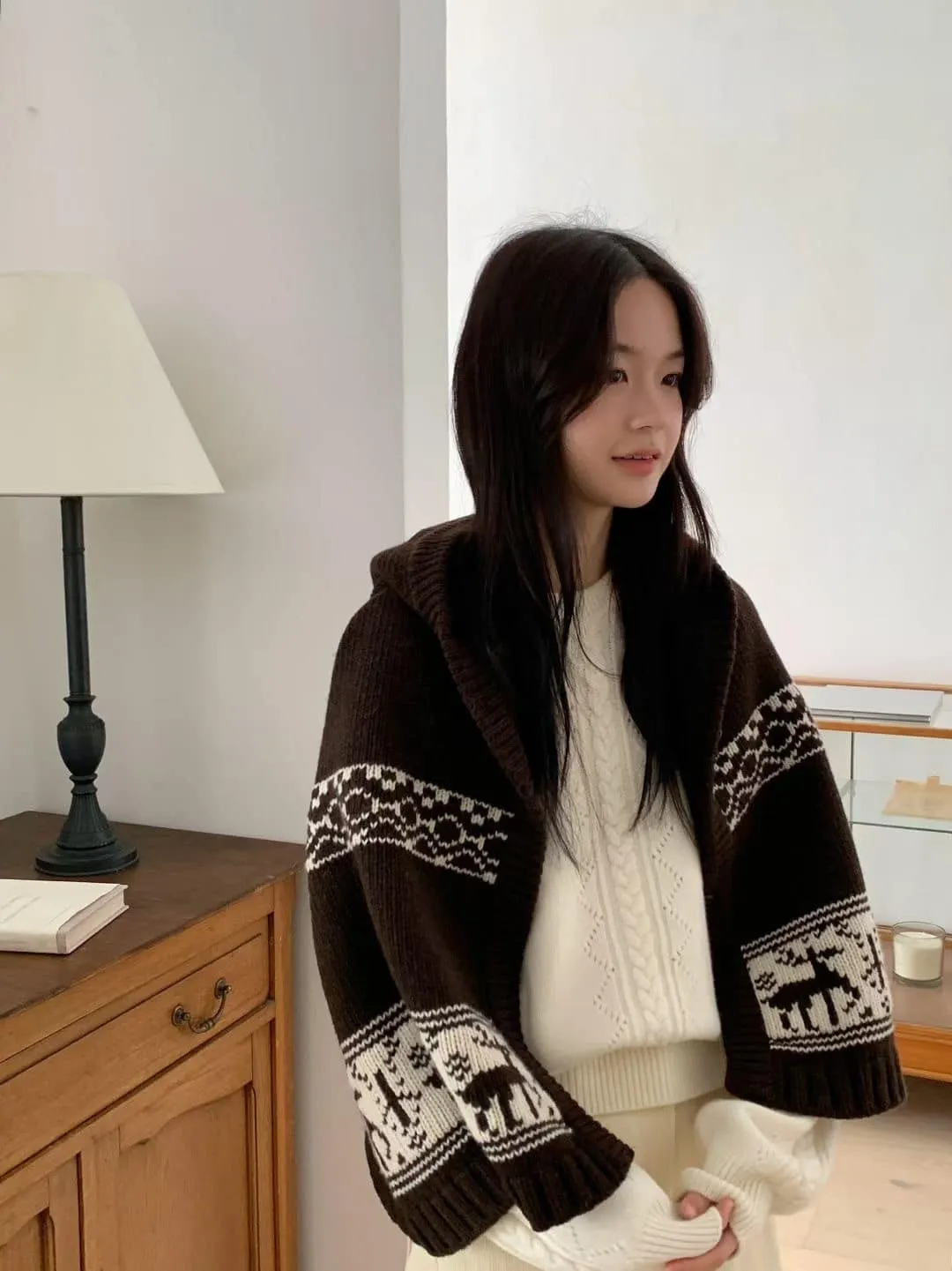 DCS5577 正韓 北歐風毛料連帽斗篷F 咖色 $850