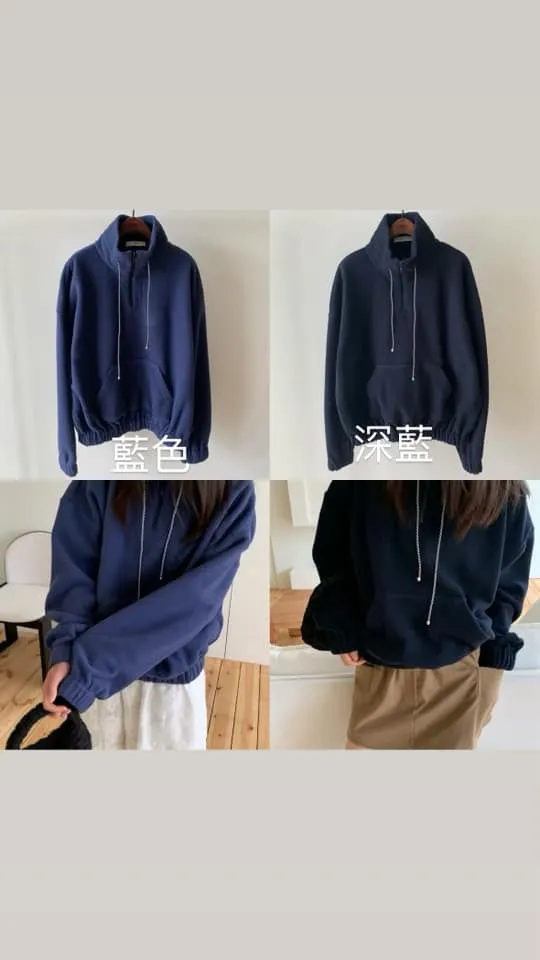 DCS5578 正韓 暖暖羊羔毛連帽綁帶上衣F 藍色 $850