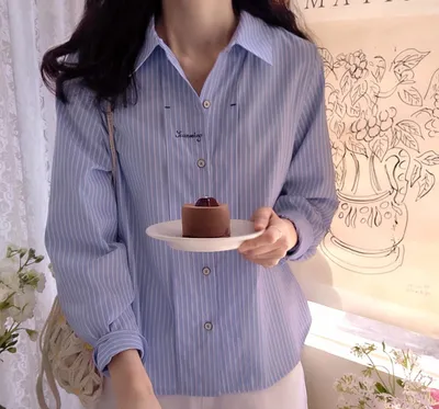 MA635 條紋字母刺繡修身襯衫F 藍色 $1050