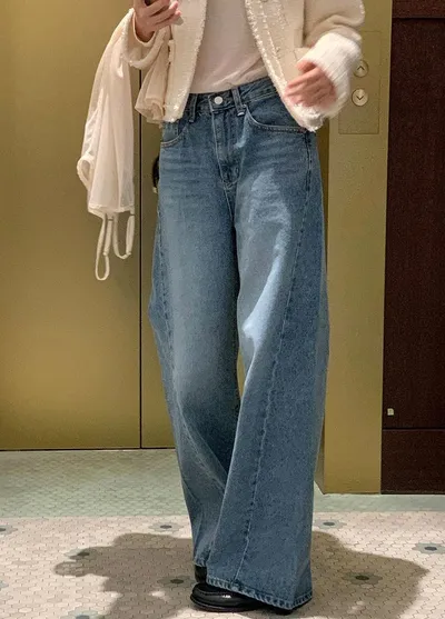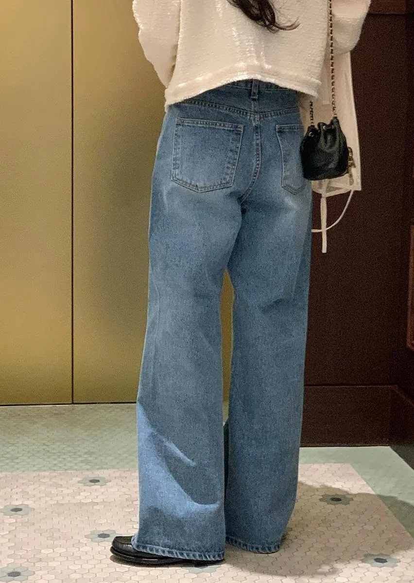 MA607 側線條高腰修長寬版牛仔褲 M $1150