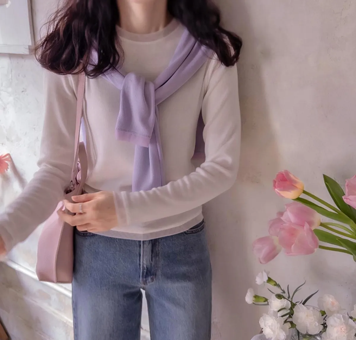 MA640 春日浪漫接紗柔軟上衣F 米白、紫色兩色各1,共兩件 $1160