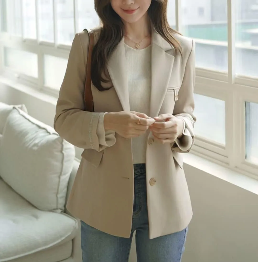 MA608 時髦修身反折袖口西外F 米色 $1610