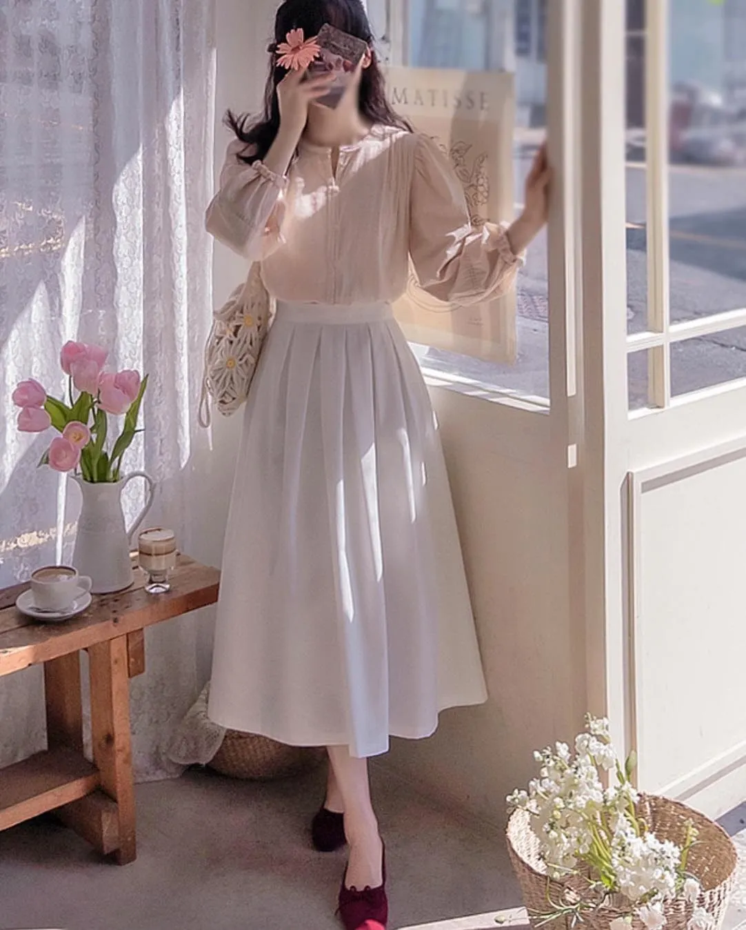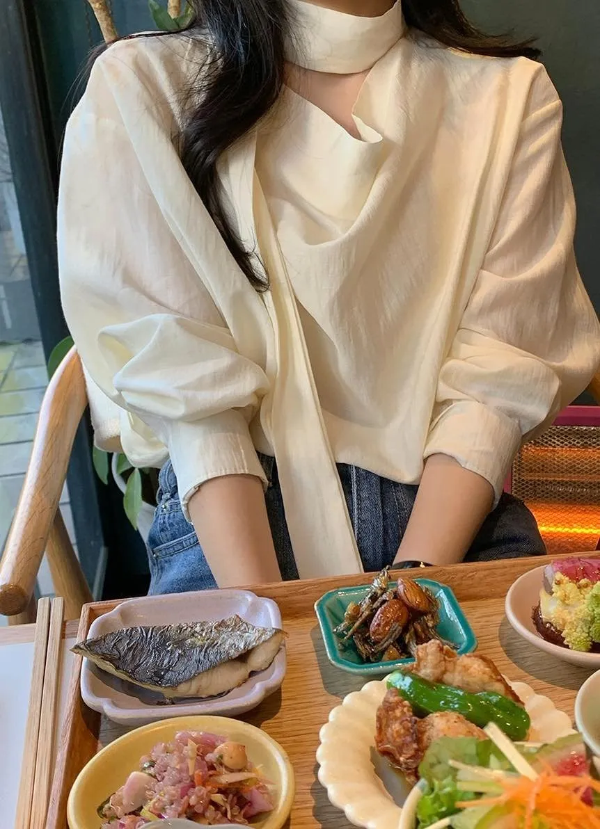 MA624 優雅垂領繫帶襯衫F 米白 $910