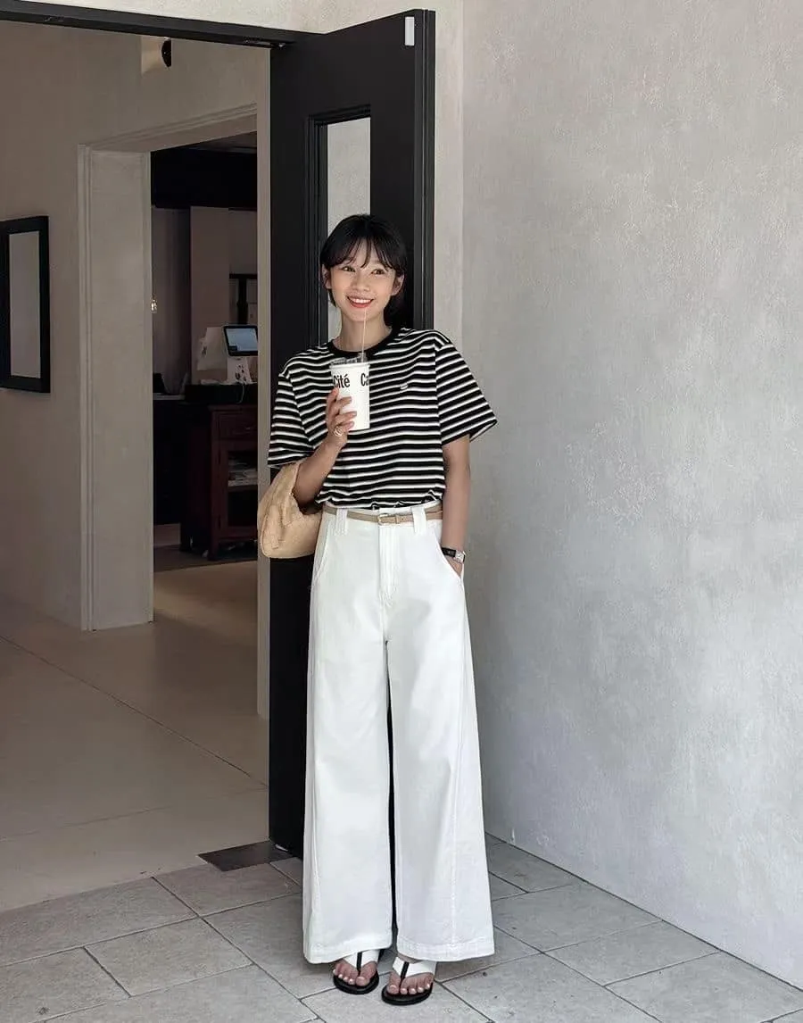 MA606 百搭修長棉質寬版褲 M 白色 $1050