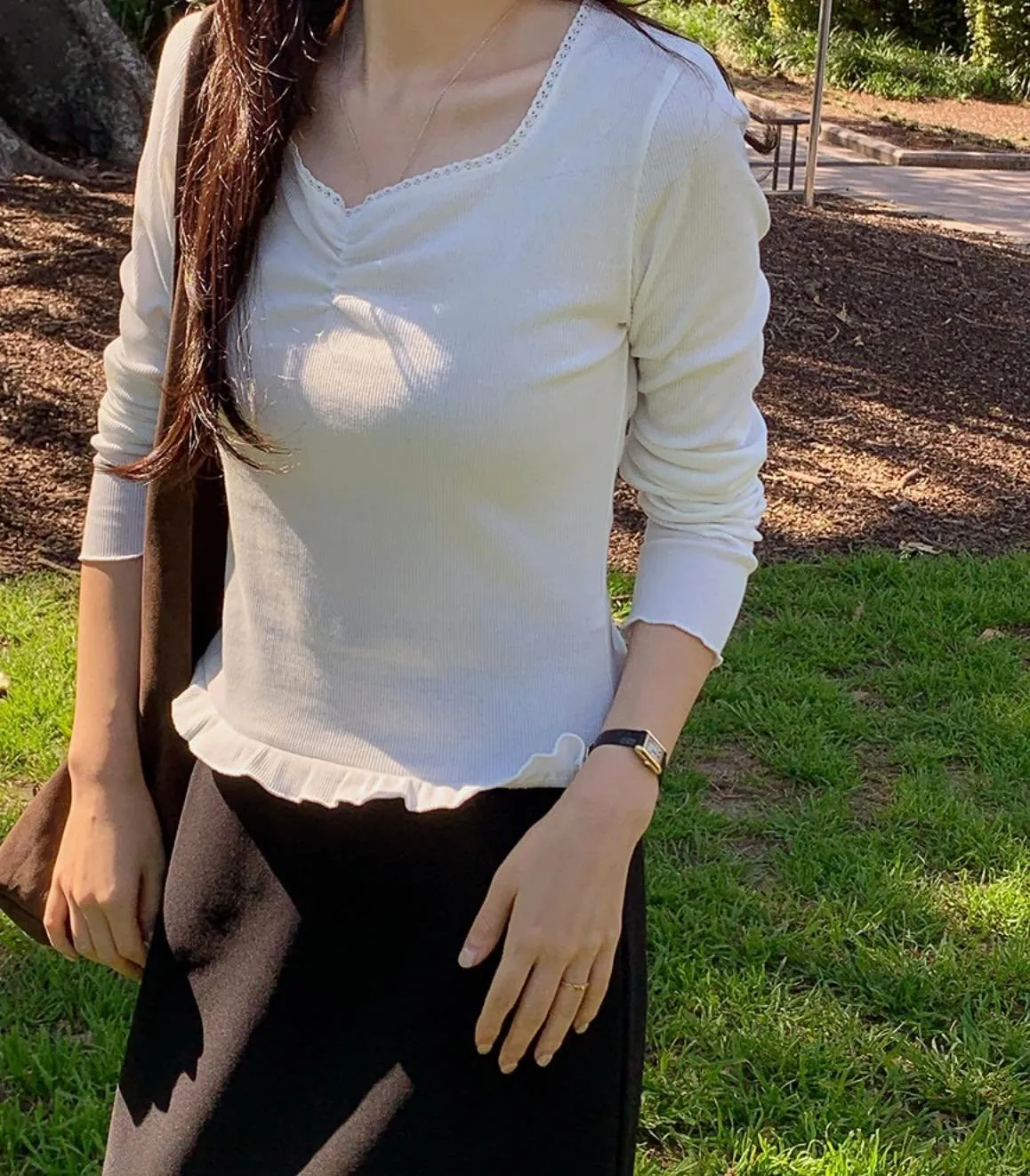 MA623 心型領下擺滾邊流蘇棉衫F 白色 $530