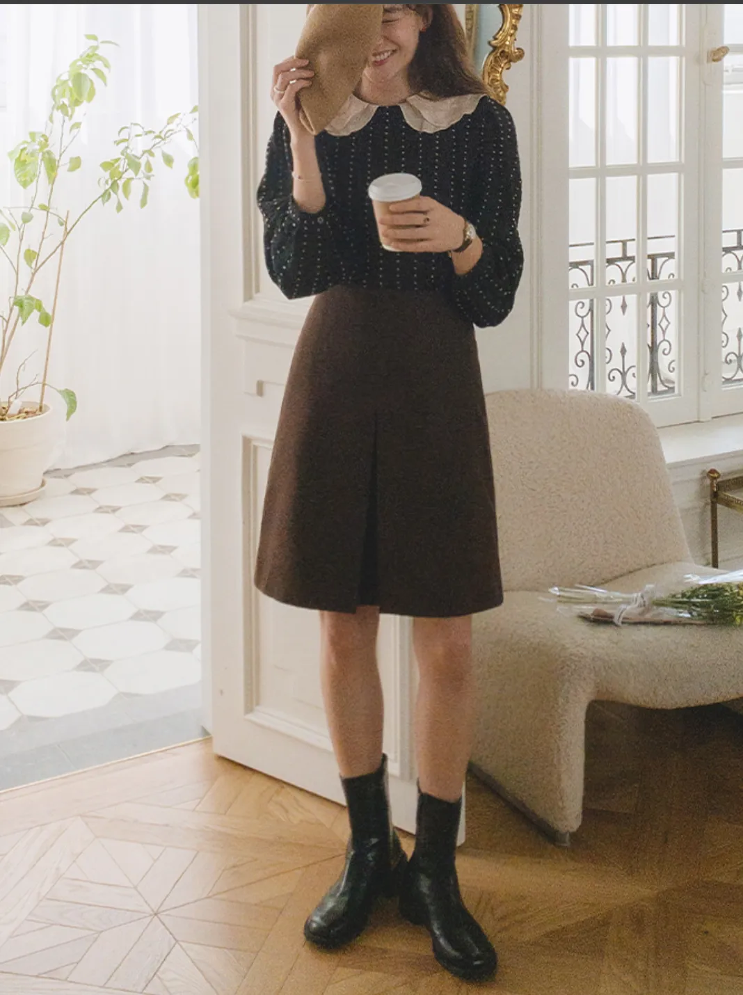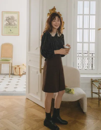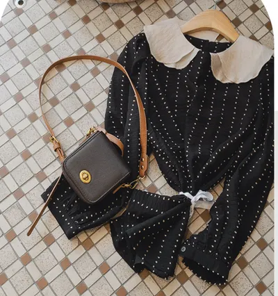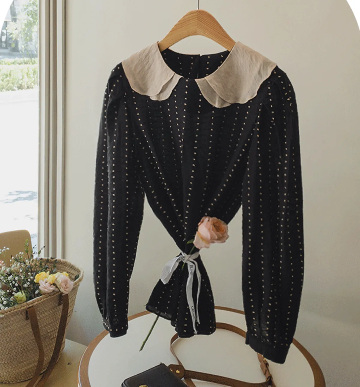 AP2111 正韓 雙層雲朵領配色點點雪紡衫F 黑色