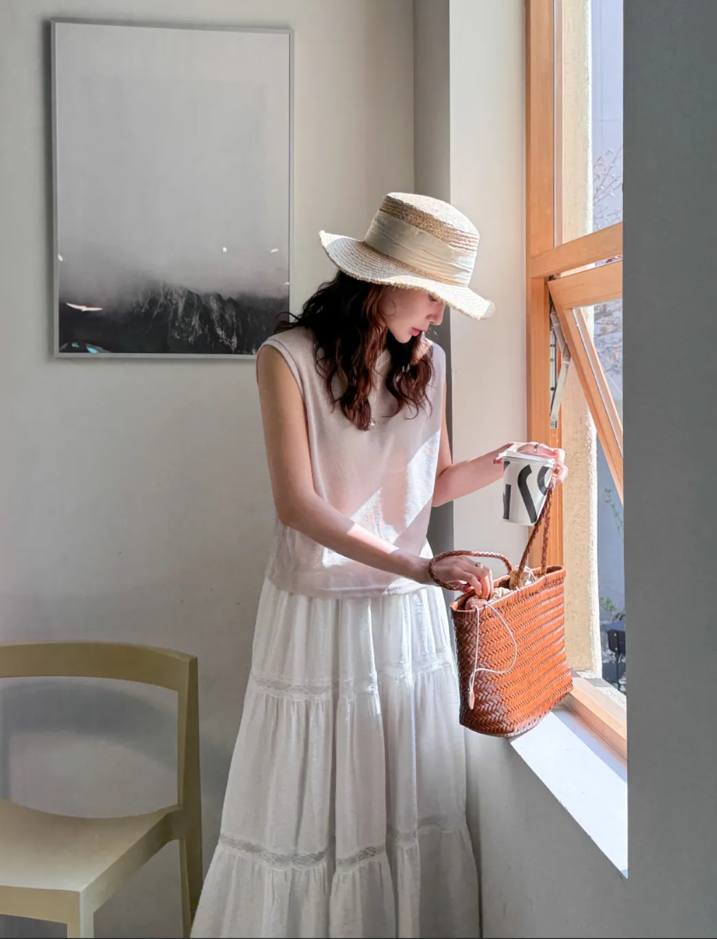 換季出清商品不提供退換貨請下單前仔細考慮清楚下單後,請馬上完成結單付款建議刷卡,以免系統取消訂單 出清商品訂單滿2000免超取運費!! 輕盈的透肌感,清爽的棉麻材質 舒服的寬鬆版型 很適合即將到來的炎熱夏天 韓國熱賣款 Made in Korea 肩寬37 胸寬45全長54cm