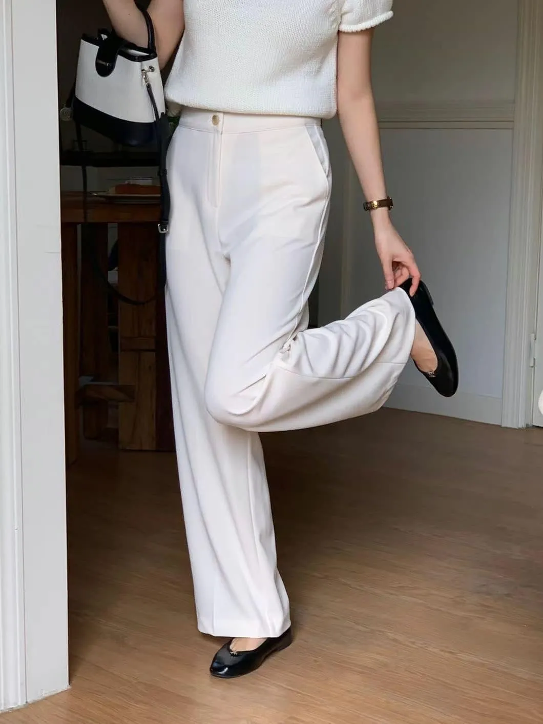 韓國熱賣款 這件就是夏季必買包色款! 很基本好搭的簡約西裝褲款 彈性好,腰圍跟布料都是有彈性的 布料不易皺 也有分尺寸,每個尺寸都可以舒服的穿著 腰圍是平整的設計,很好看 價格超甜,必須包色! S腰寬34 臀寬47 全長101cm M腰寬35 臀寬50 全長102cm L腰寬36 臀寬51 全長103cm XL腰寬37 臀寬52 全長104cm Made in Korea