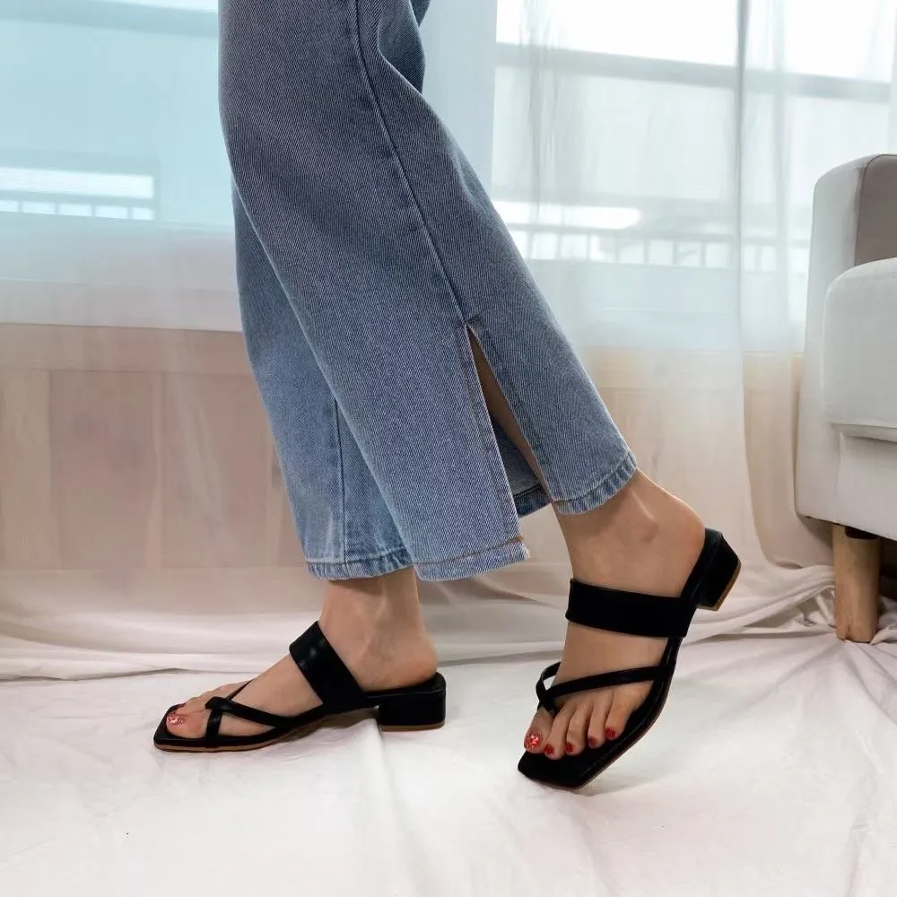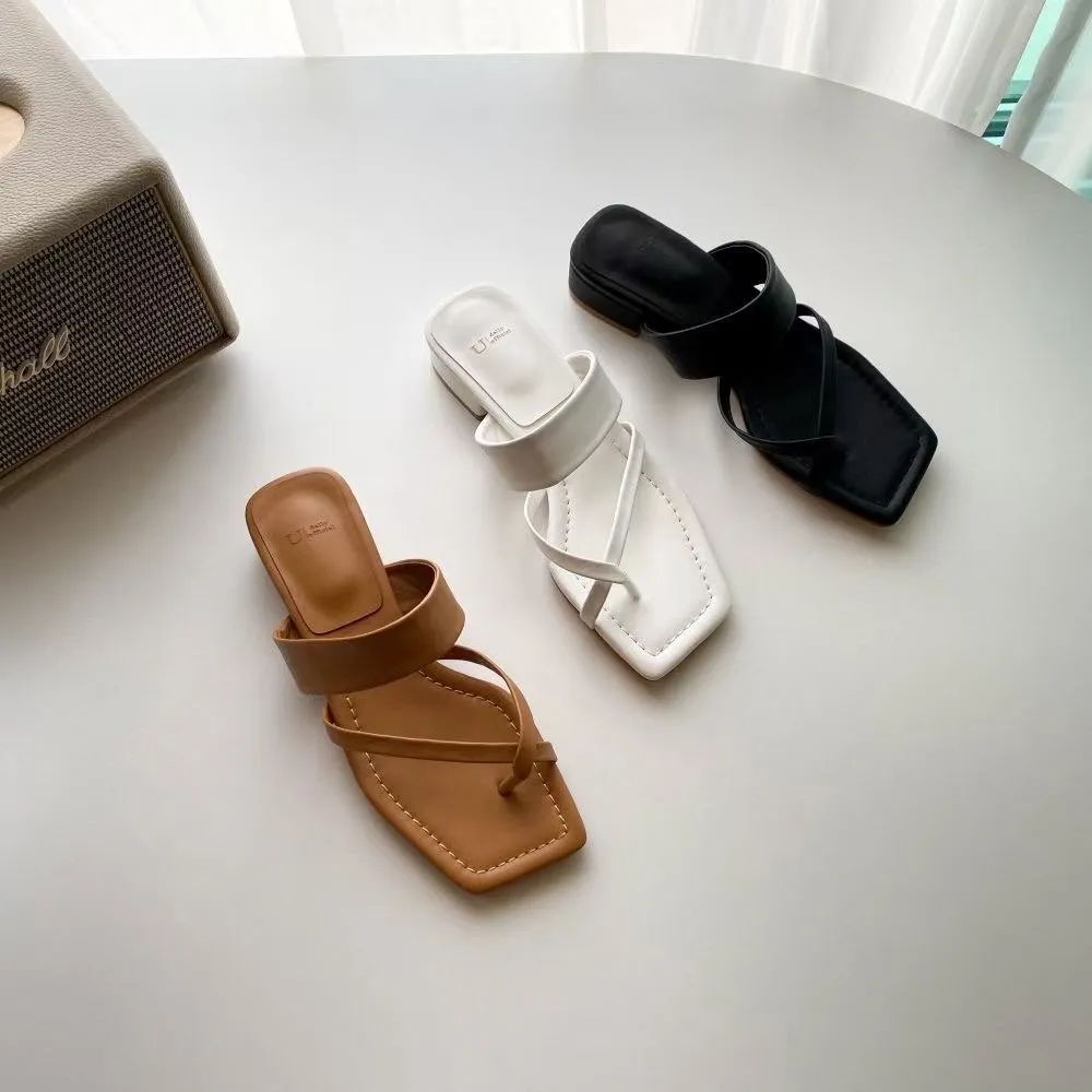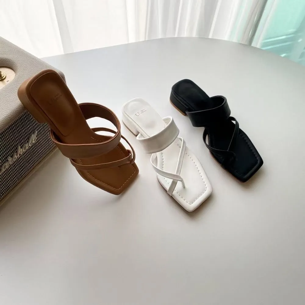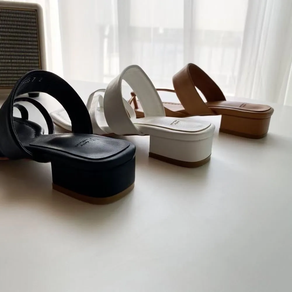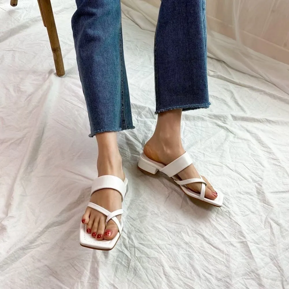 DCS2012 正韓 交叉橫條低跟拖鞋 白色24