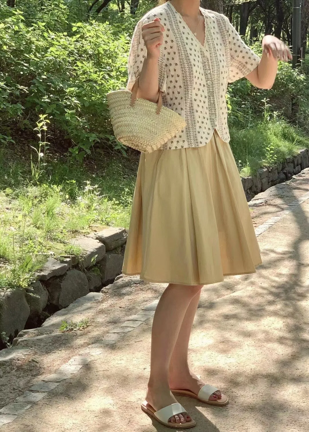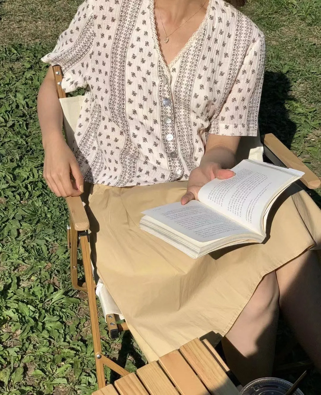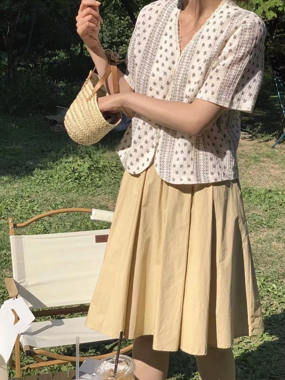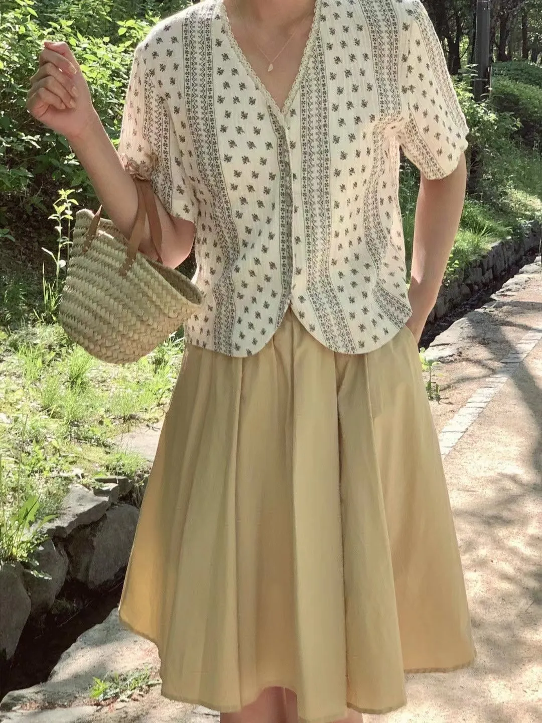 DCS2219 正韓 圖騰印花V領排釦棉衫F 深藍