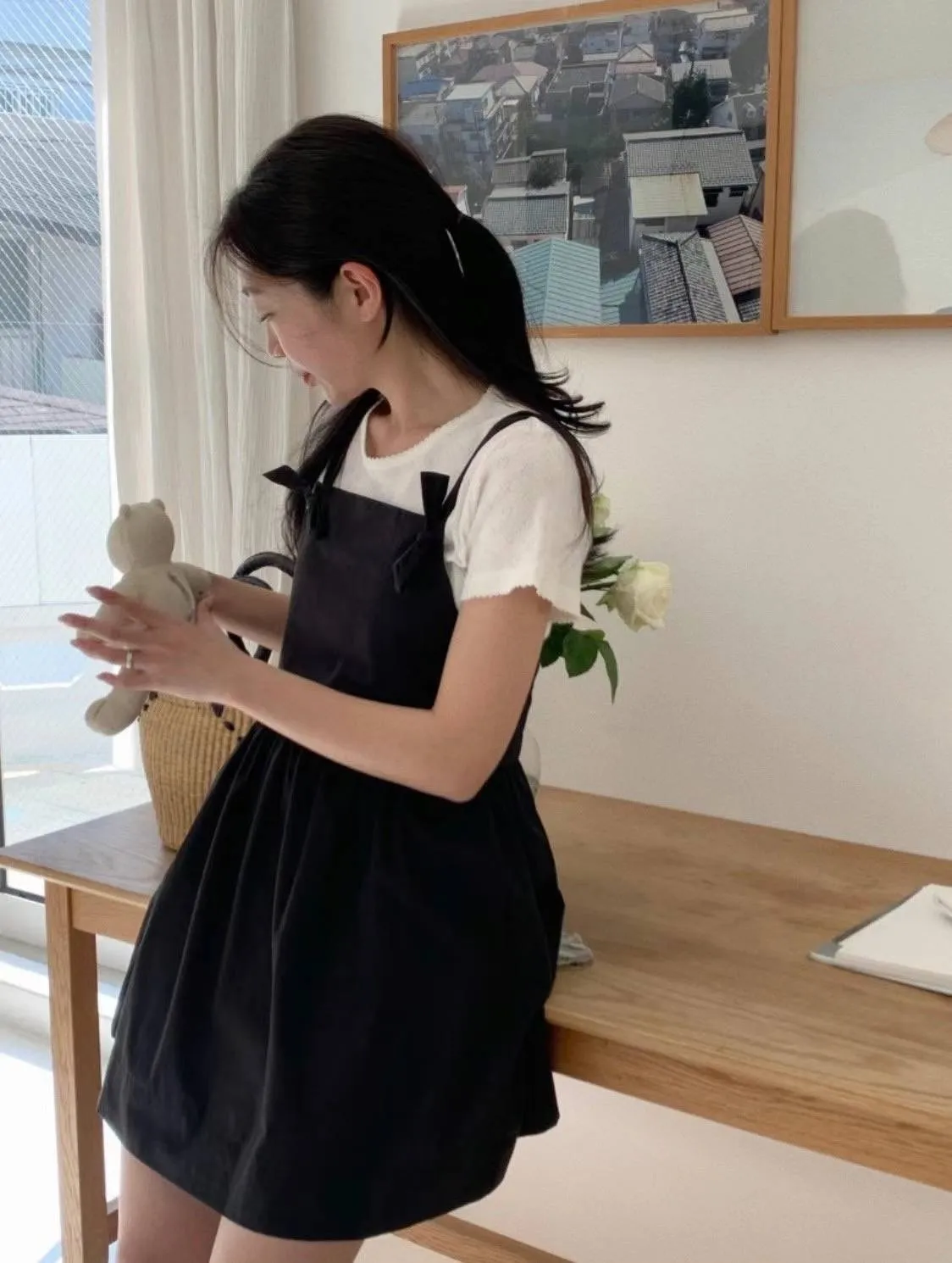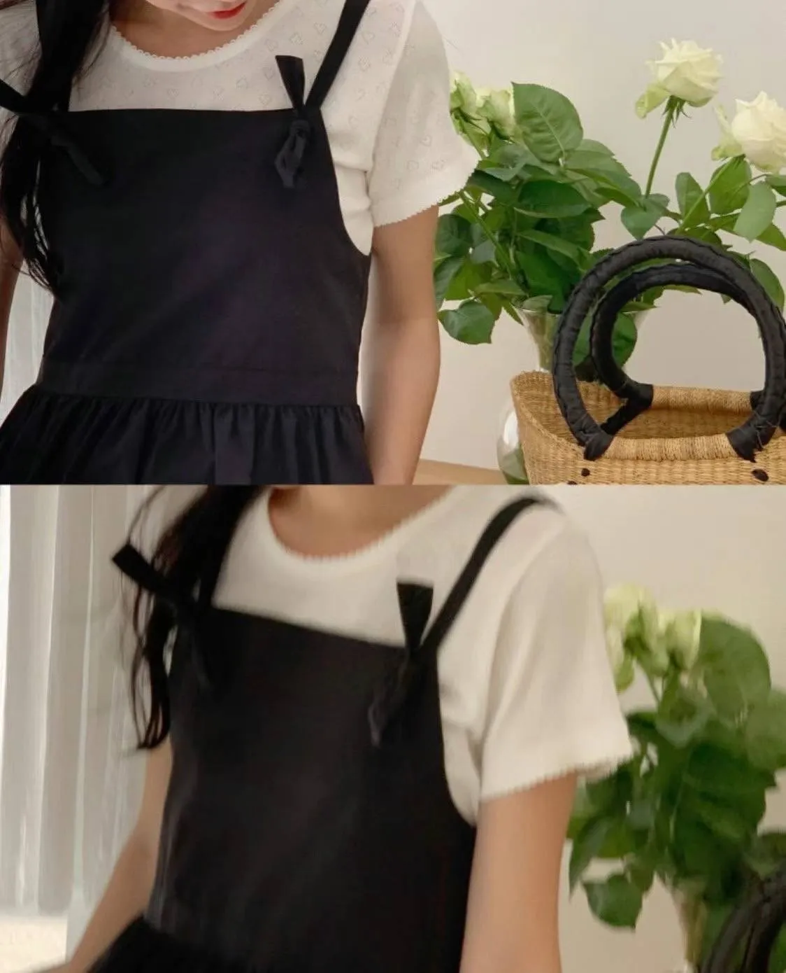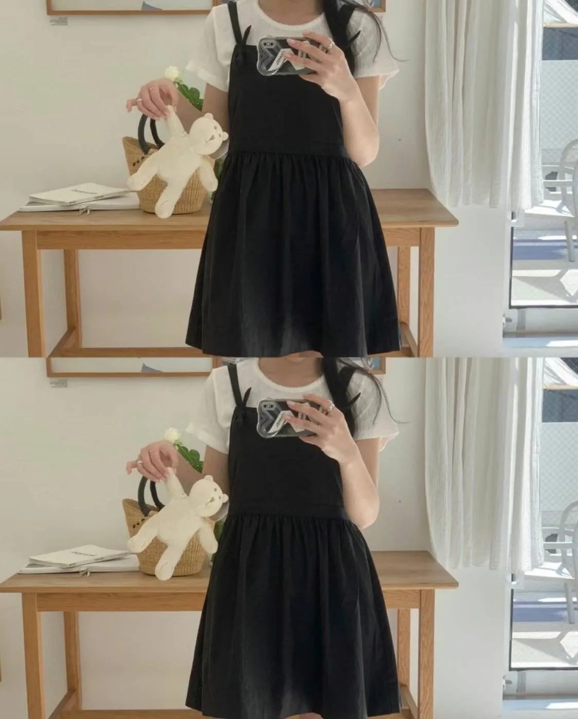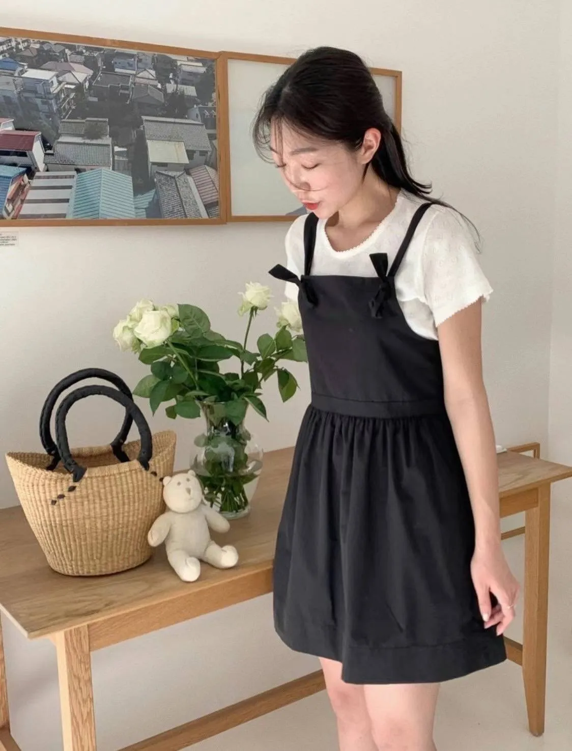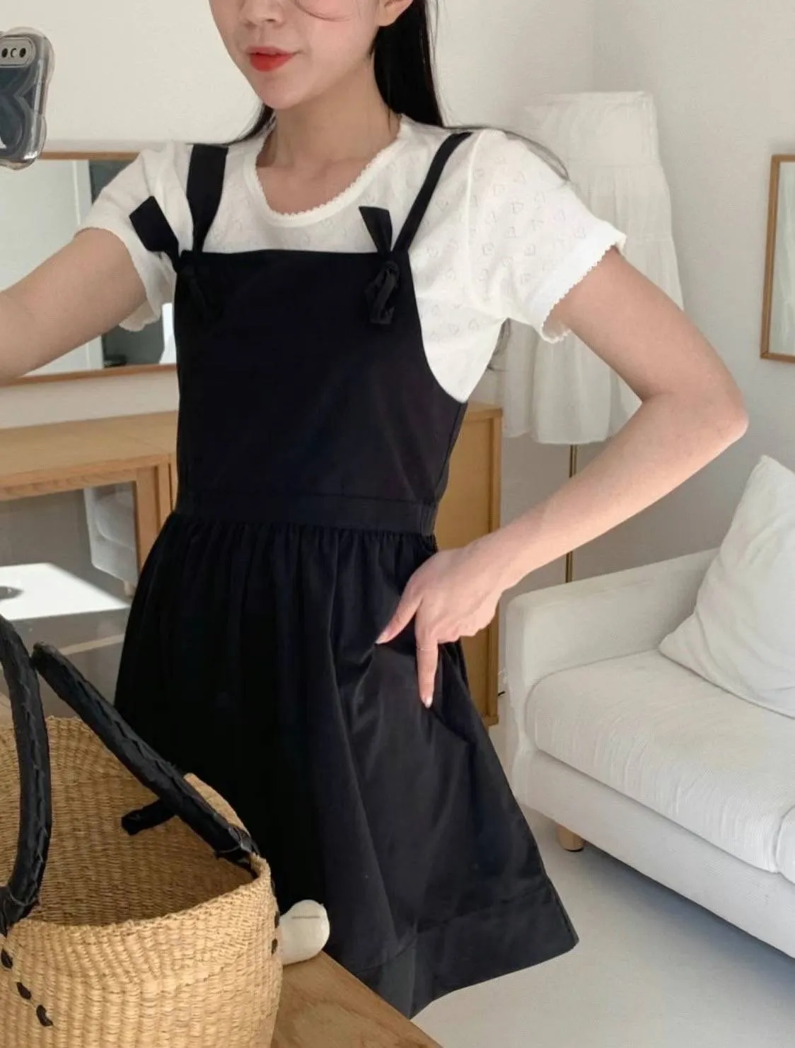 DCS3148 正韓 吊帶打結連身短洋F 黑色