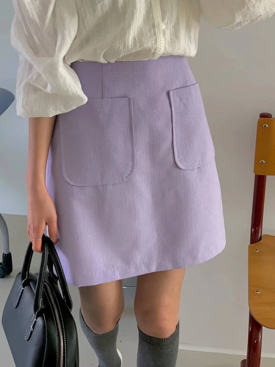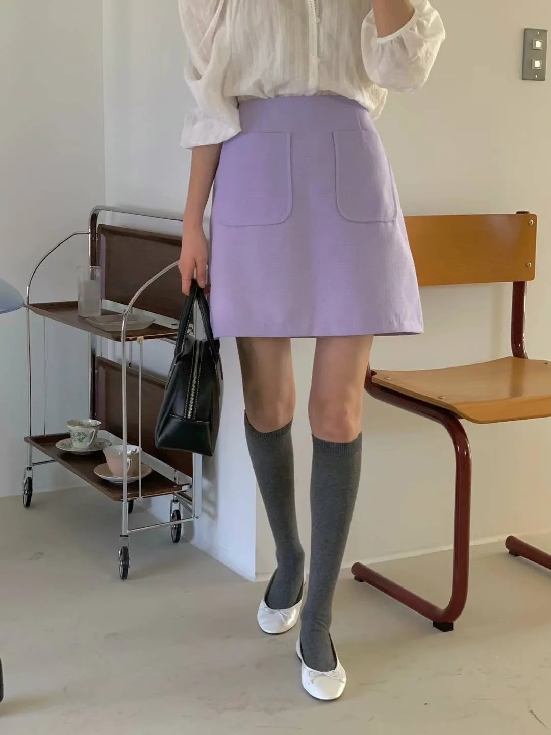 換季出清商品不提供退換貨請下單前仔細考慮清楚全新下單後,請馬上完成結單付款,以免系統取消訂單出清商品訂單滿2000免超取運費!!這紫色也太美! 有內裡!混紡無彈性 made in korea只有紫色S適合25~26腰身材