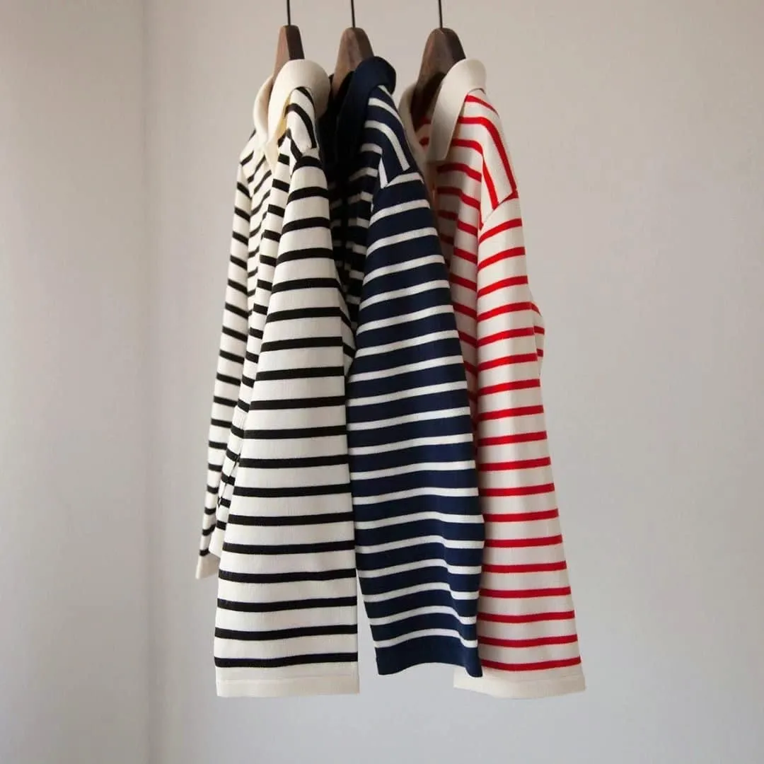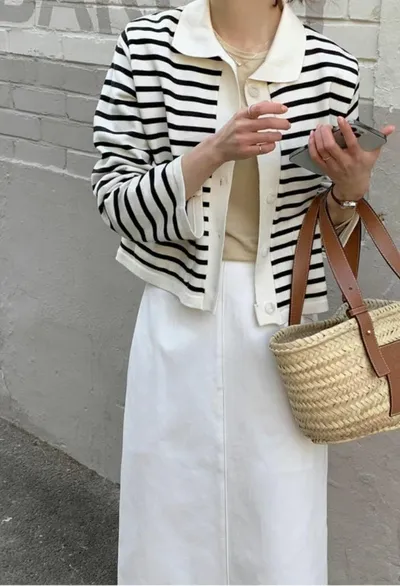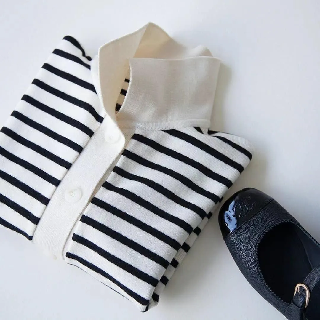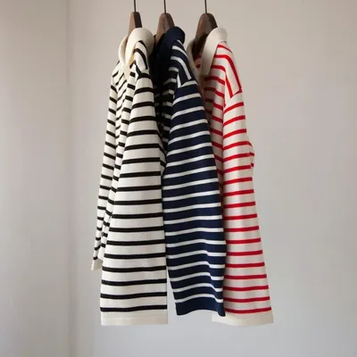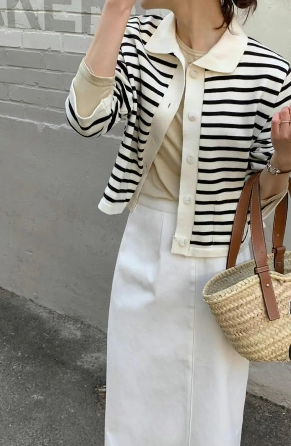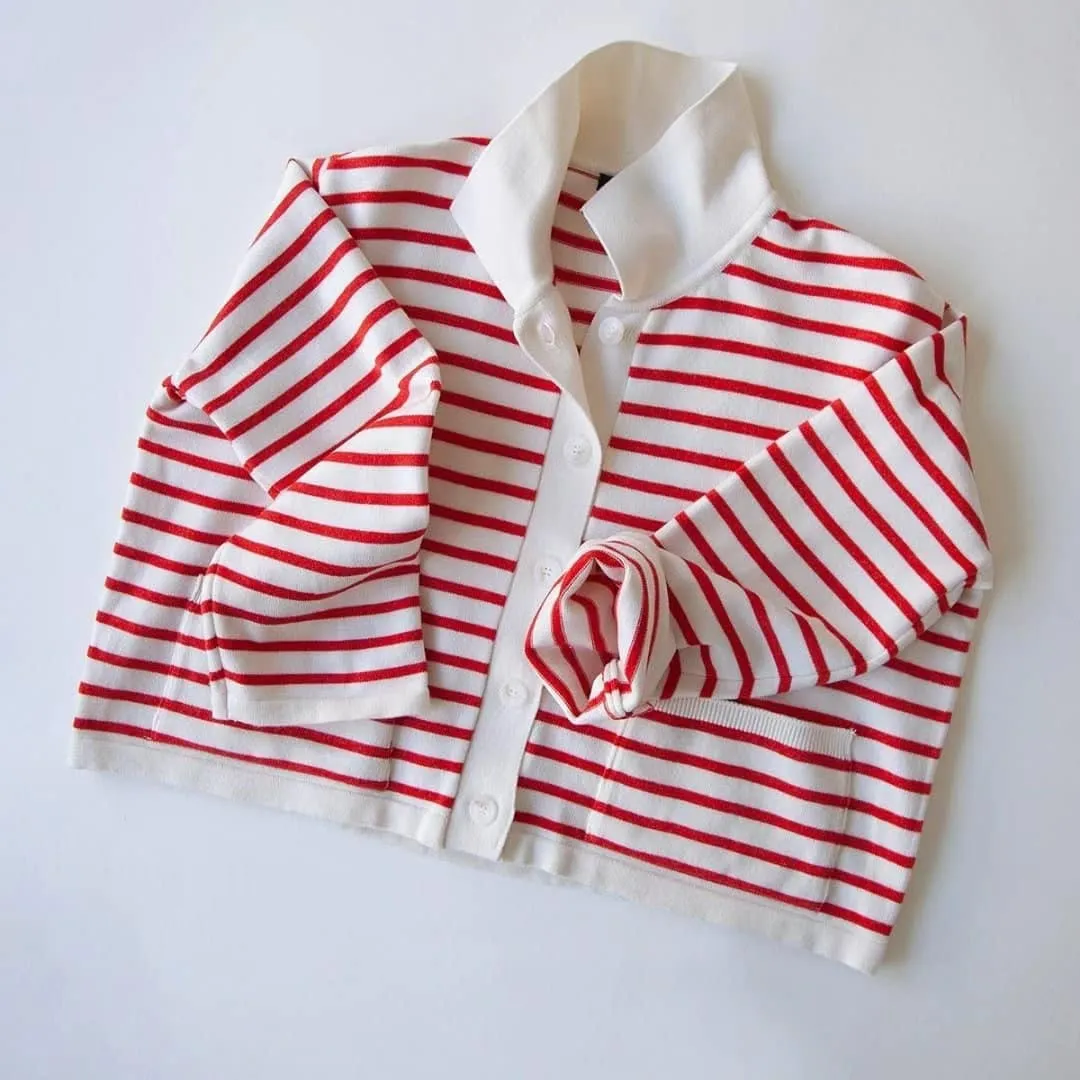 DCS4660 正韓 條紋有領排扣針織外套F 紅色