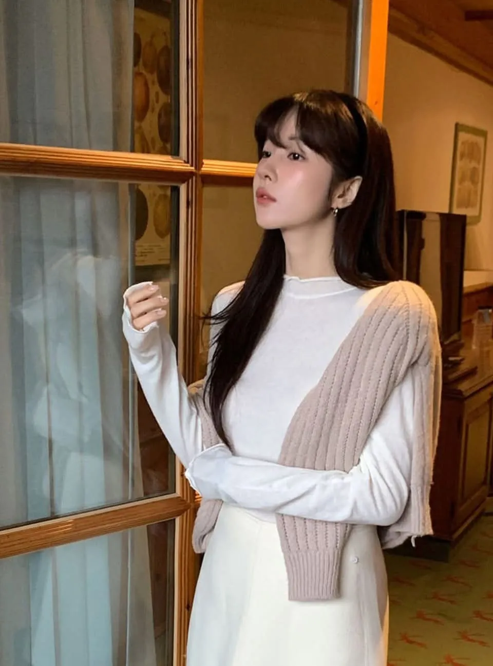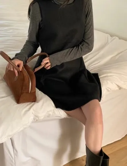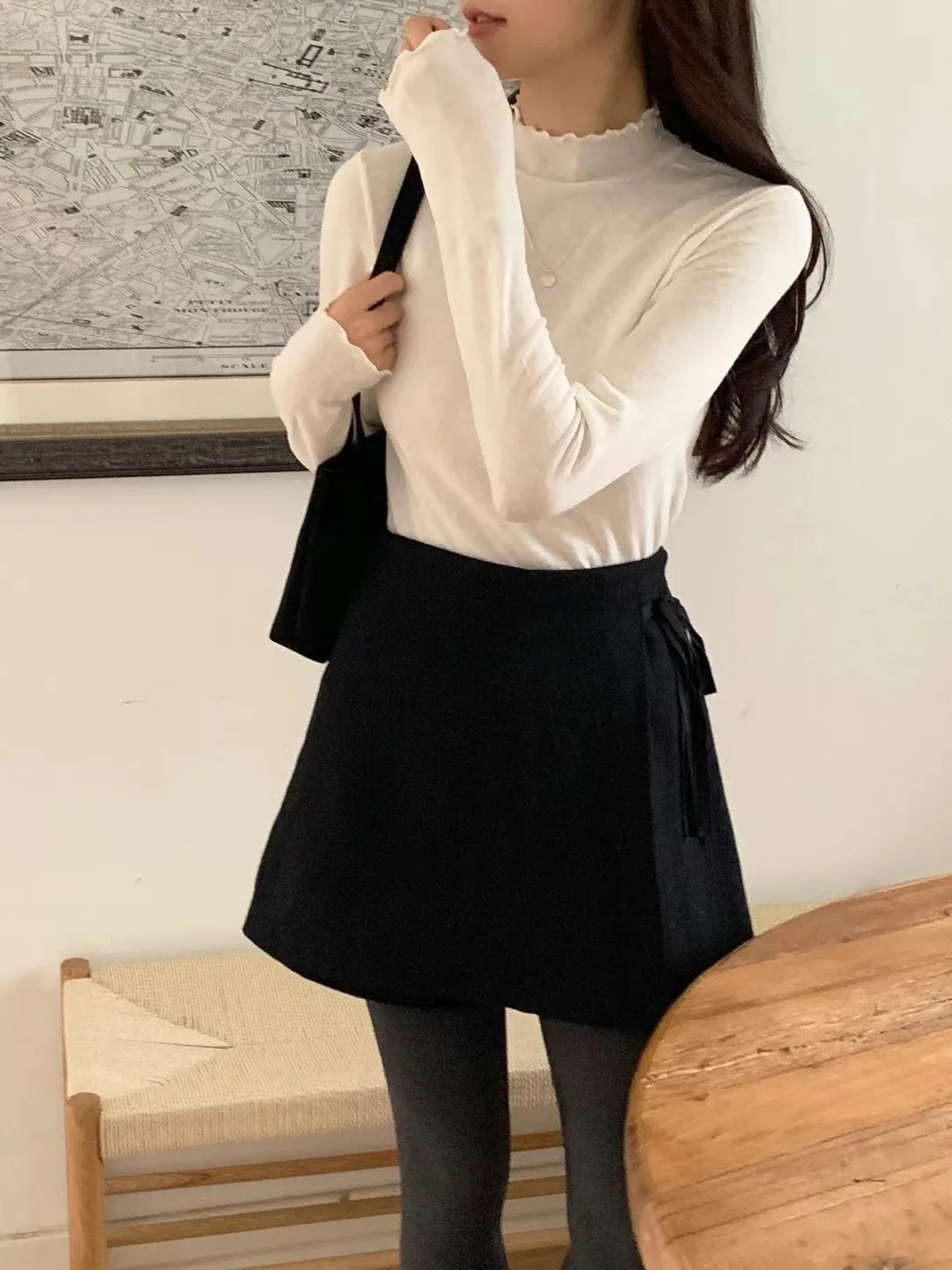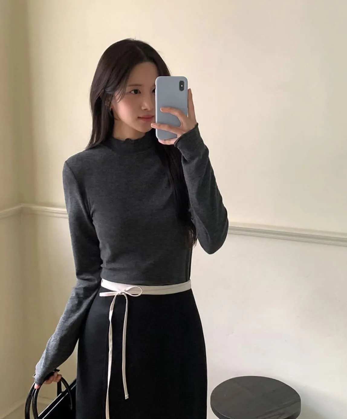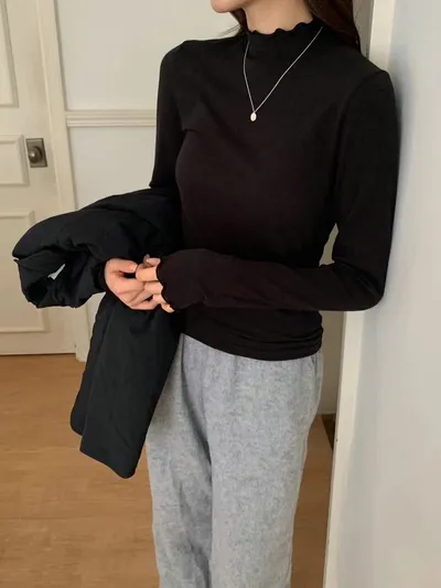 DCS4622 正韓 舒服彈性微高領卷邊打底衫F 米白 淺灰 杏色 黑色