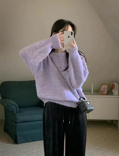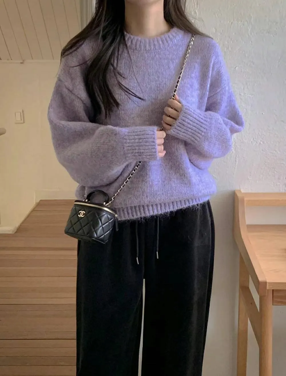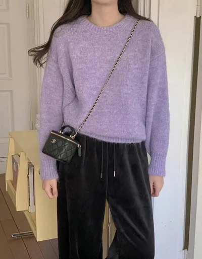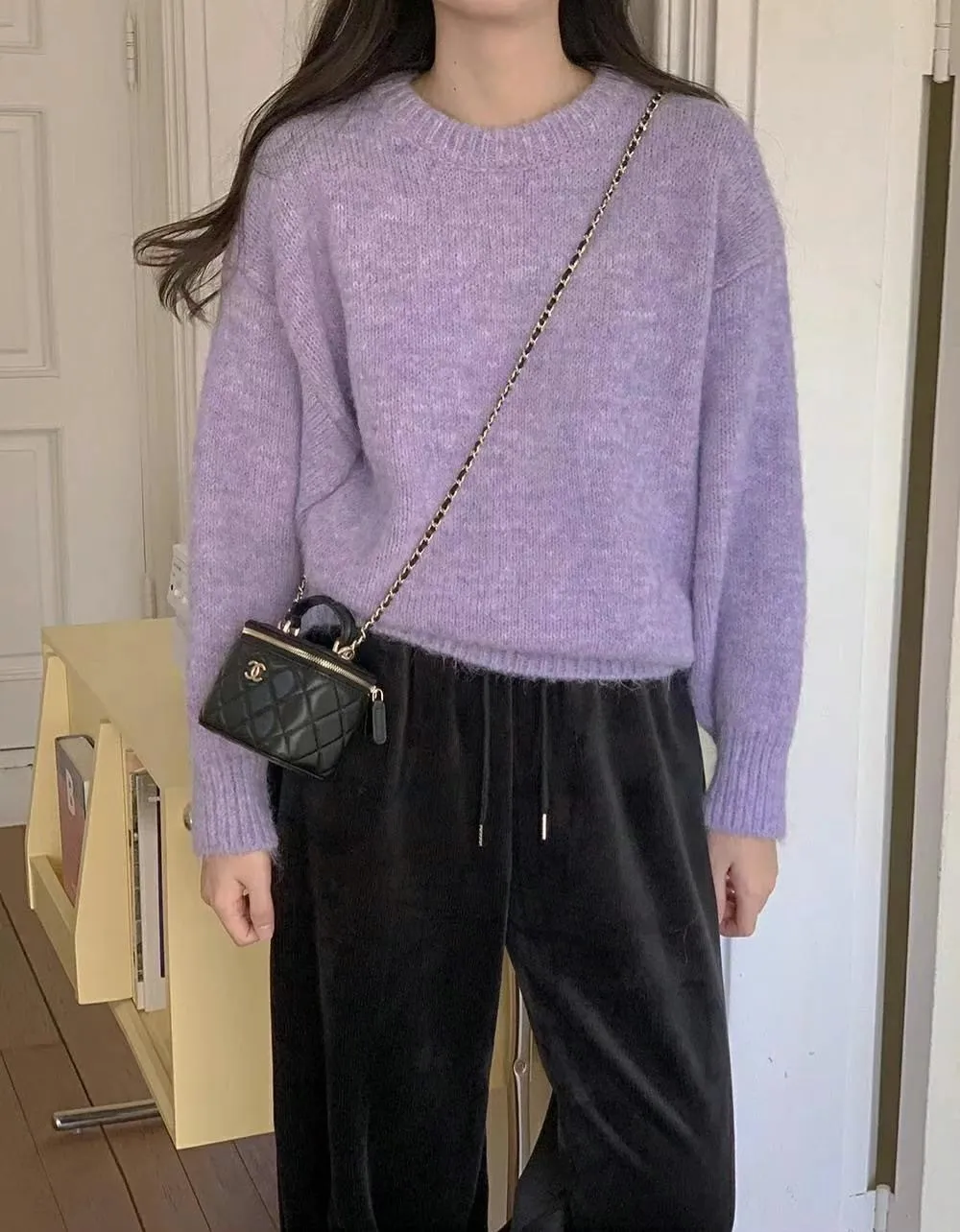 DCS4628 正韓 甜美素雅混色毛衣F 紫色 米白