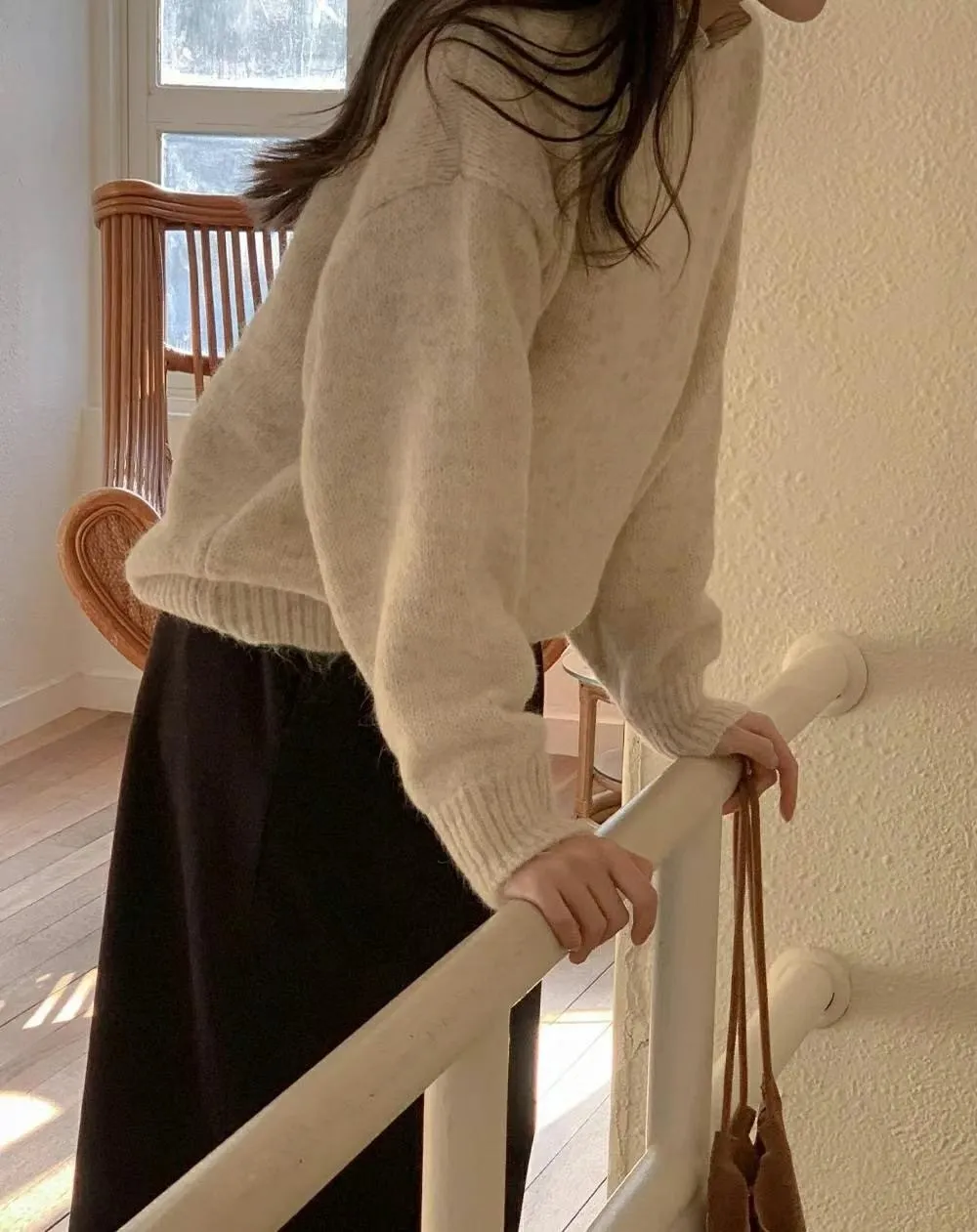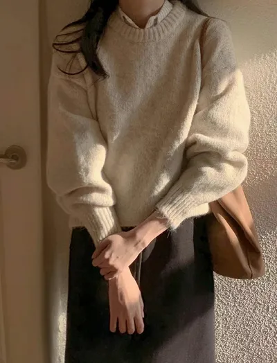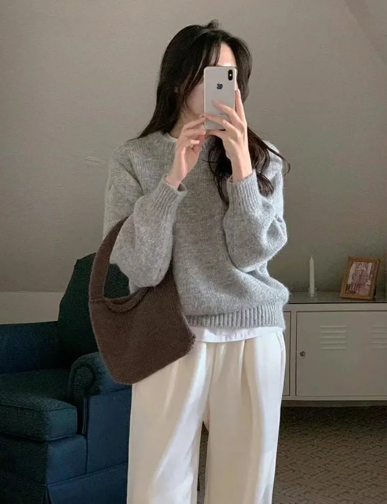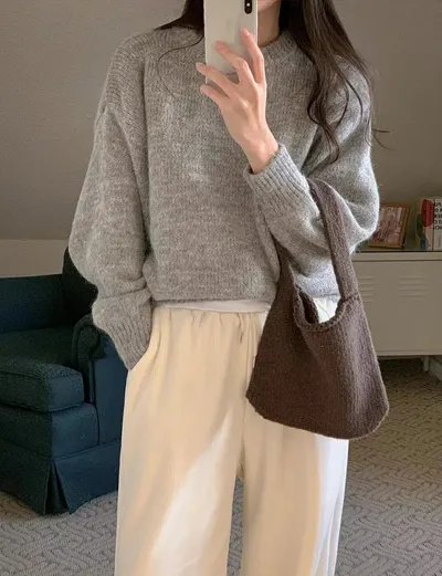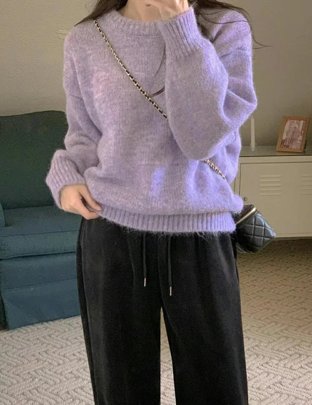 DCS4628 正韓 甜美素雅混色毛衣F 紫色 米白