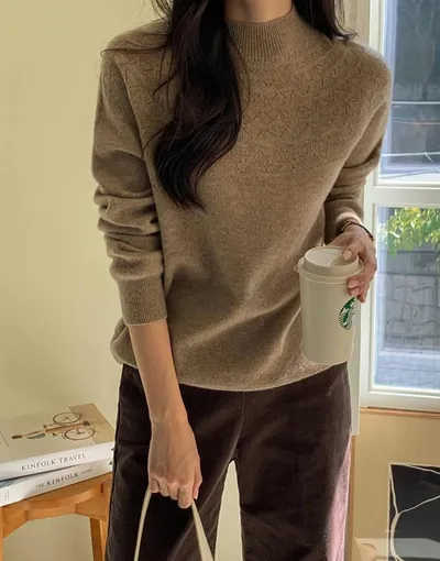 DCS4644 正韓 細緻編織微高領羊毛衫F 米色 咖色