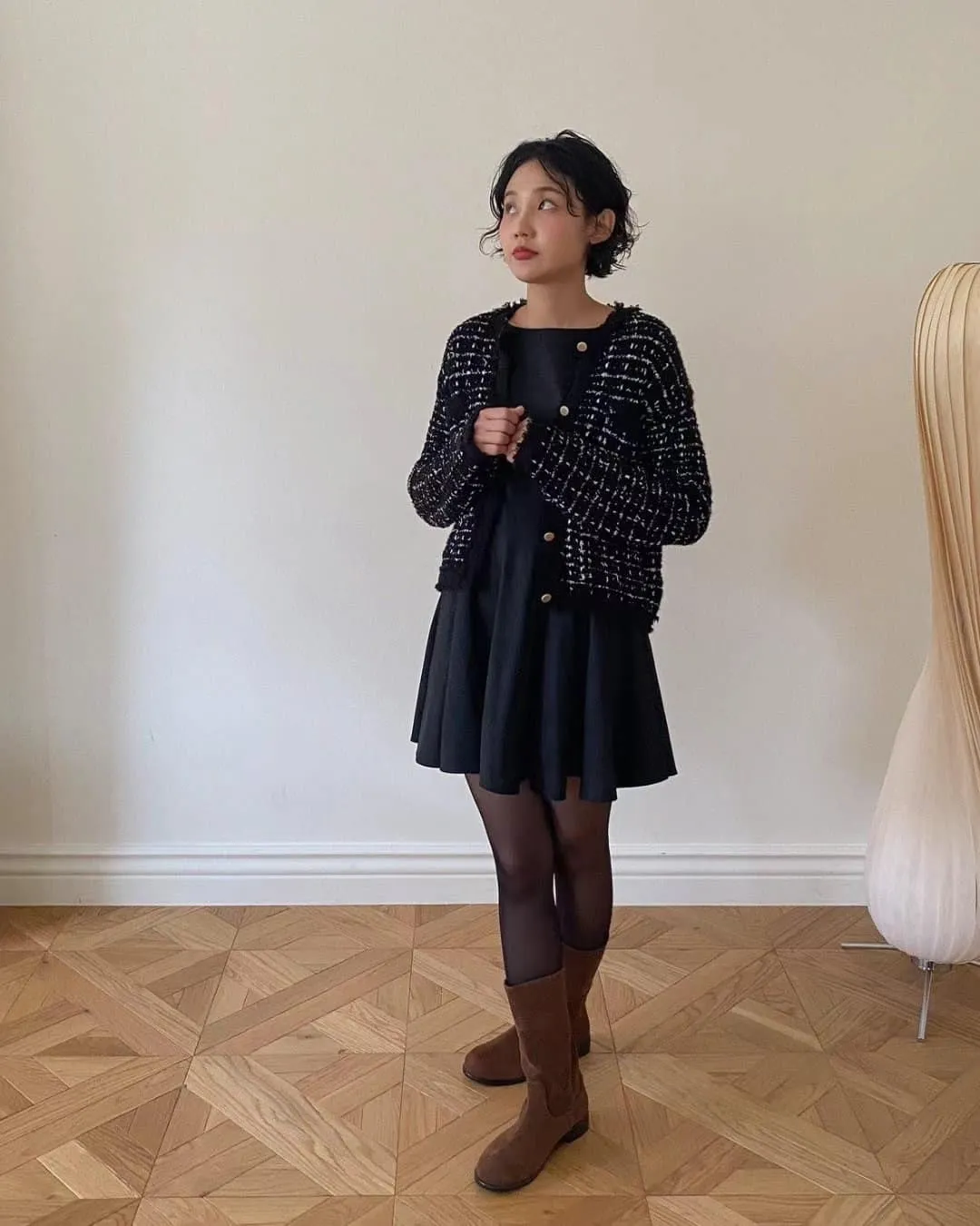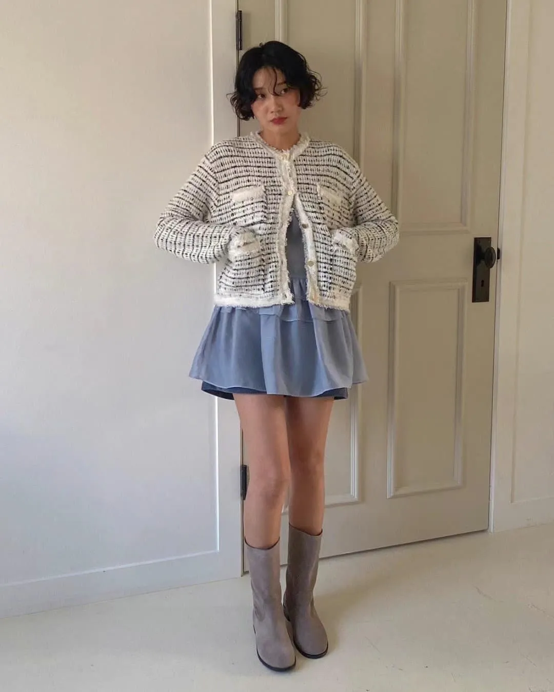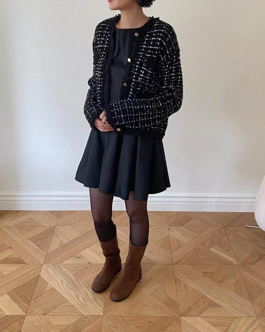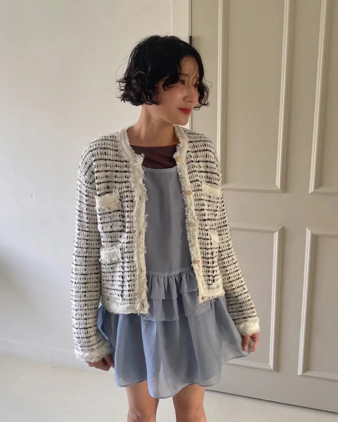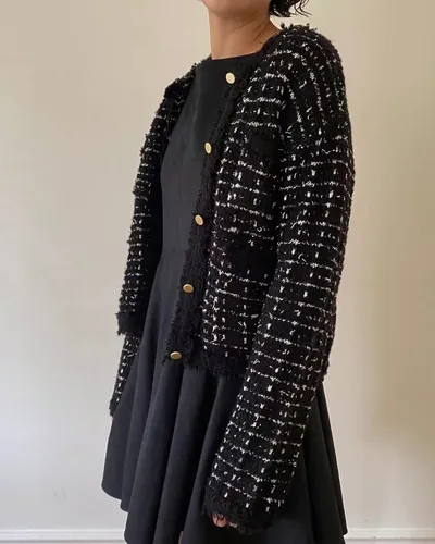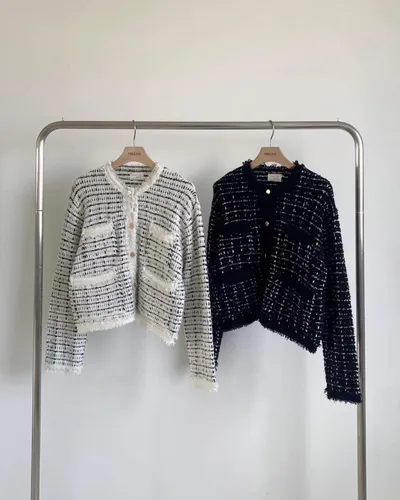 DCS4657 正韓 小香風混色織紋金扣外套F