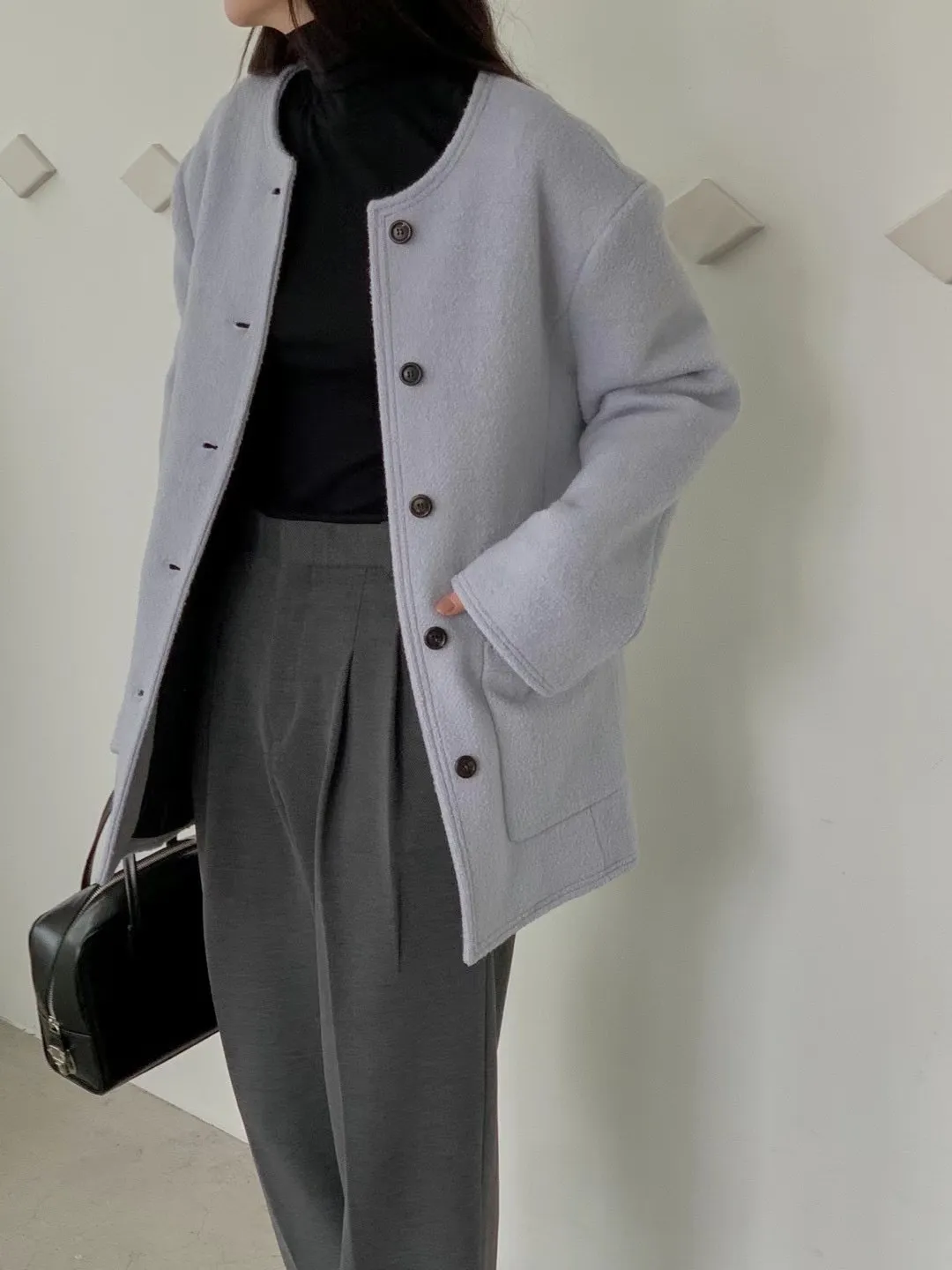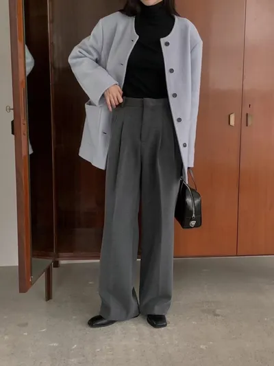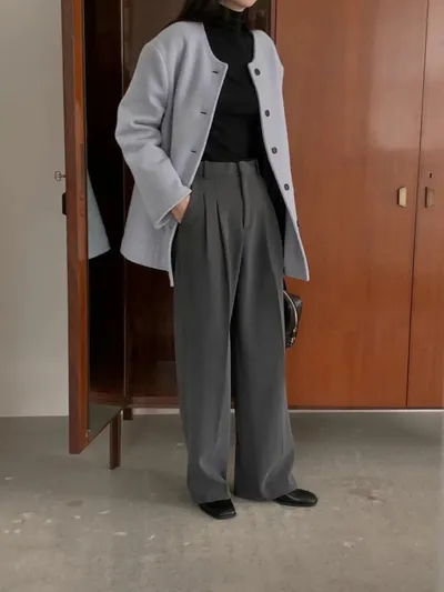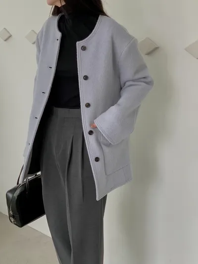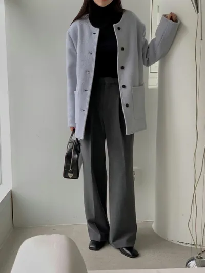 最喜歡這種簡約的無領大衣了