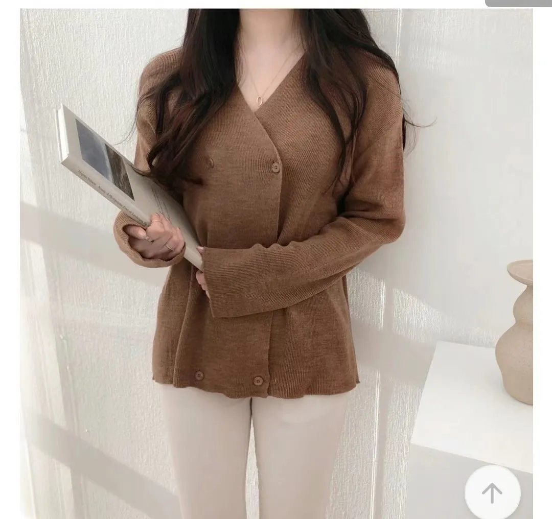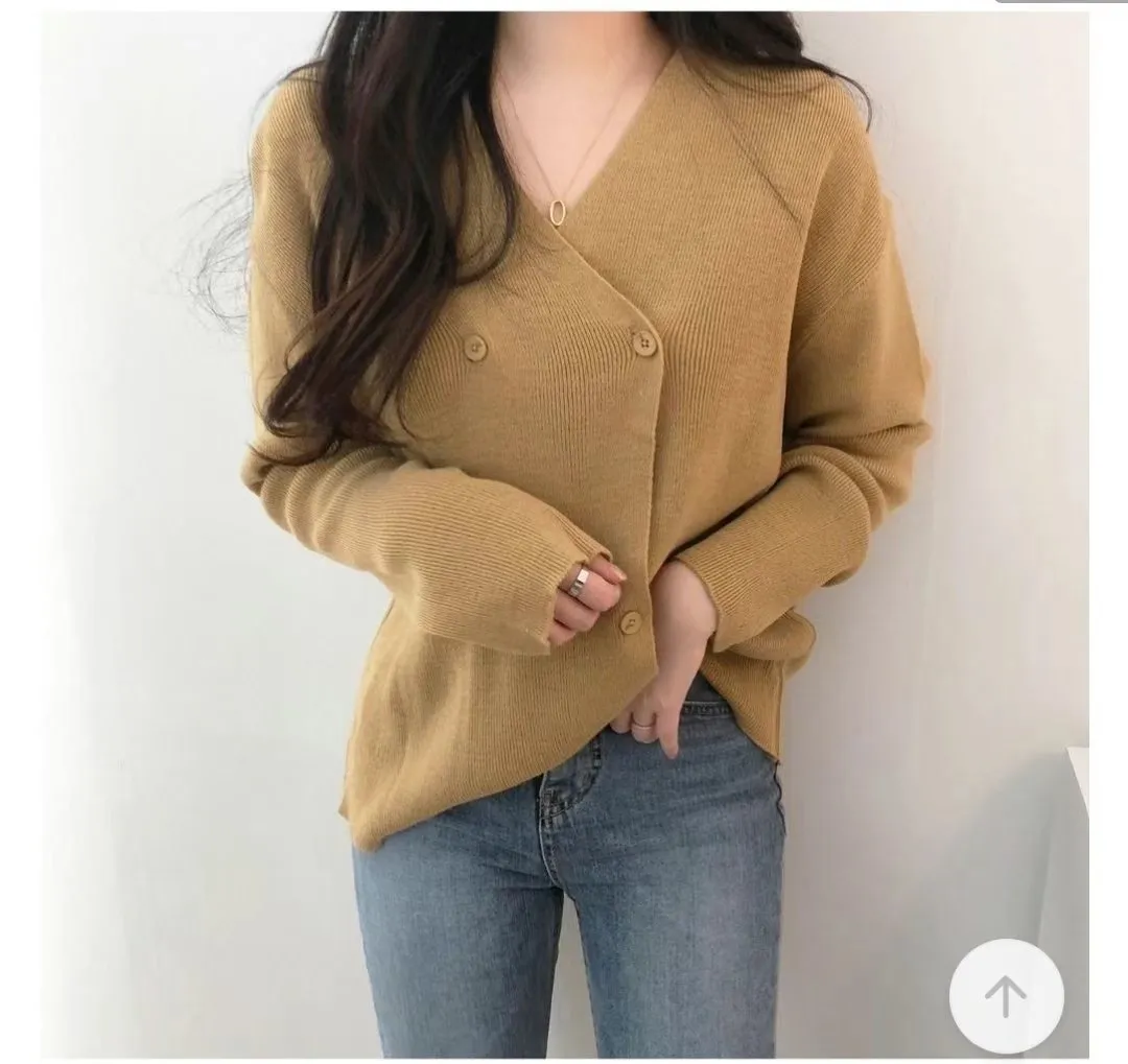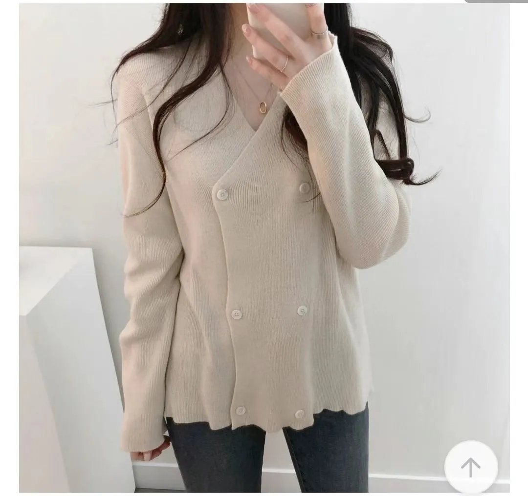 DCS4759 正韓 v領雙排扣針織外套F 綠色 粉色 米白 咖色