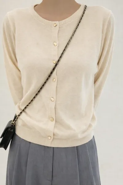 DCS4805 正韓 金色愛心扣針織外套F 米白