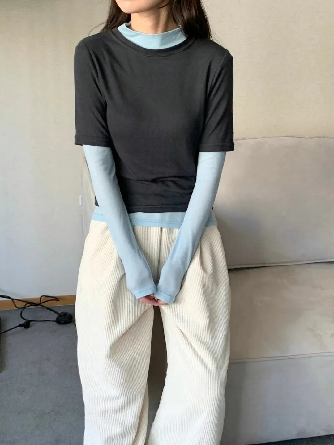 內裏長袖肩寬33 胸寬42 全長60cm外t 肩寬35 胸寬40 全長54cm東大門貴貴檔口出品 輕薄舒服的材質,彈性好 雙色搭配很好看 穿起來是合身感的 可分開搭配 米白X杏色 水藍X深藍 黑色X淺灰 Made in Korea 折扣款除瑕疵無法退換貨 顏色可能會有色差 #2024冬季sale