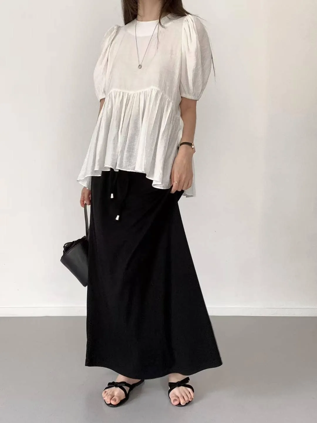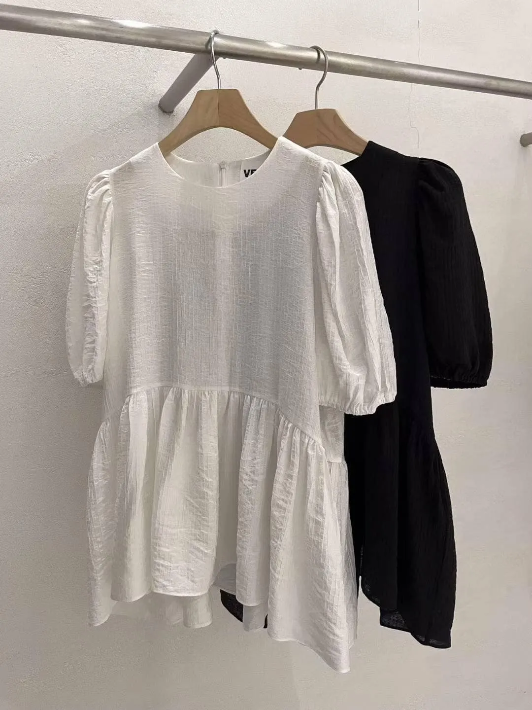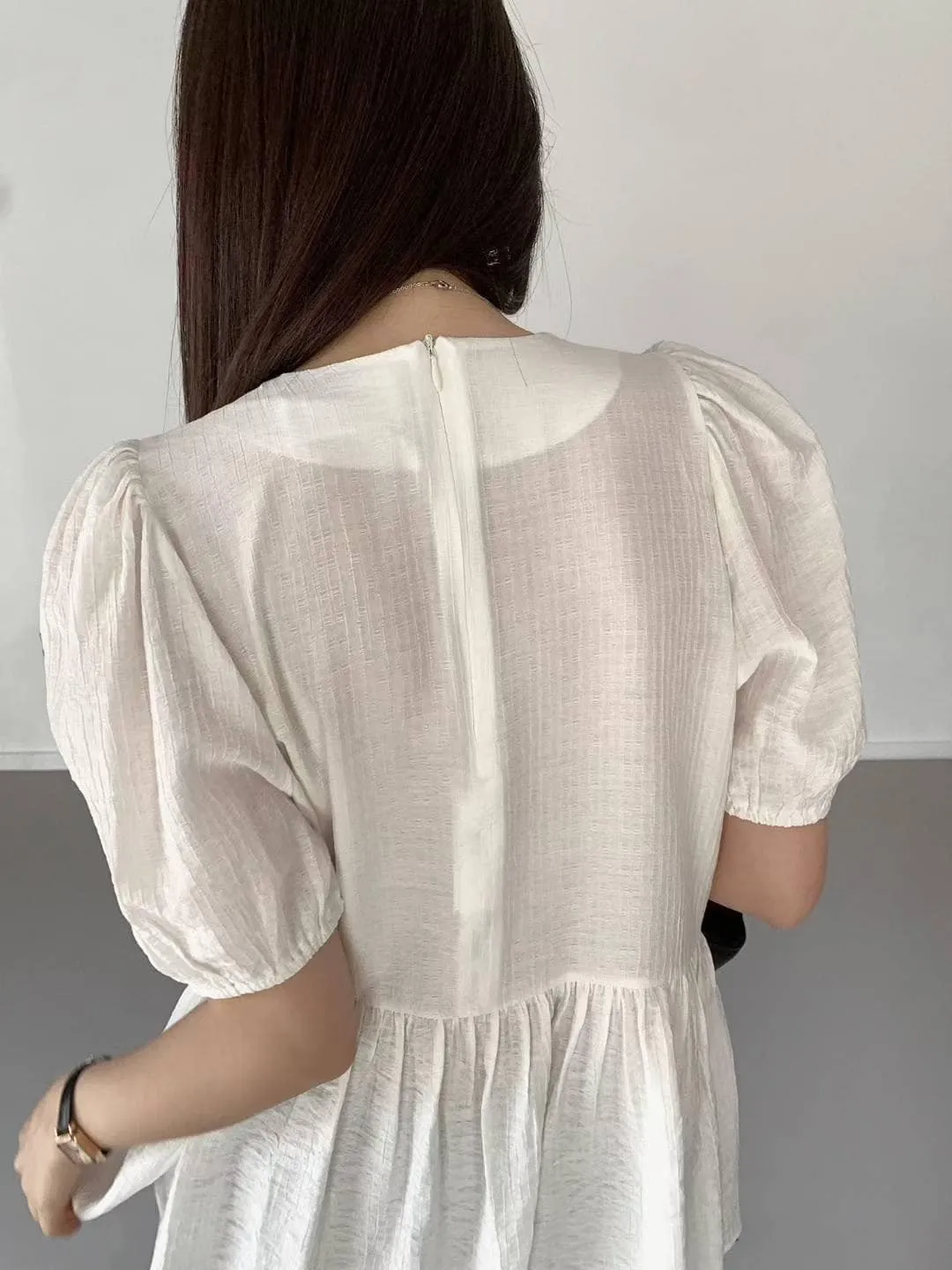 微透感的裙擺長版上衣,後拉鏈穿脫