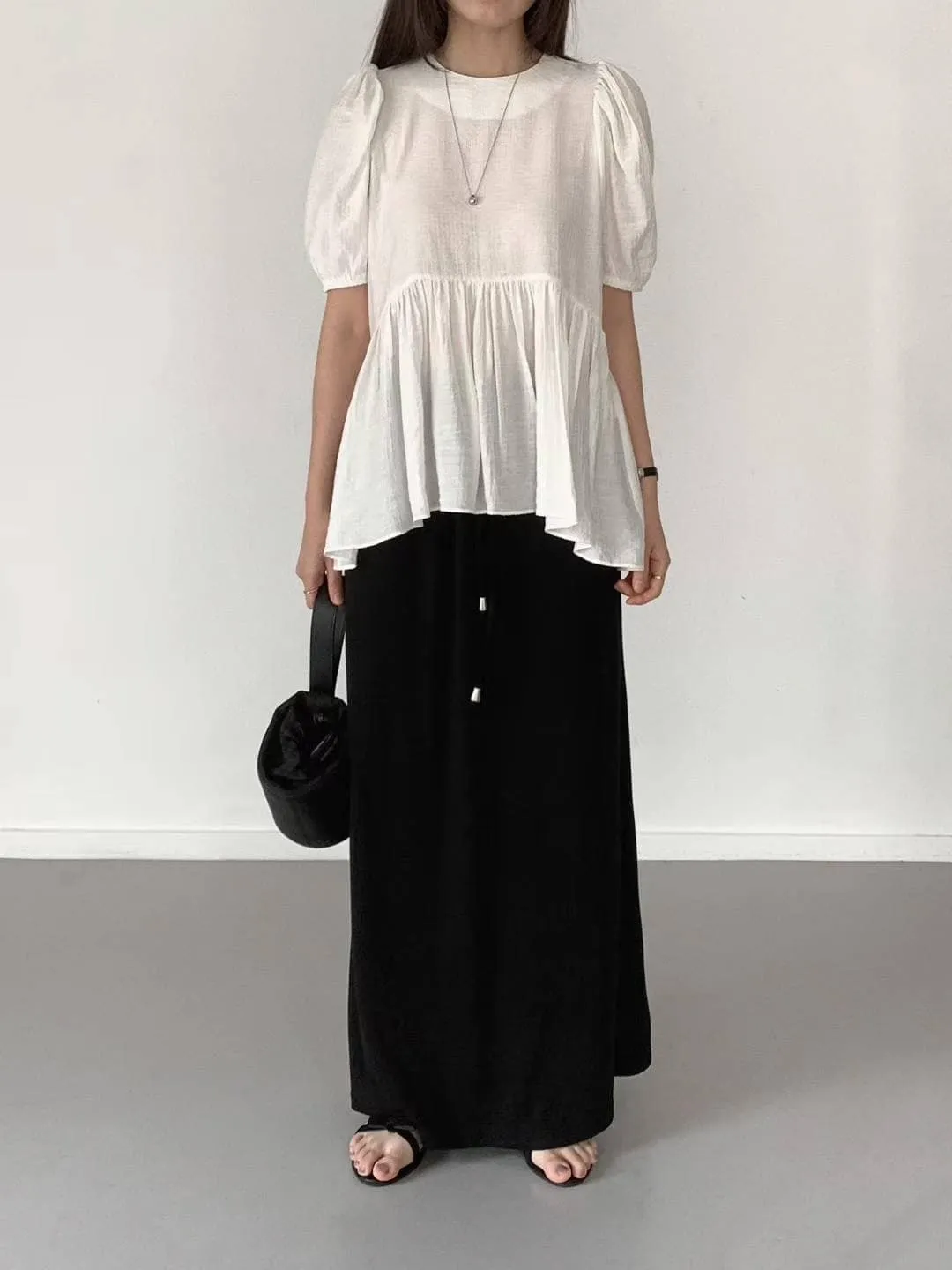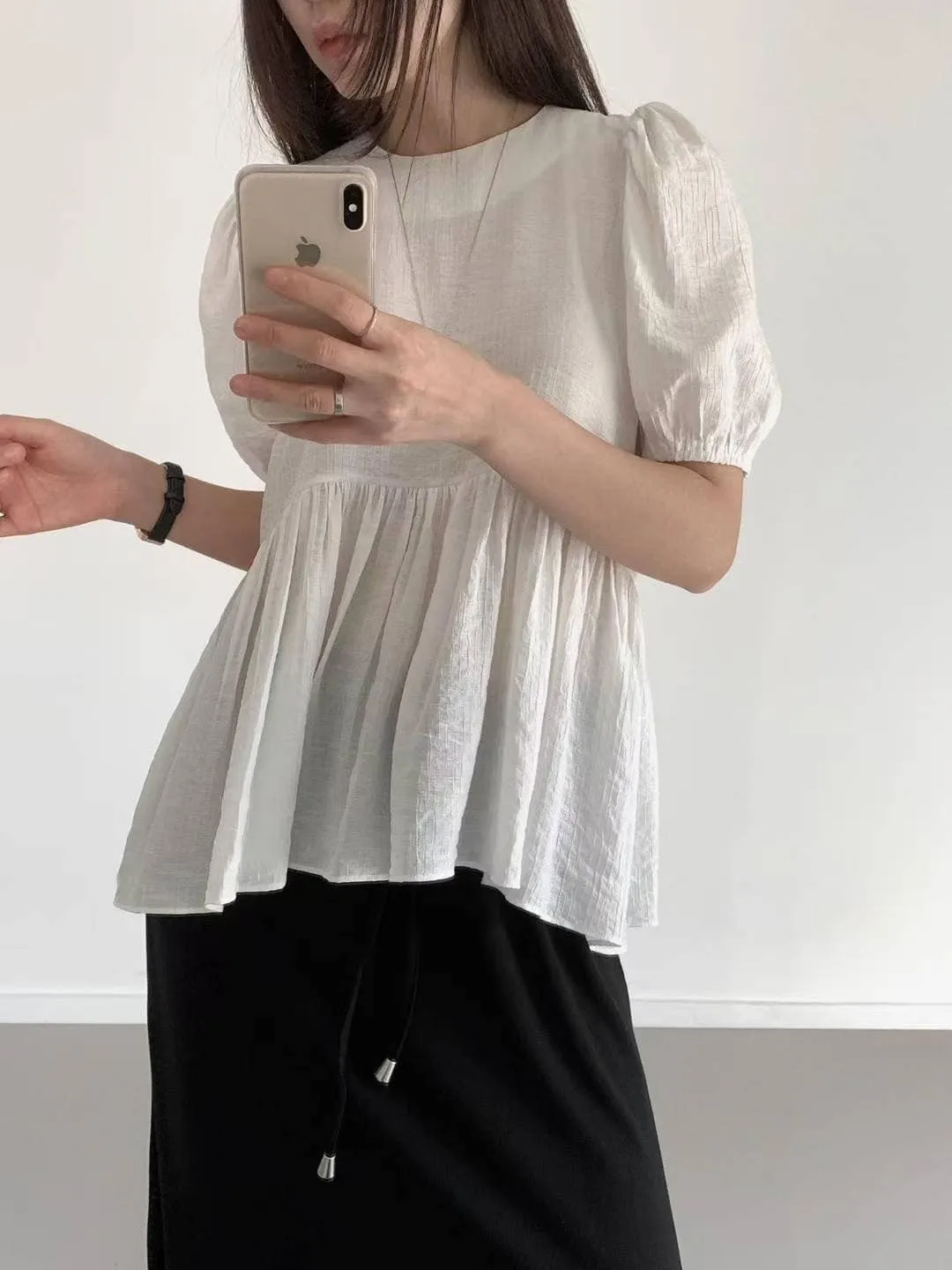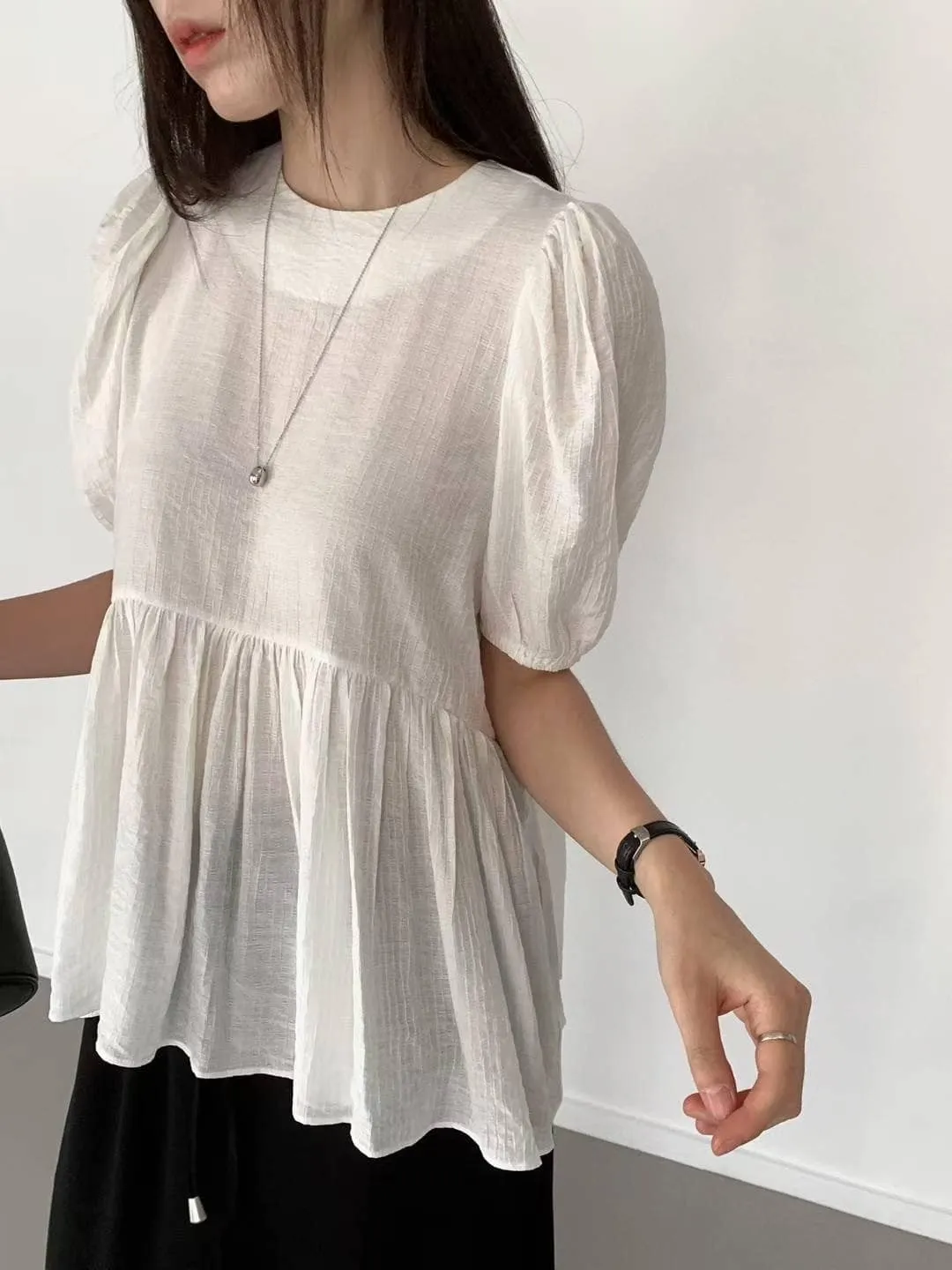微透感的裙擺長版上衣,後拉鏈穿脫