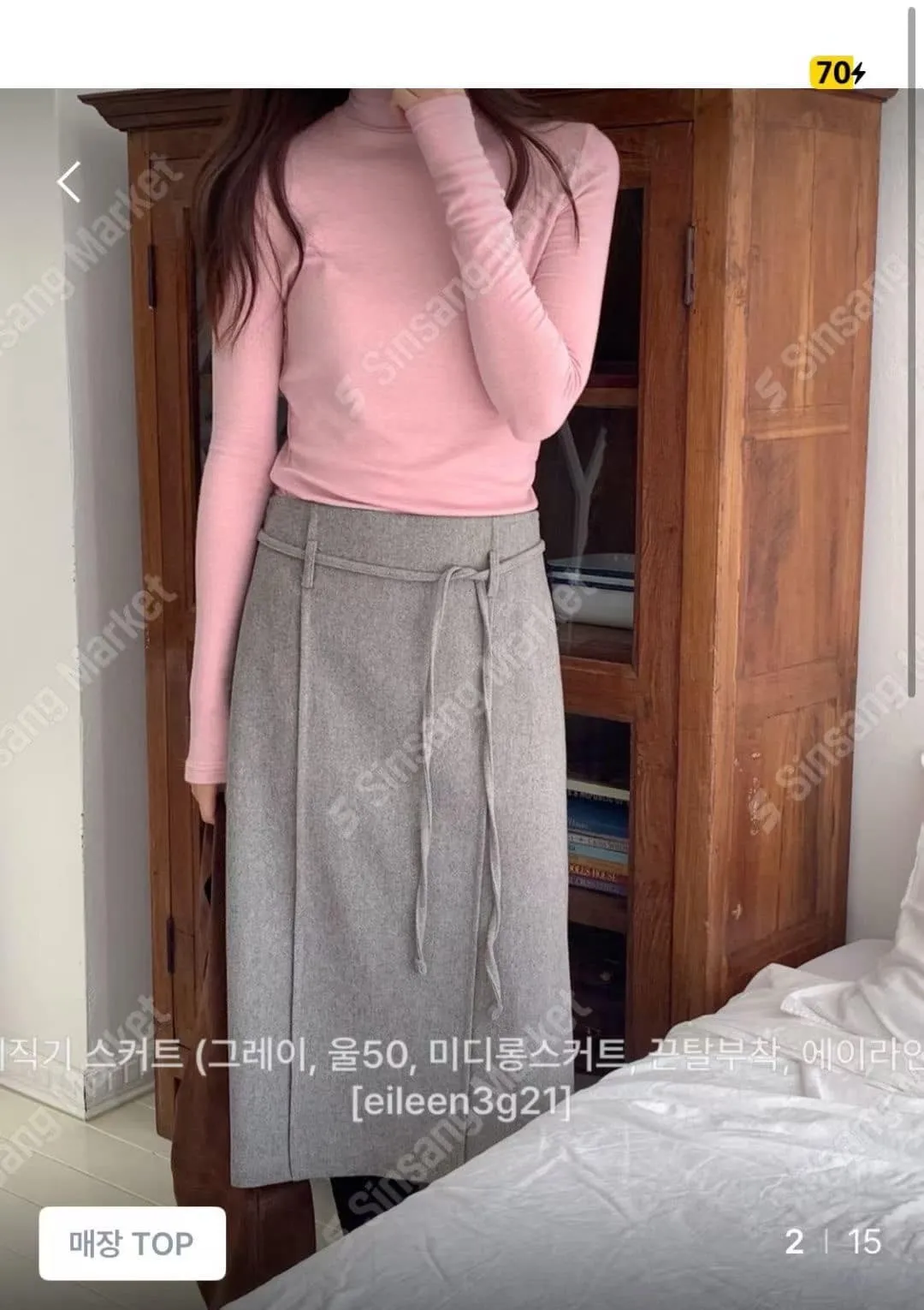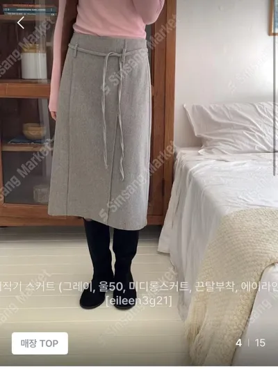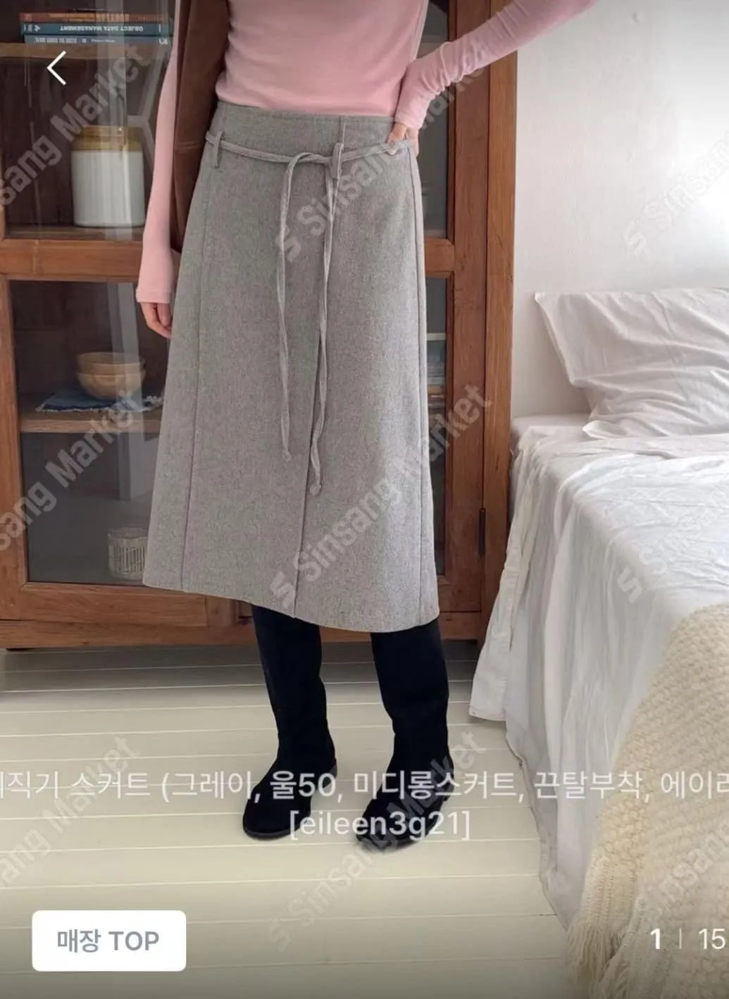 DCS558301 正韓 腰綁帶羊毛a字裙 咖色 S