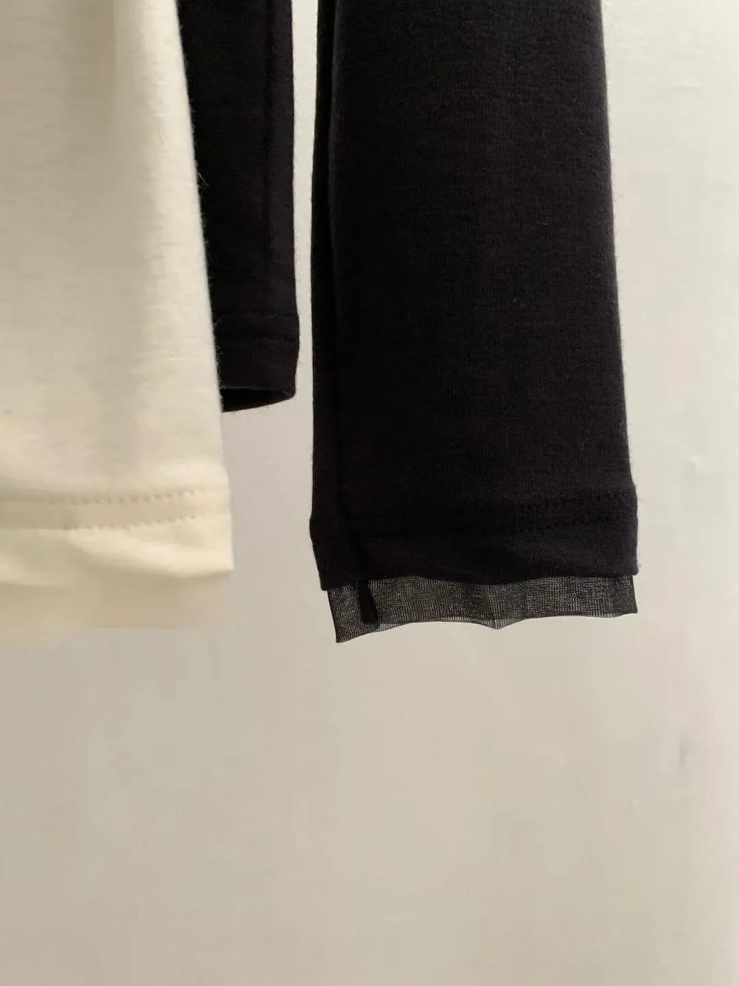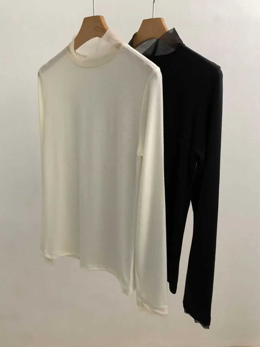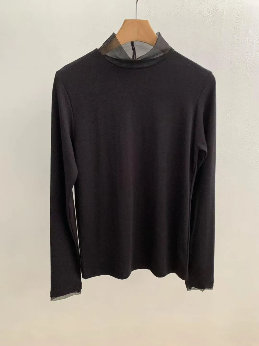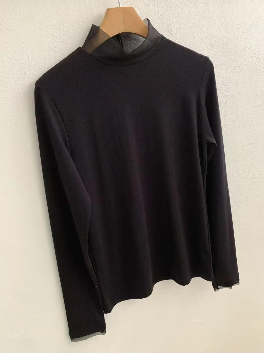 DCS5790 正韓 領口接紗舒服彈性打底棉衫F 黑色/米白