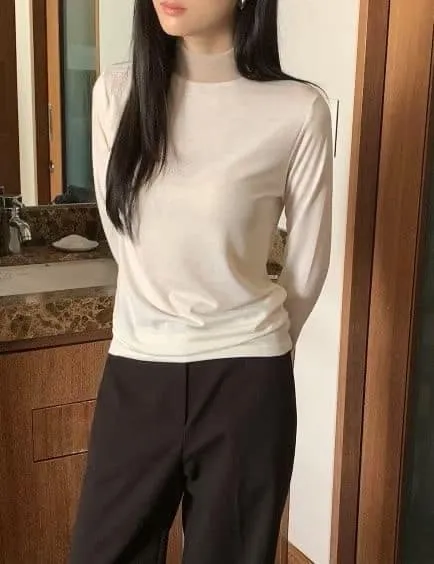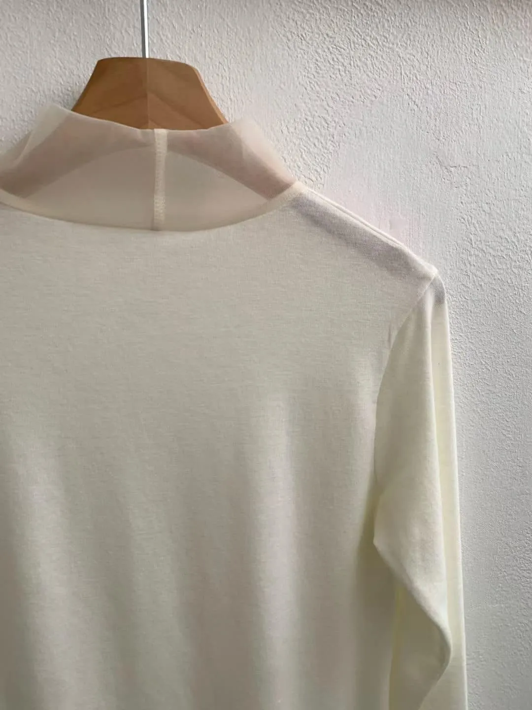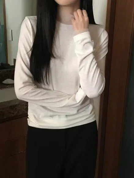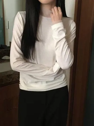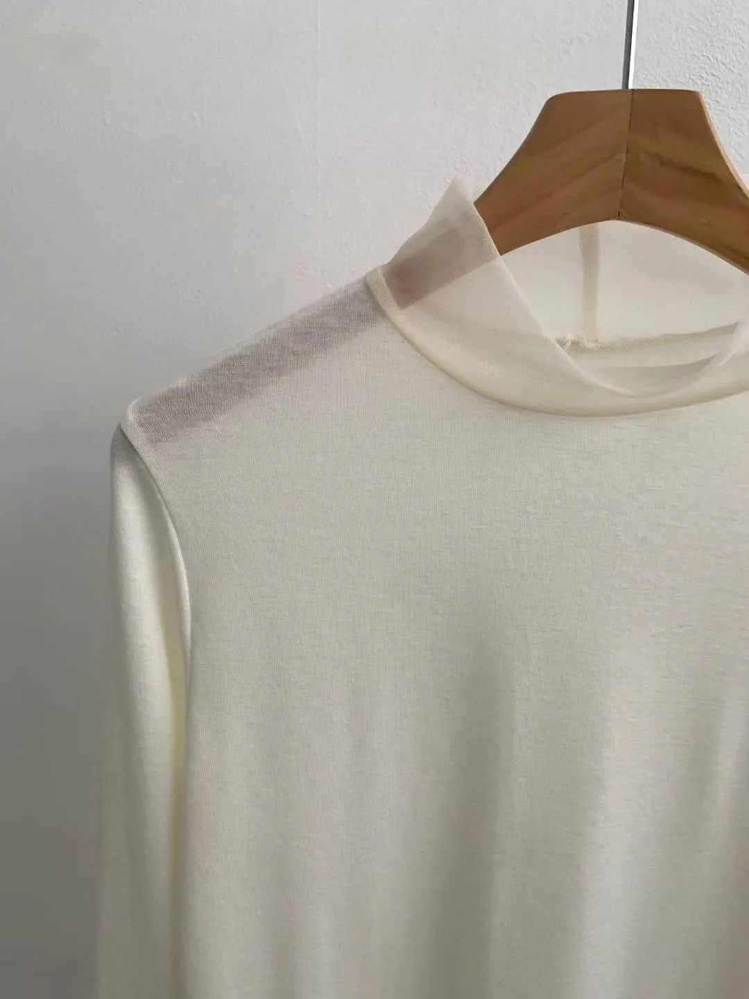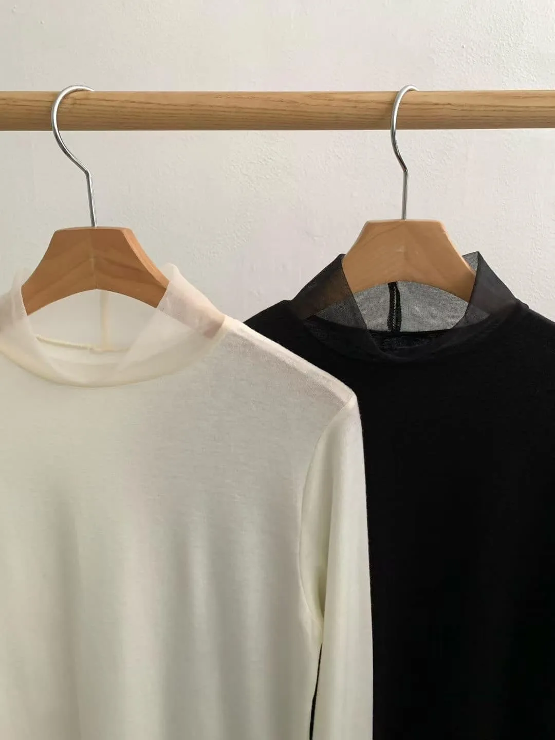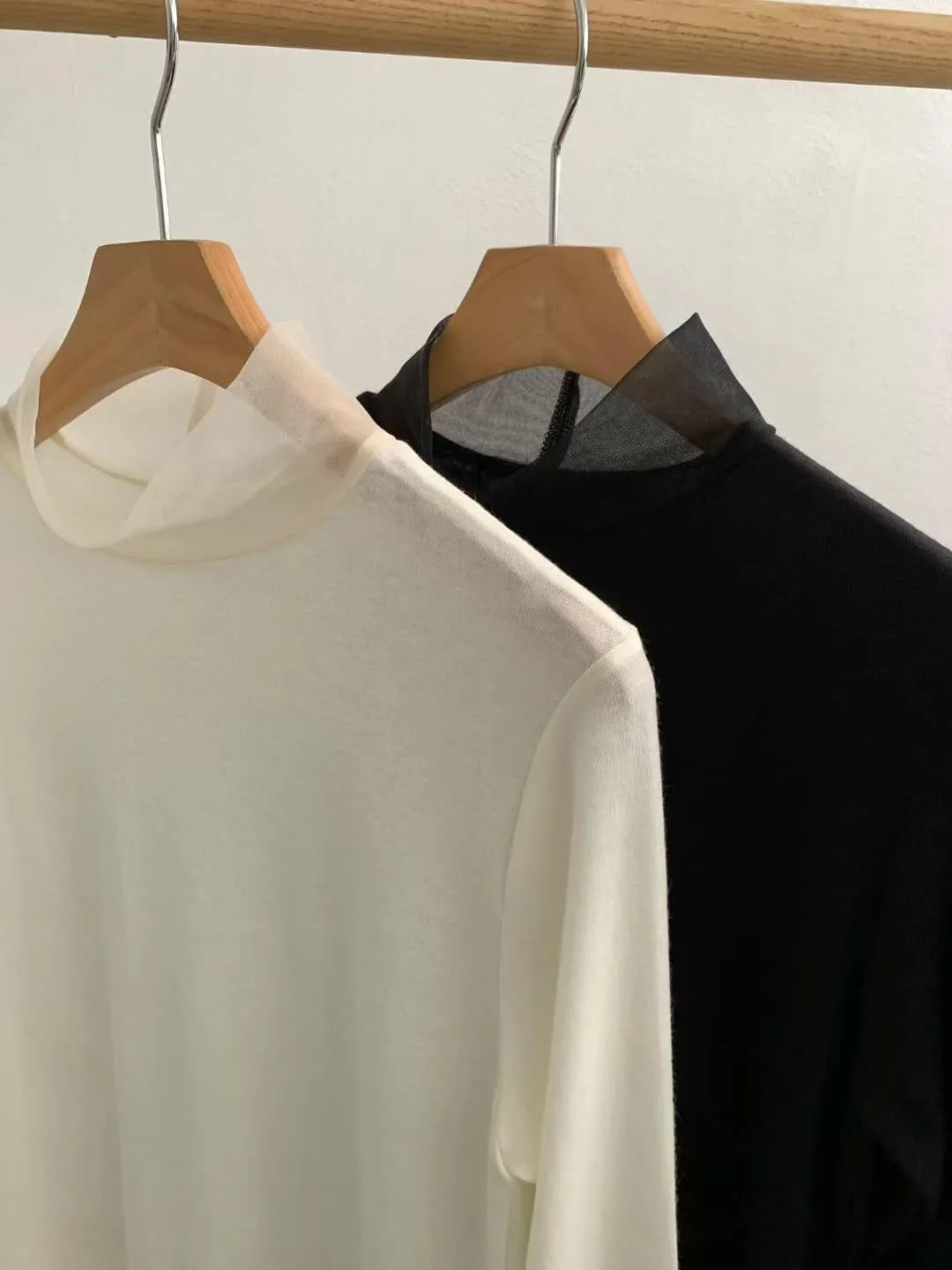 DCS5790 正韓 領口接紗舒服彈性打底棉衫F 黑色/米白