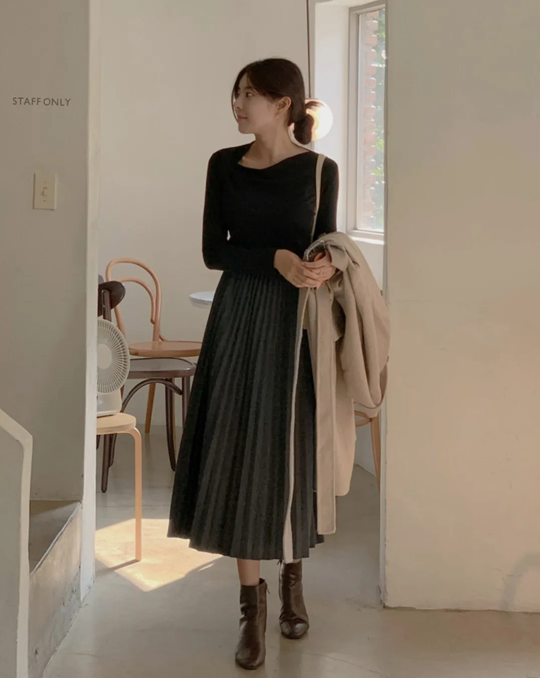 // Best Review 🖤 🖤 //11.28~11.31 冬季熱賣款限時折扣7%滿2000超取免運coupon輸入 “ WINTER11 ” 立折50元絕對是百搭的裙款,闆娘終於找到顏色跟面料都蠻不錯的款式 這件腰圍全鬆緊,完全不限尺寸 垂墜度也很好 5個顏色都很值得買唷肩寬62 全長77.5cm