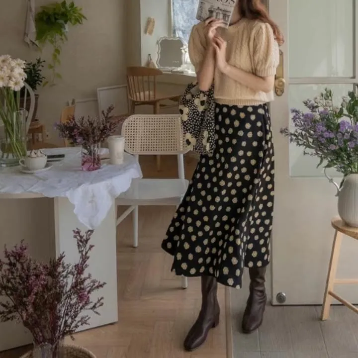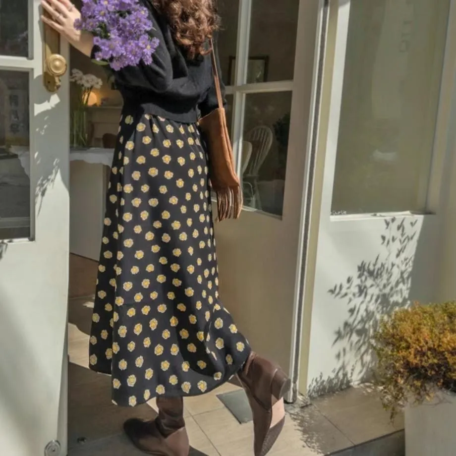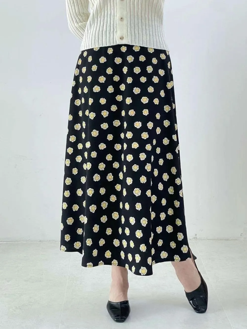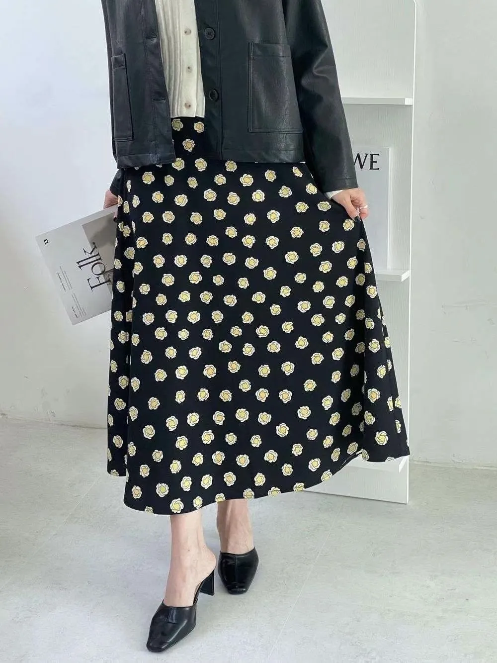 DSC4106 正韓 小花雪紡圓裙F 黑色