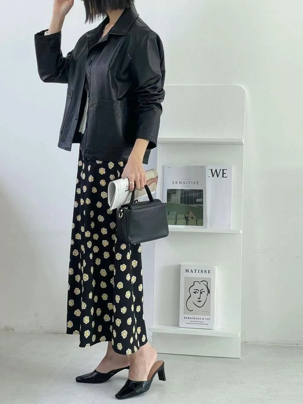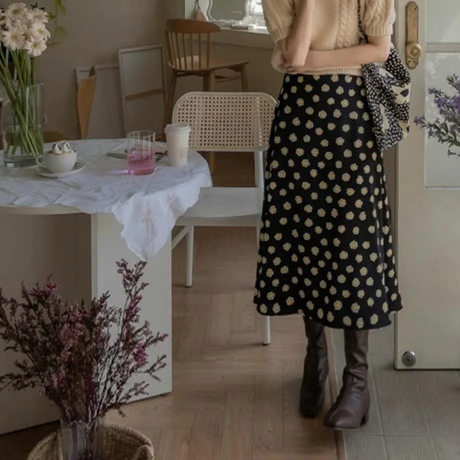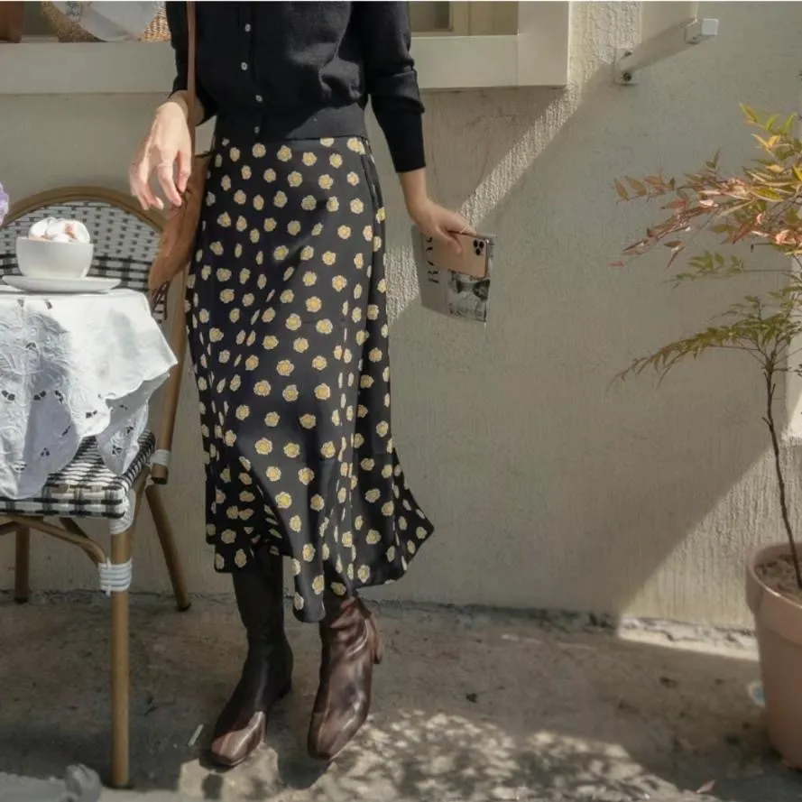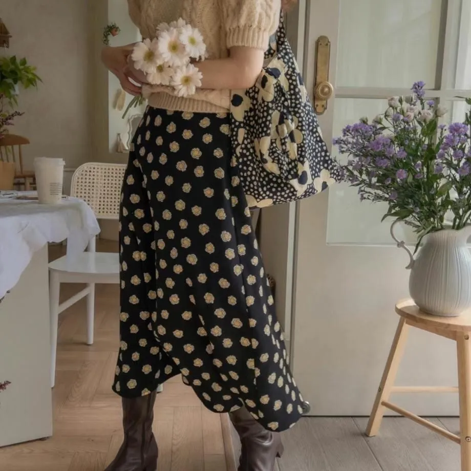 DSC4106 正韓 小花雪紡圓裙F 黑色