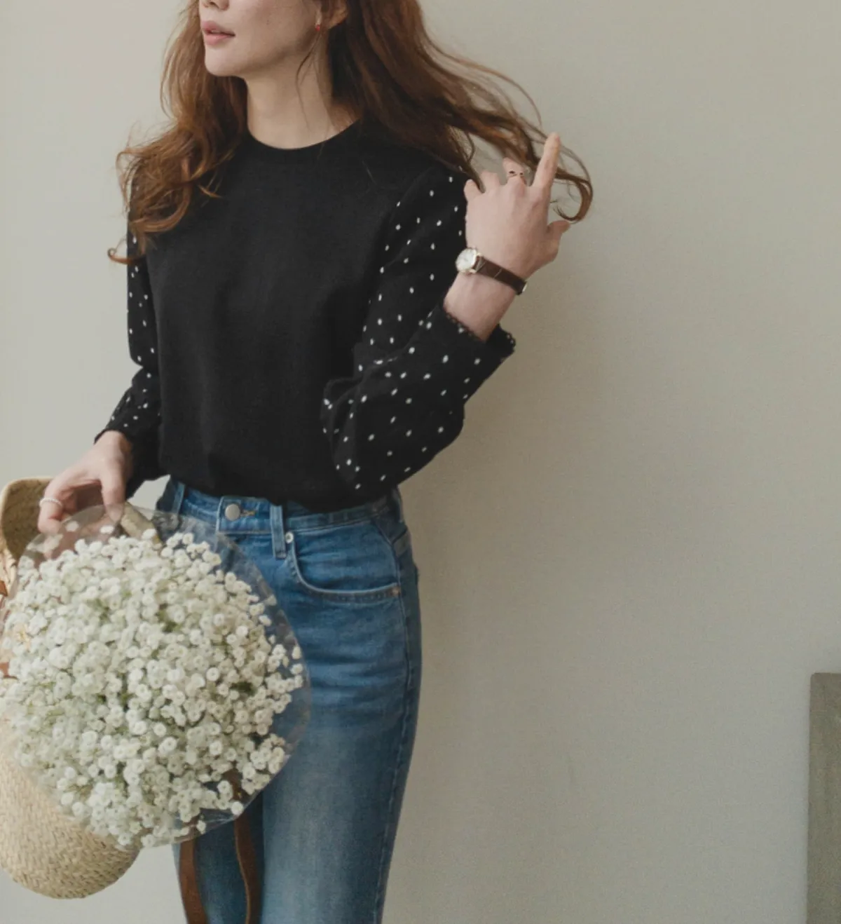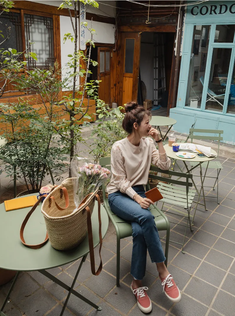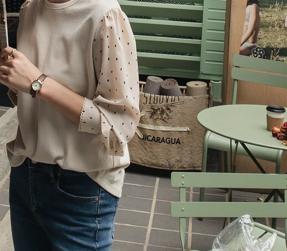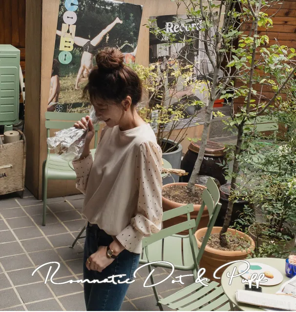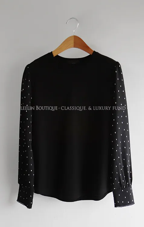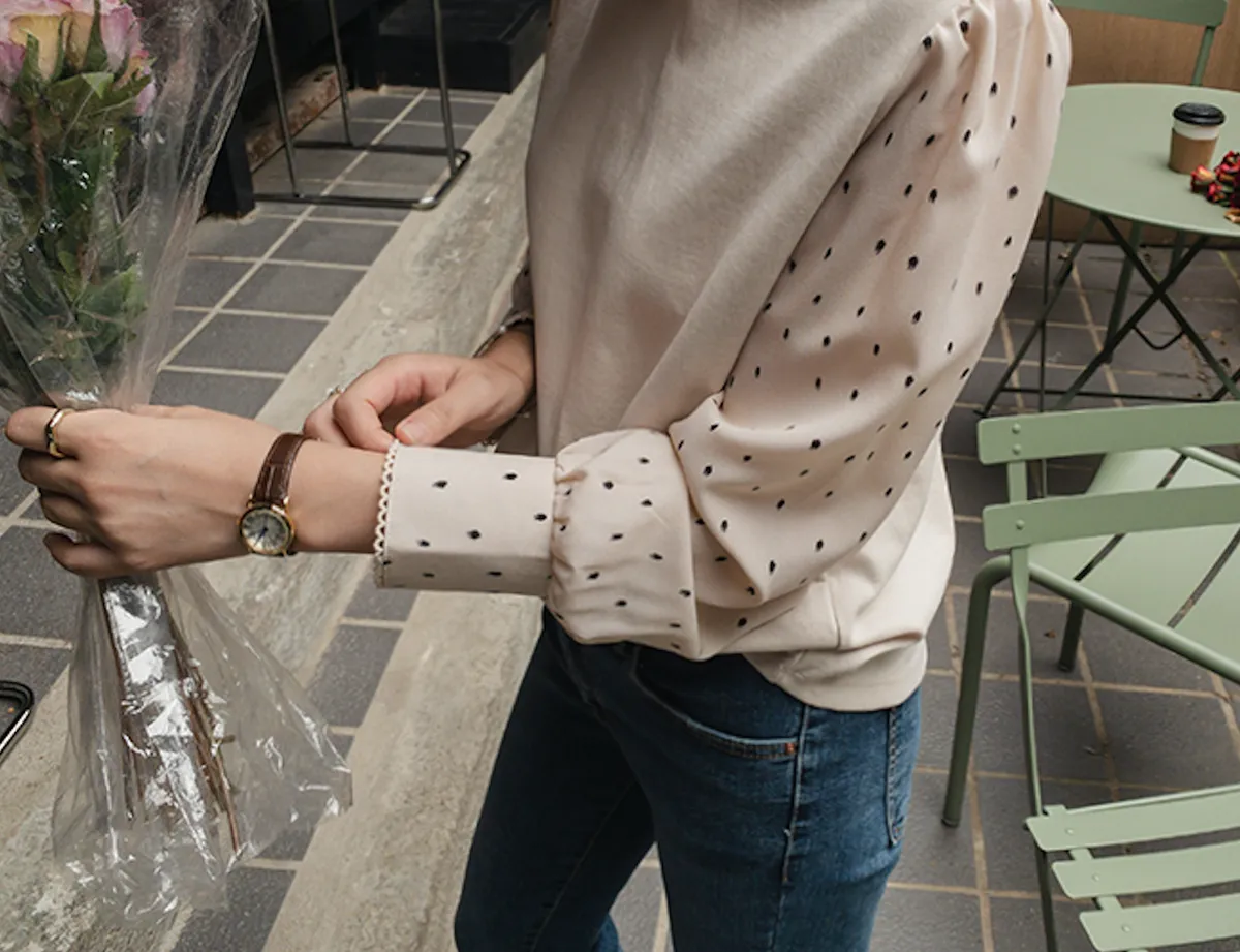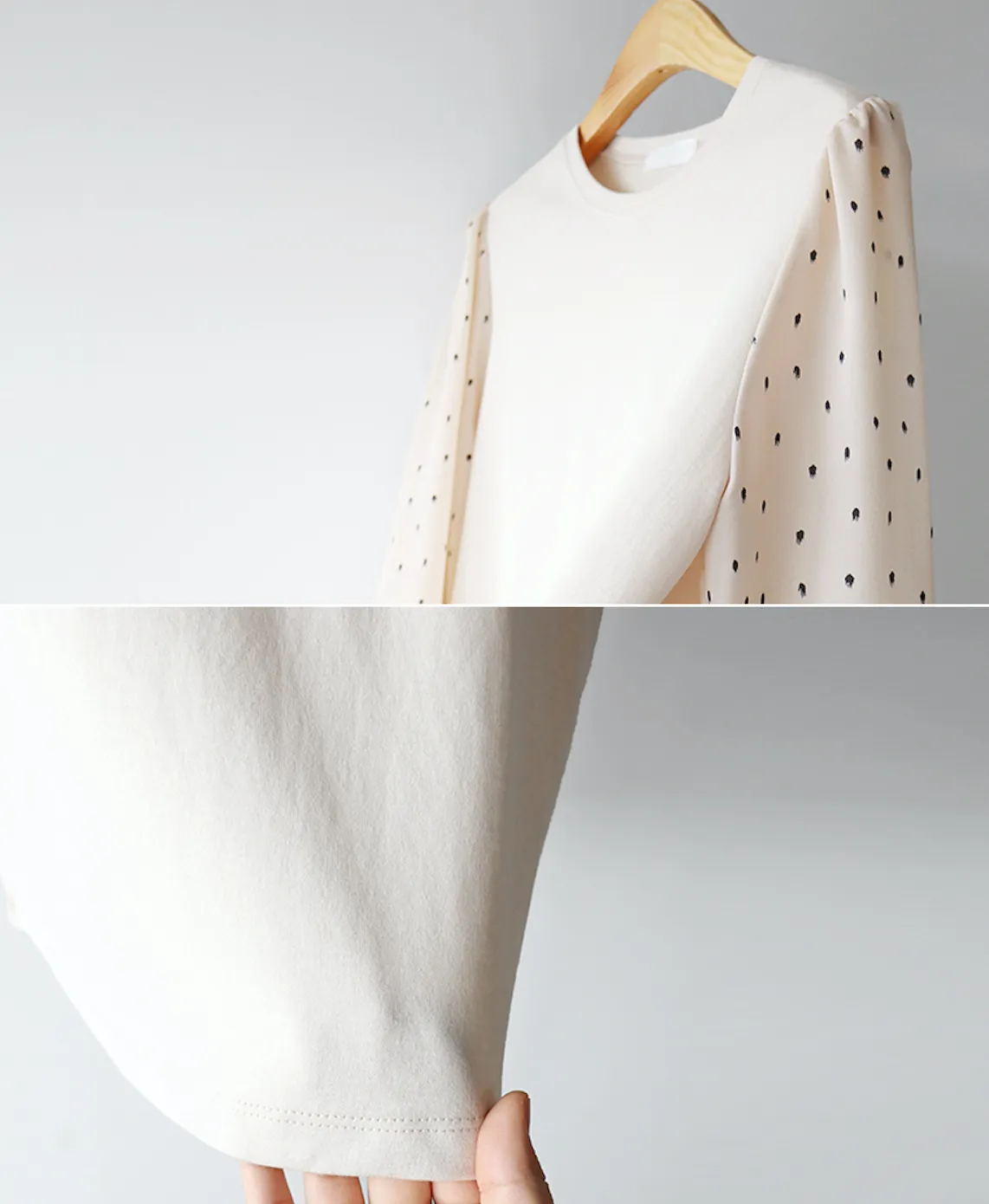 棉質拼接袖點點雪紡