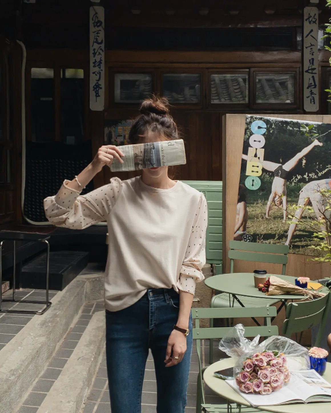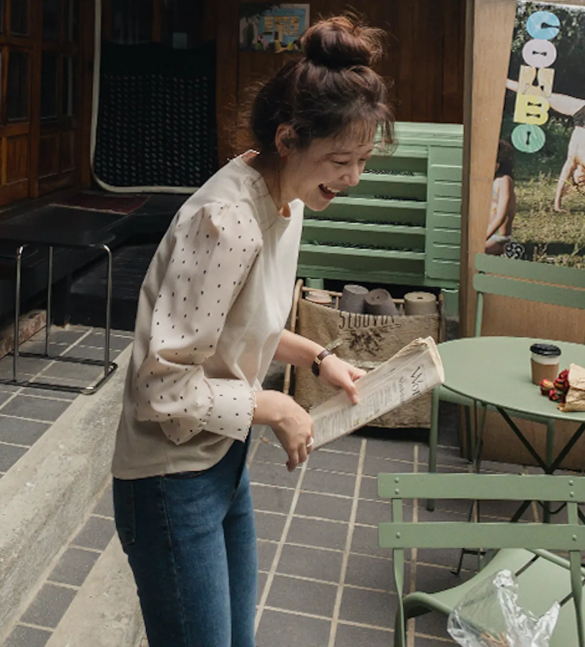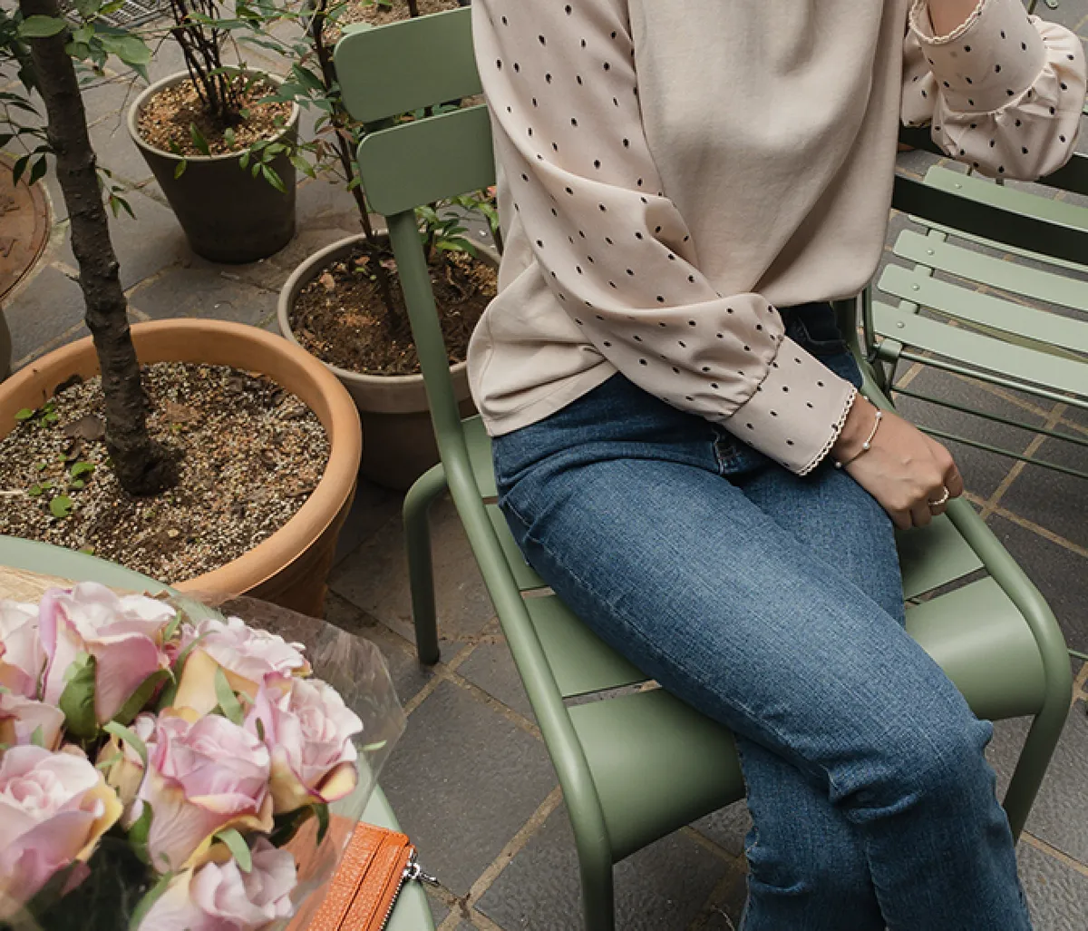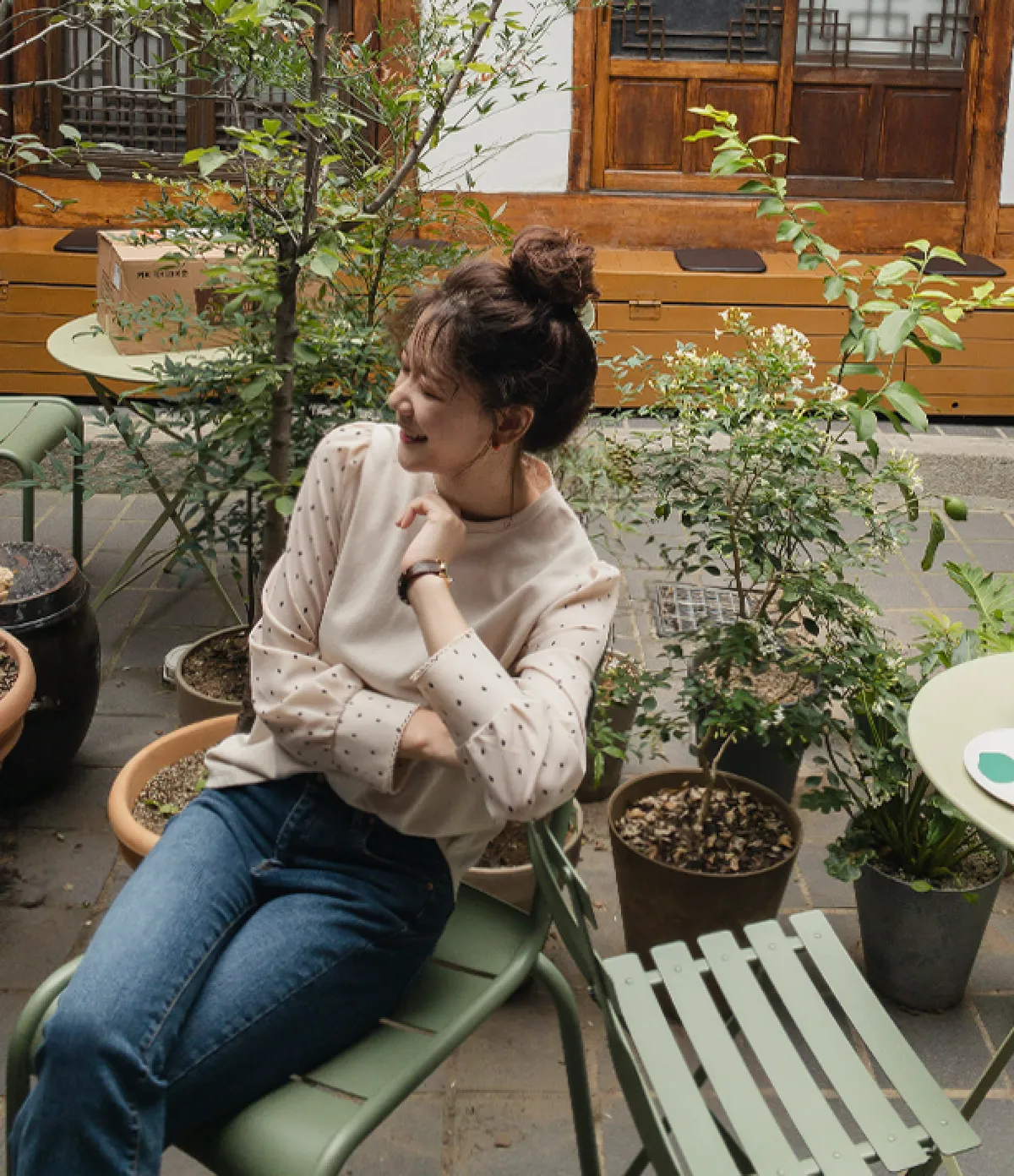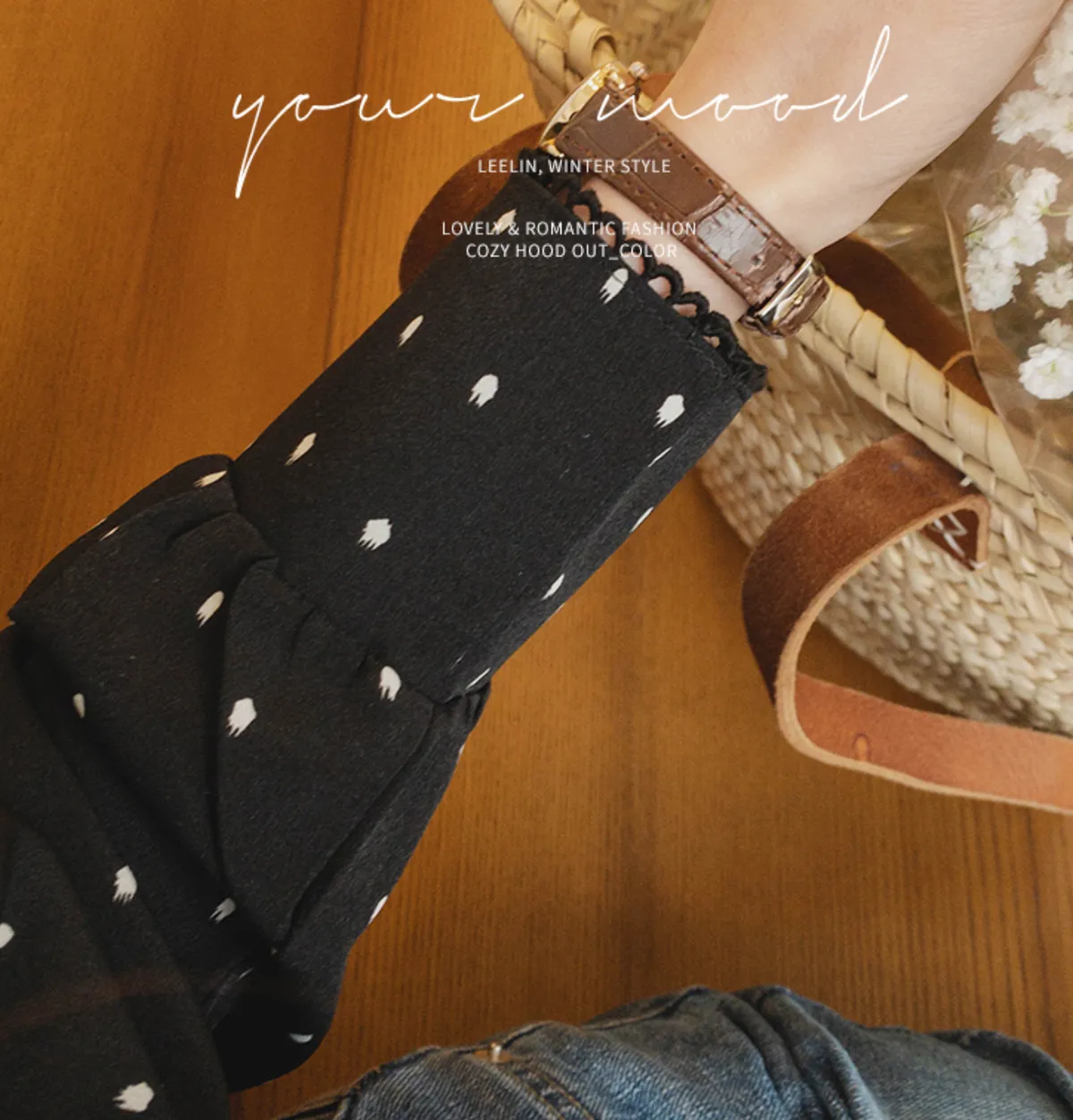 棉質拼接袖點點雪紡