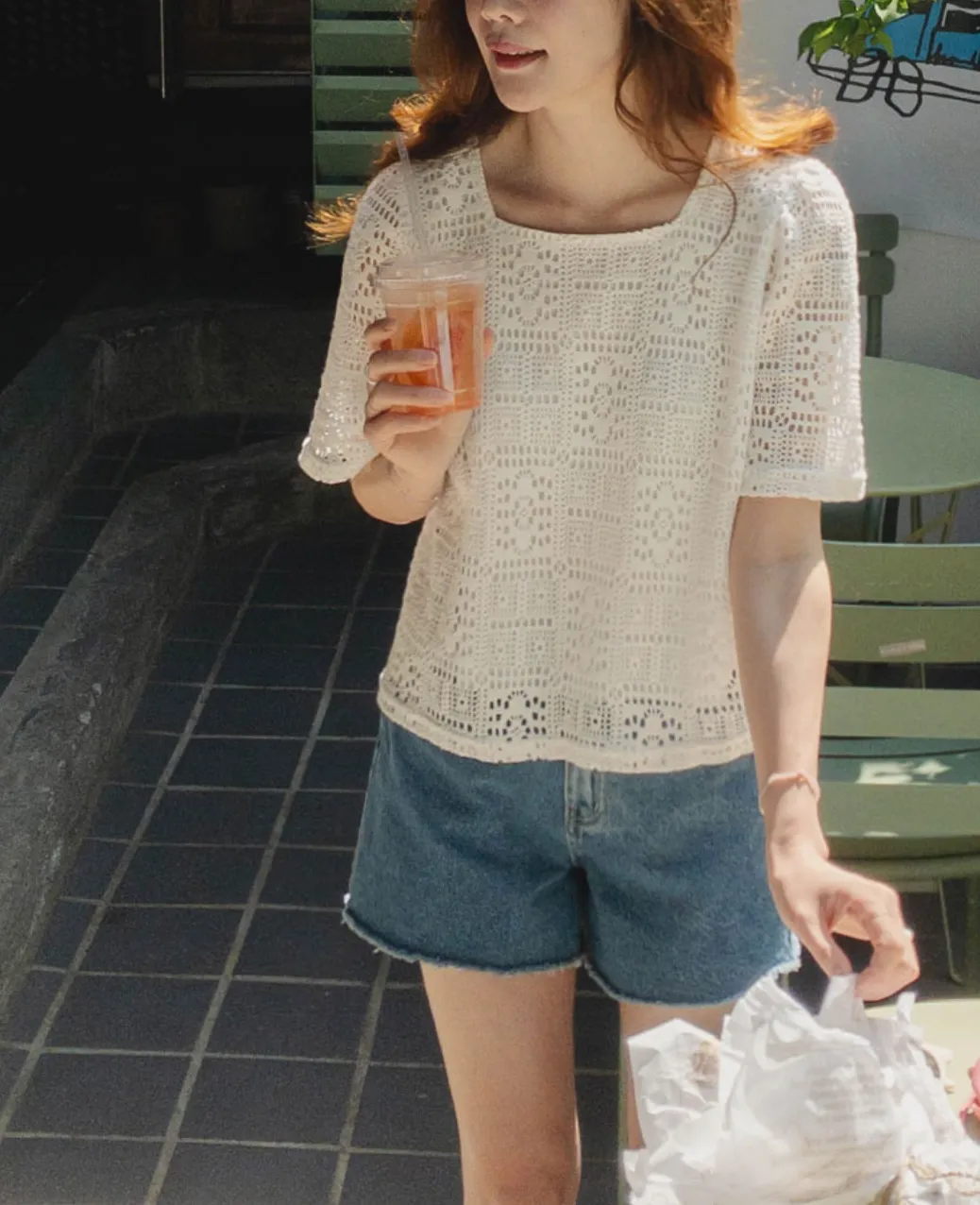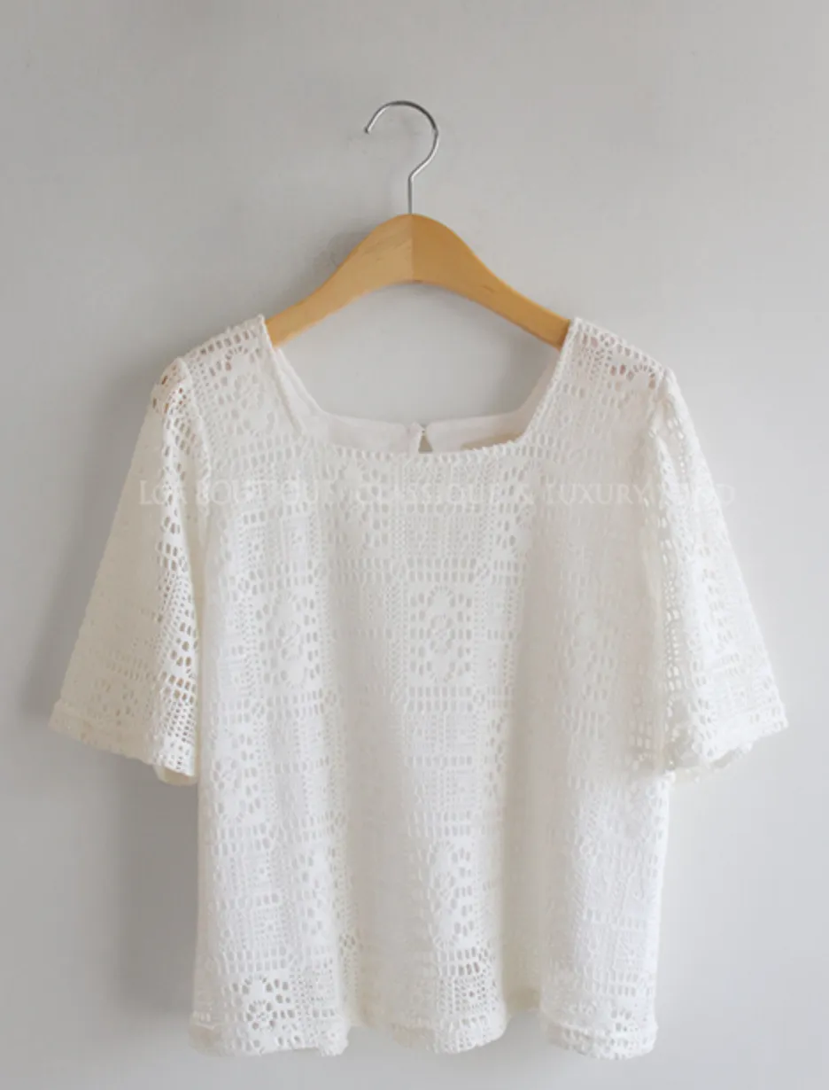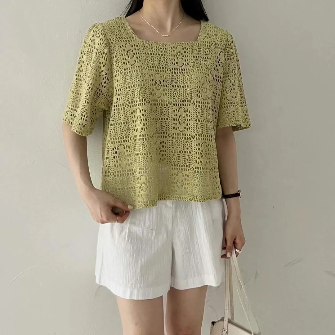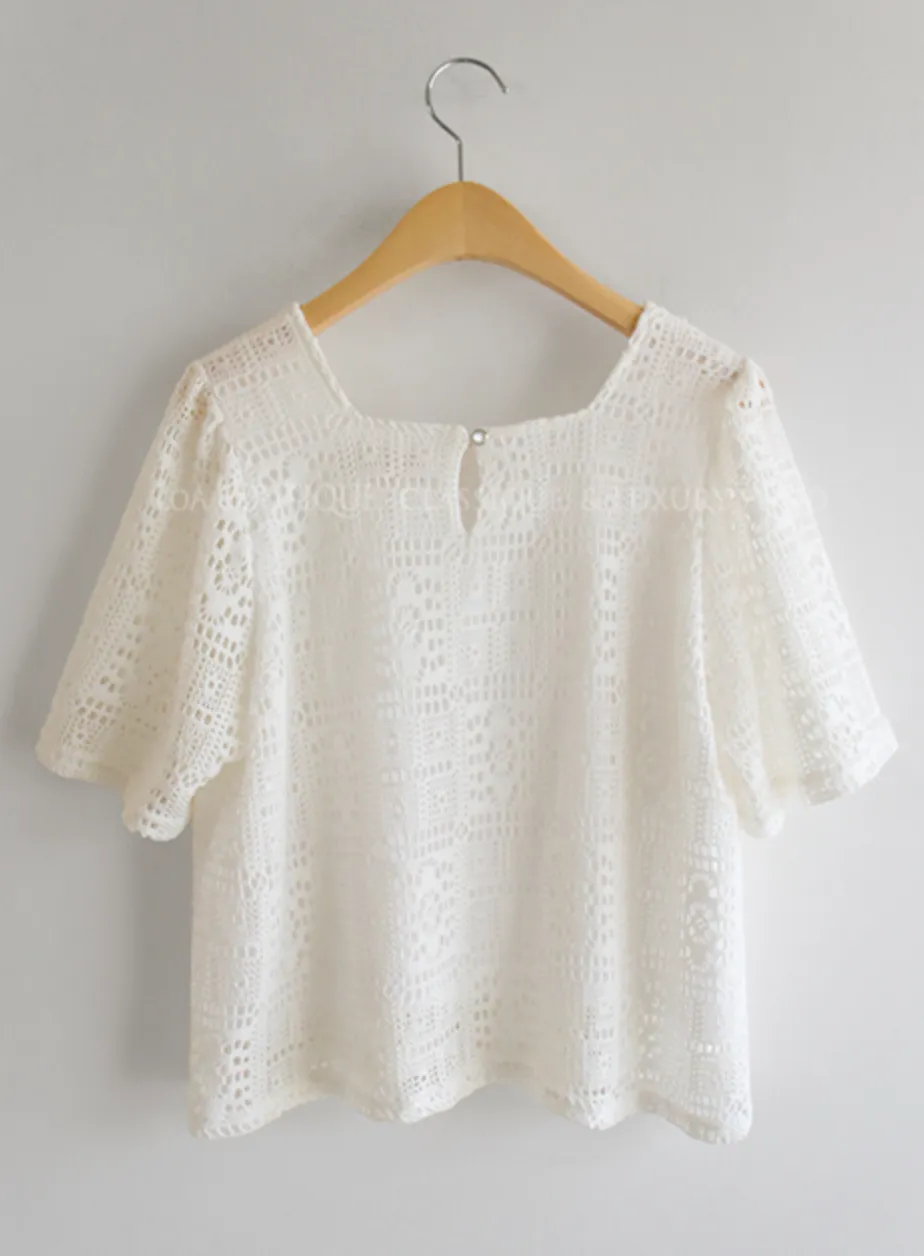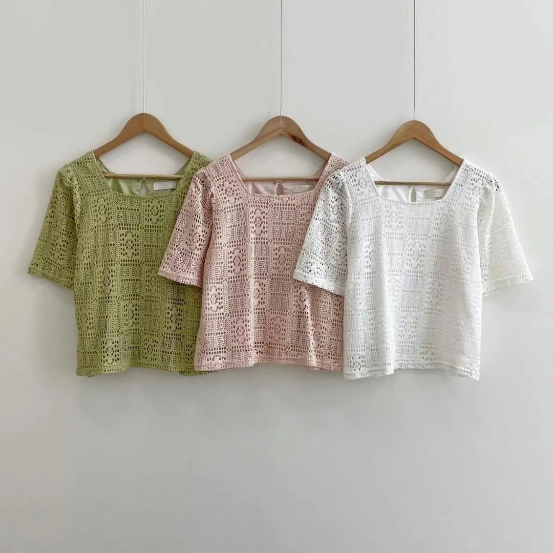 這件闆娘已包色!芥末綠跟白色好看呀 超喜歡這種版型的衣服,小寬袖又小A字廓形 不用紮就很好看! 布蕾絲的質感也很棒,這件有內裡,單穿完全不透 小方領露出鎖骨,也顯瘦 推薦! made in korea 肩寬36胸寬53衣長53cm