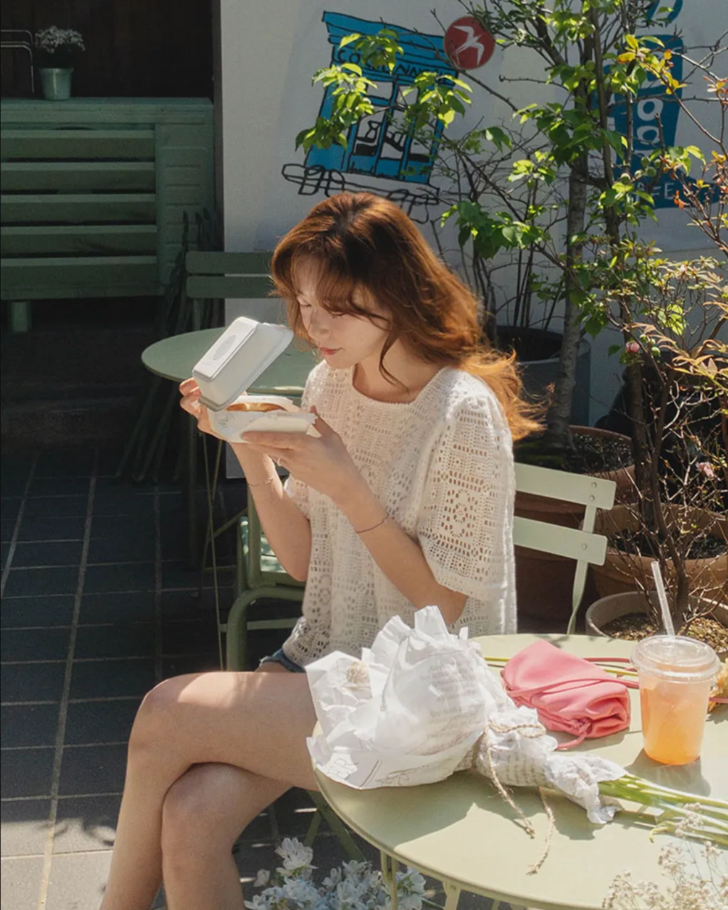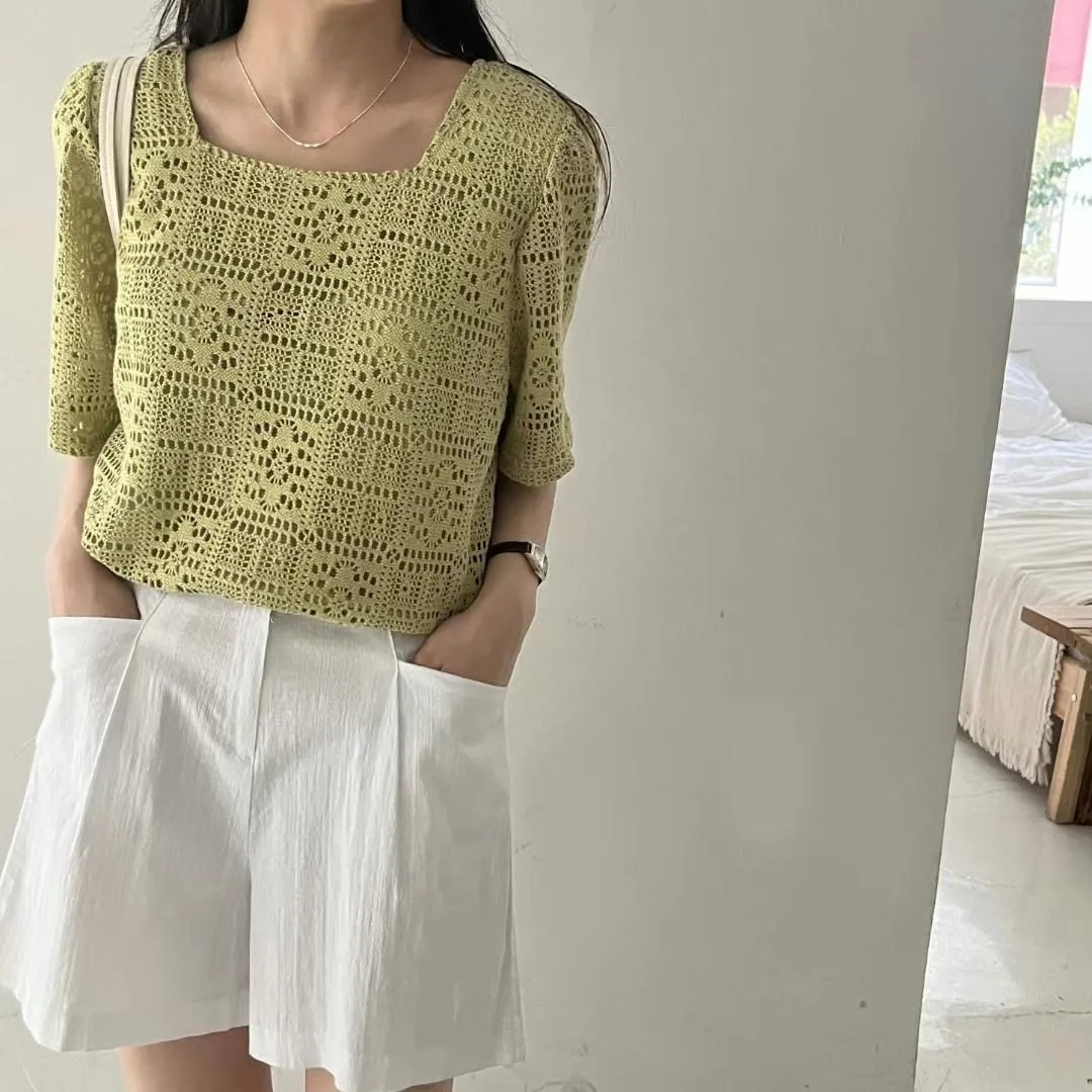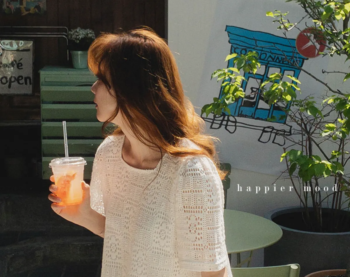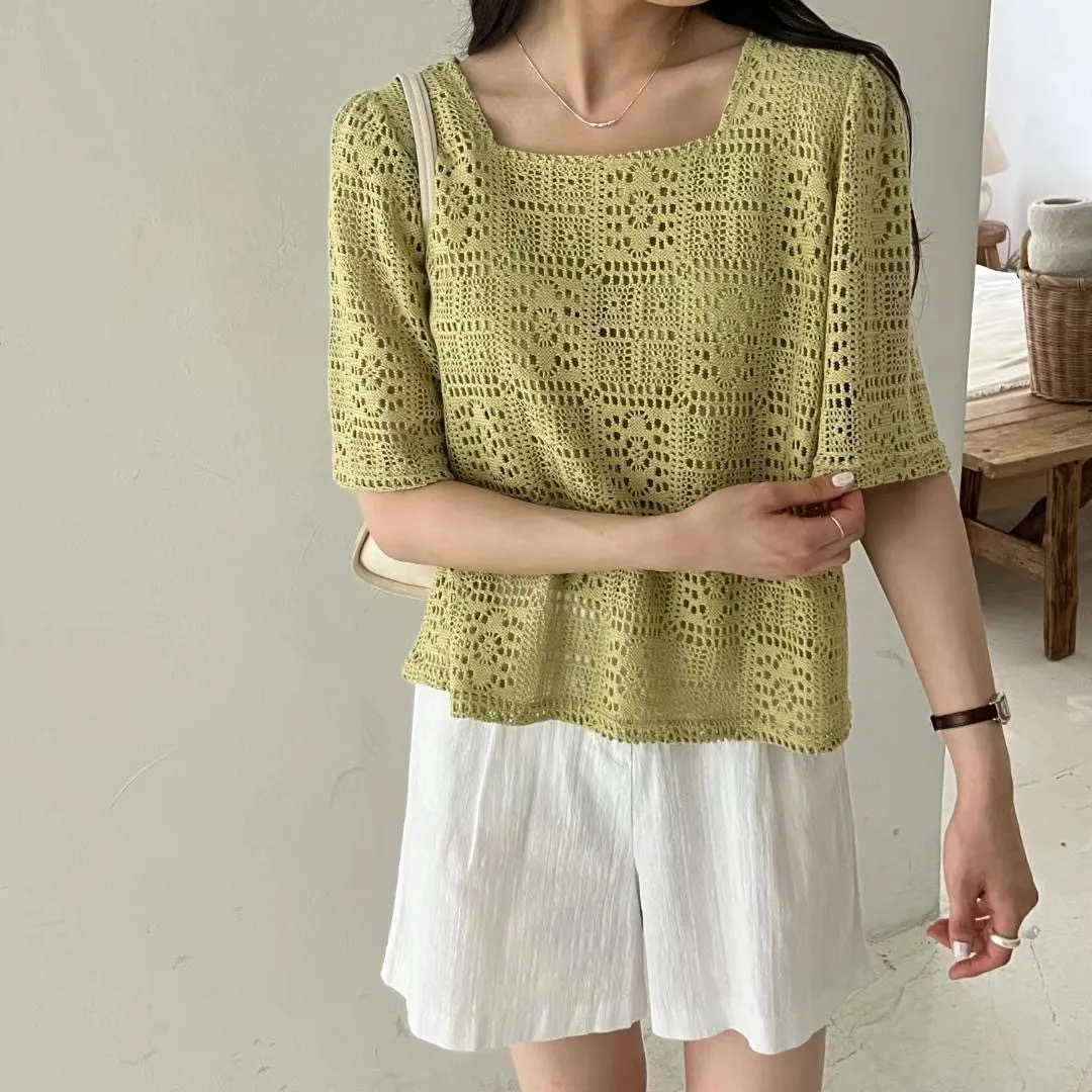 這件闆娘已包色!芥末綠跟白色好看呀 超喜歡這種版型的衣服,小寬袖又小A字廓形 不用紮就很好看! 布蕾絲的質感也很棒,這件有內裡,單穿完全不透 小方領露出鎖骨,也顯瘦 推薦! made in korea 肩寬36胸寬53衣長53cm