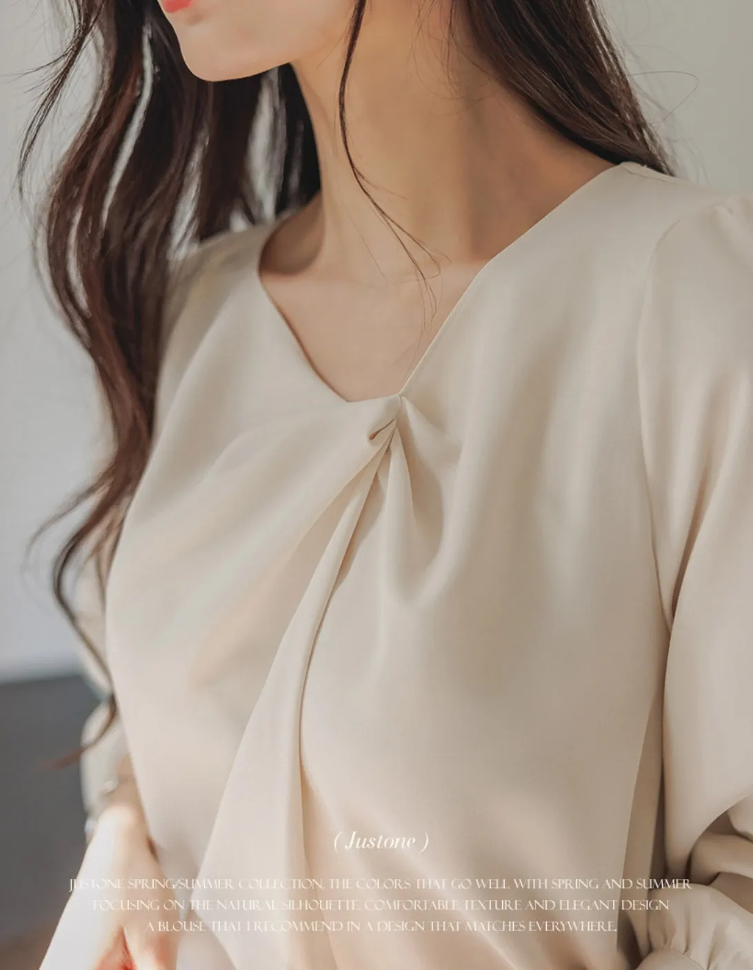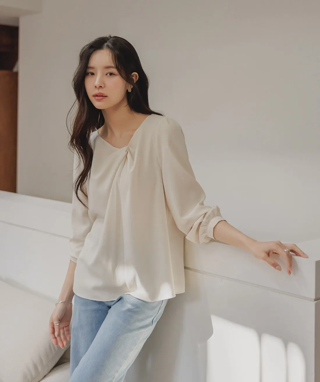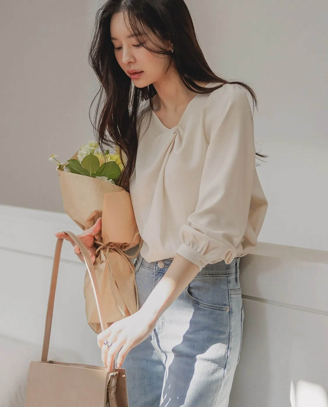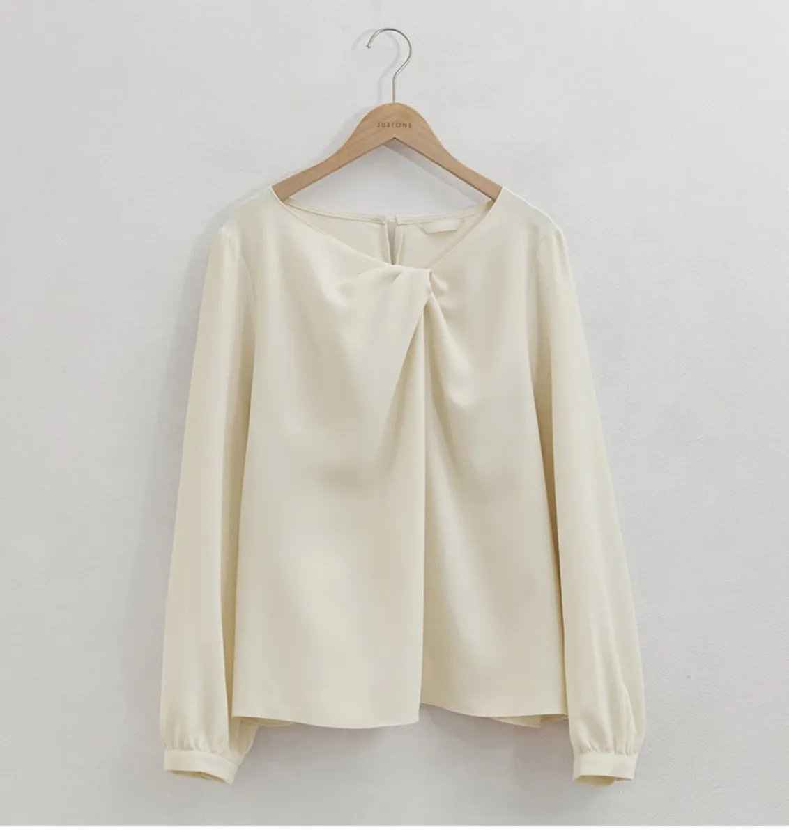 MA524-1 正韓 簡約領口扭結雪紡衫F 米白現貨
