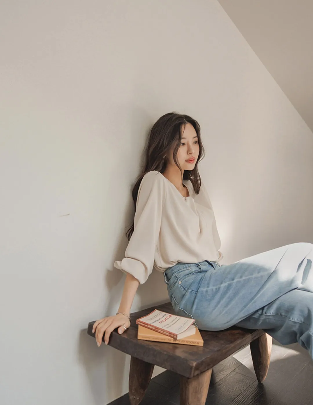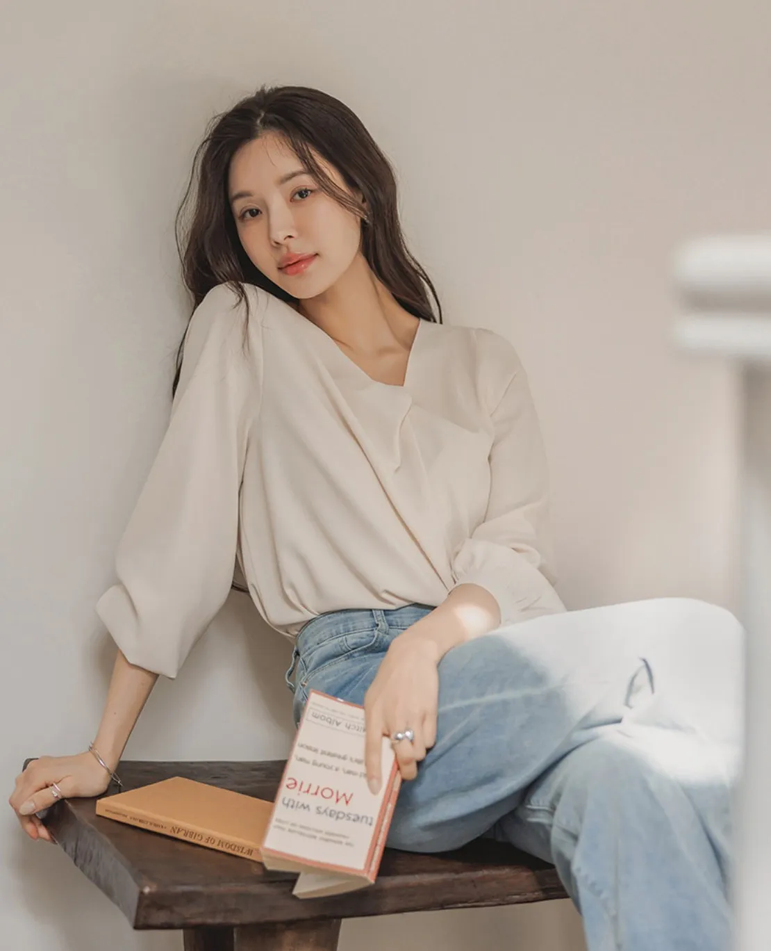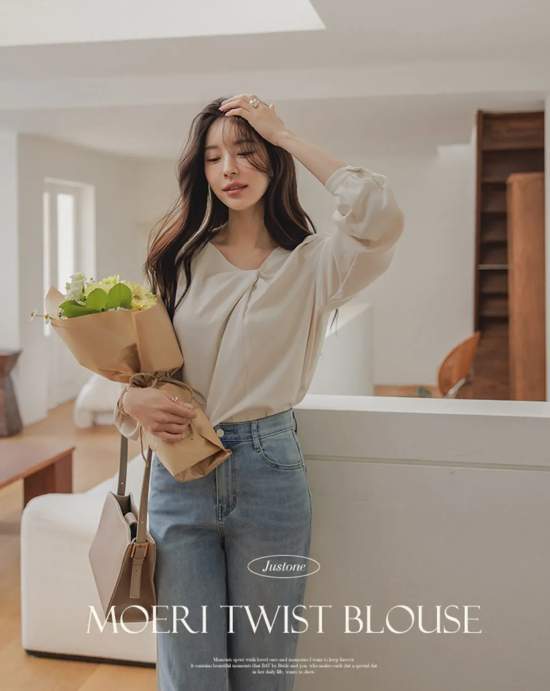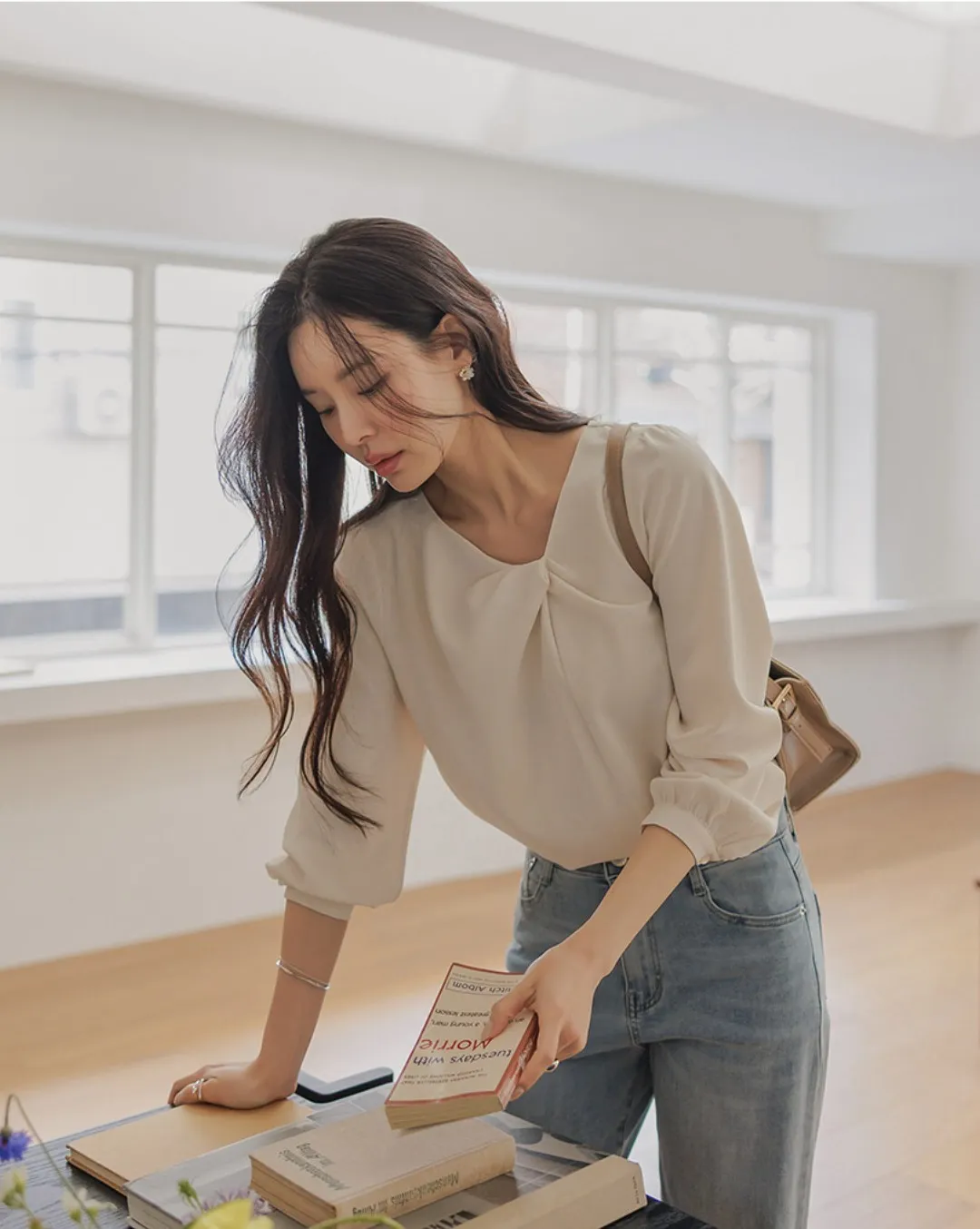 MA524-1 正韓 簡約領口扭結雪紡衫F 米白現貨