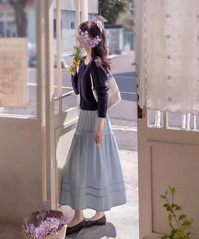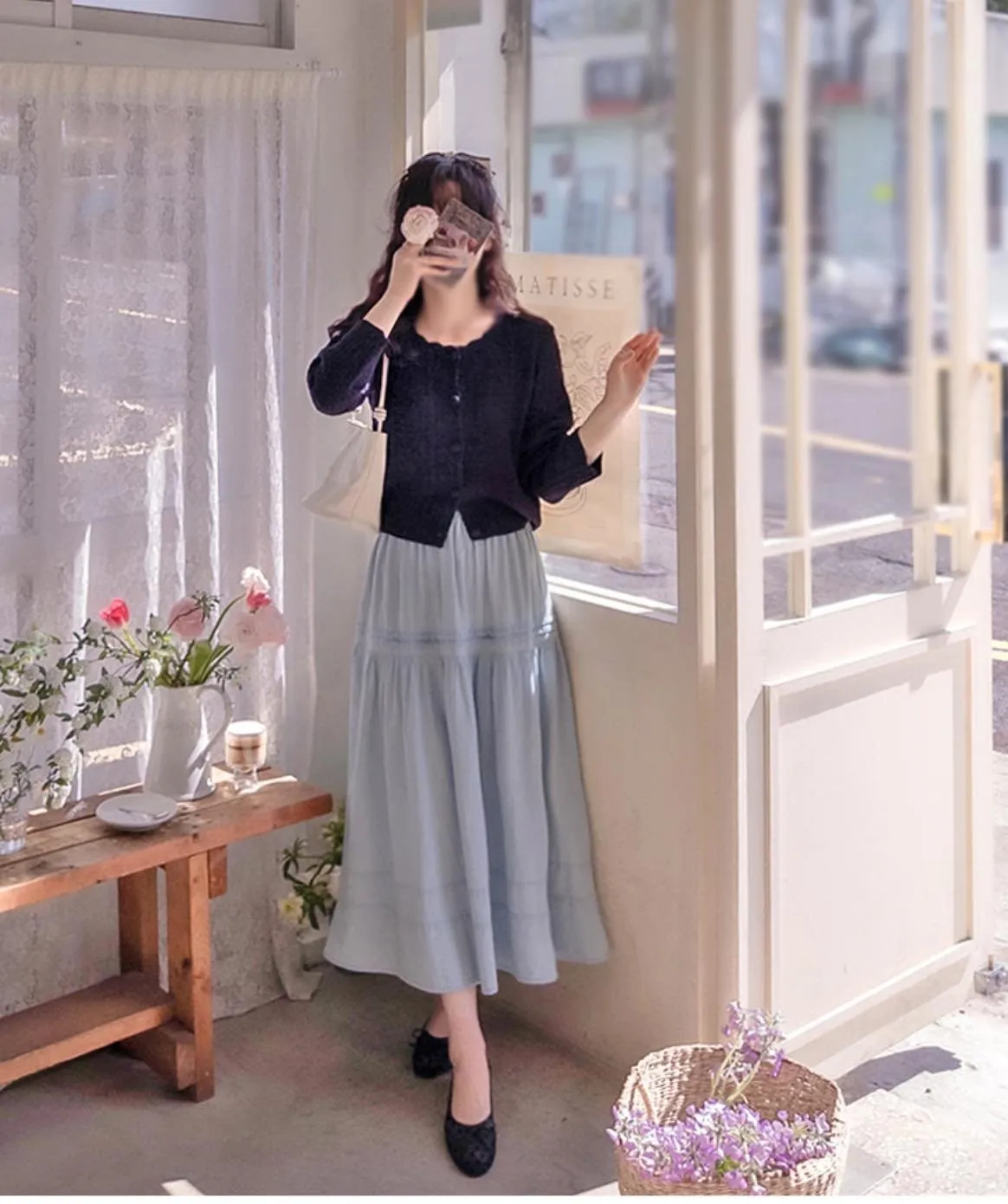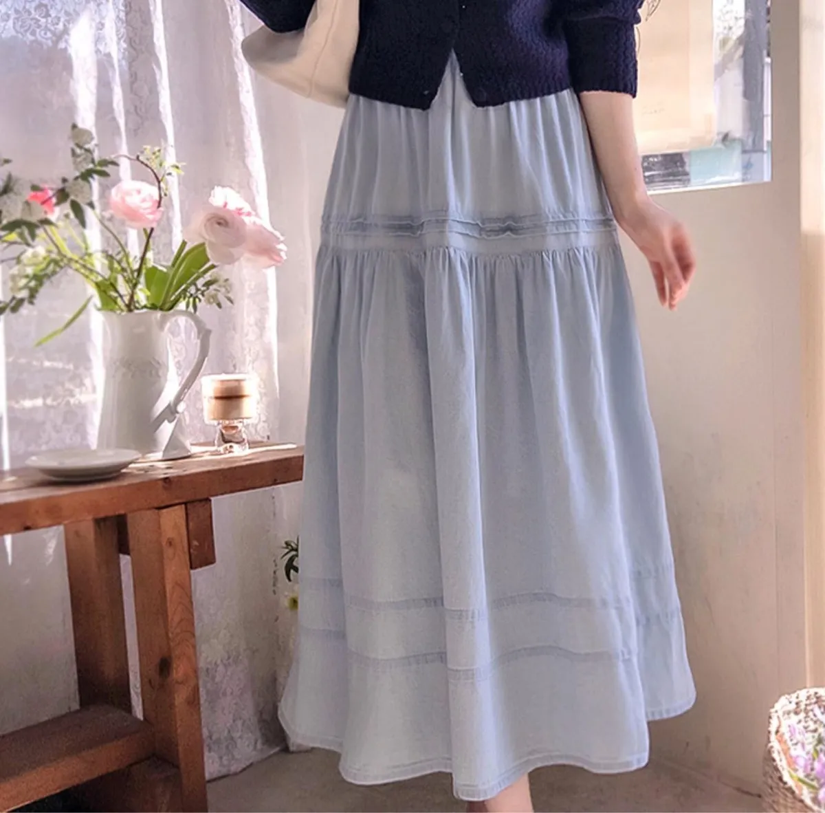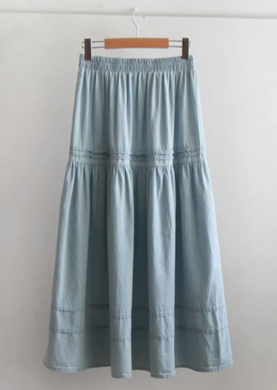 MA613 正韓 褶皺彈性飄逸牛仔長裙F 2色