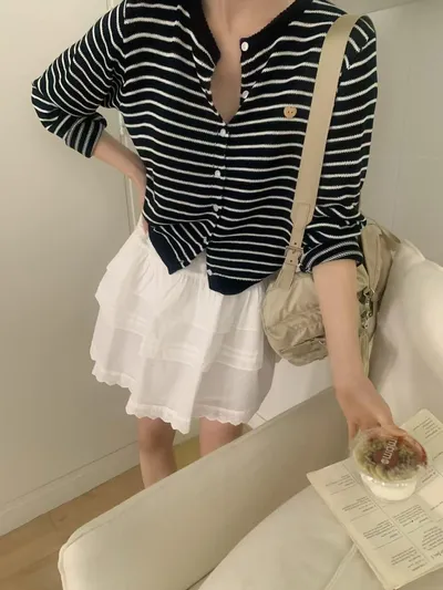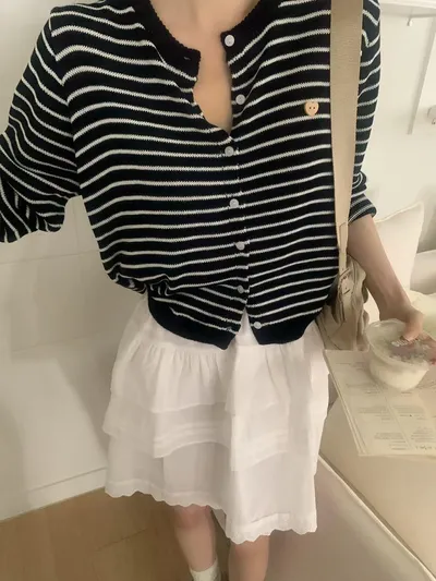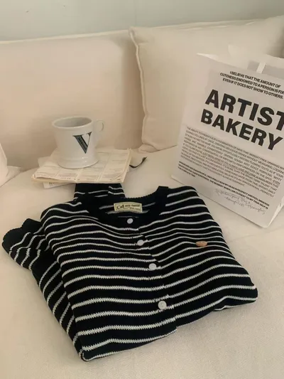 MA618 百搭條紋排扣針織衫F 單一色