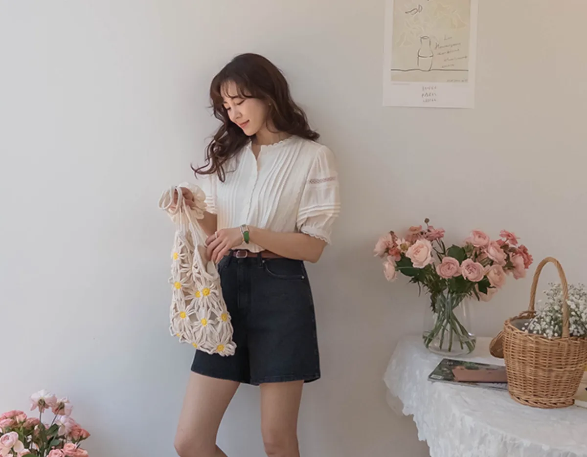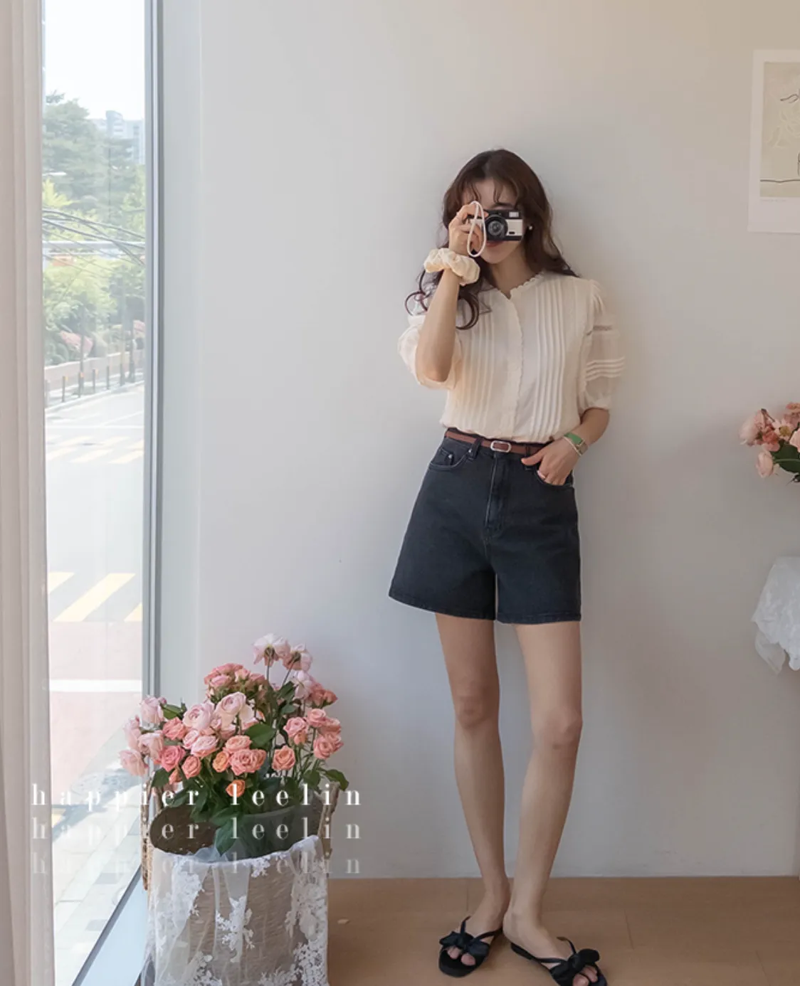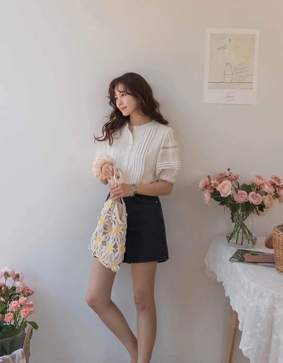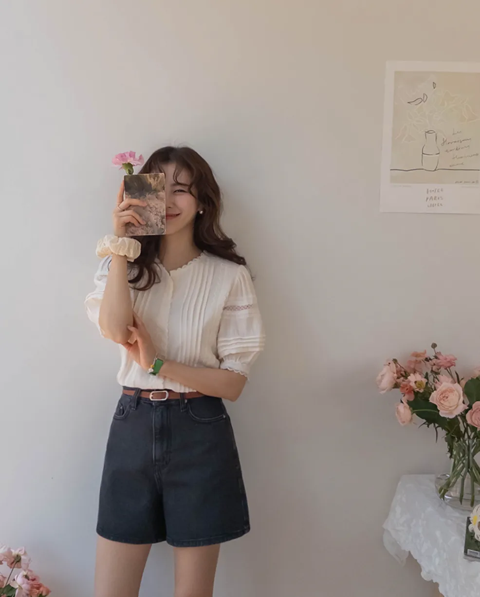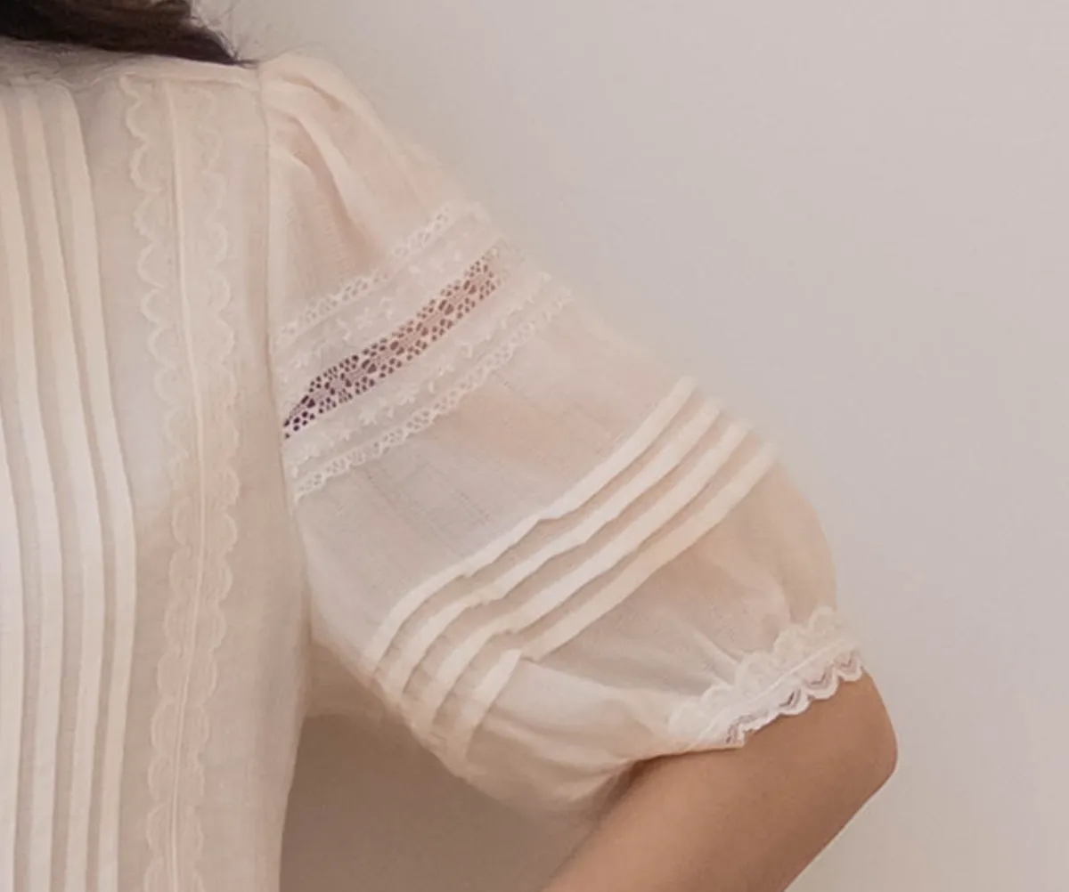 MY525 正韓 法式蕾絲壓折排扣襯衫F 最後現貨