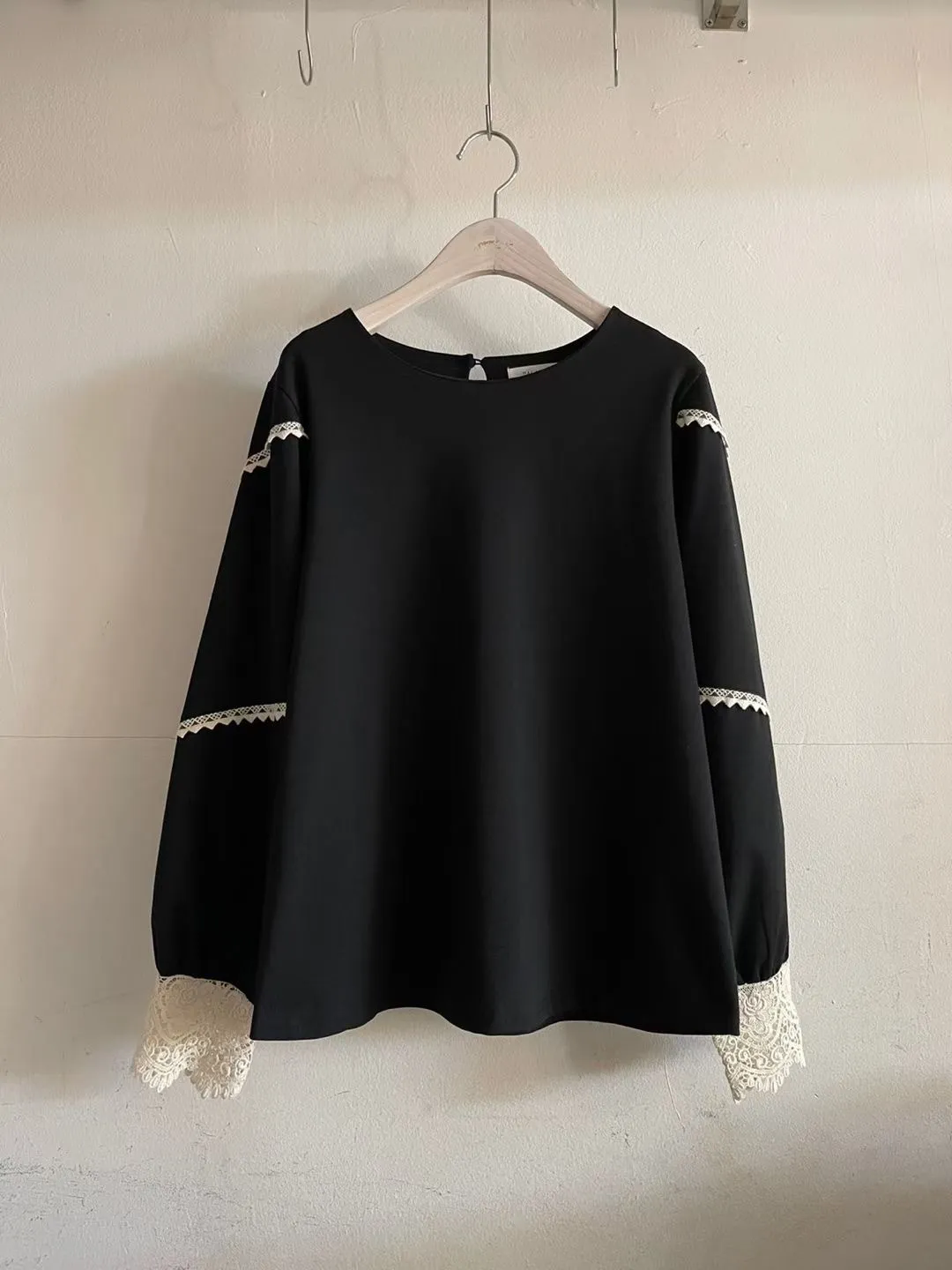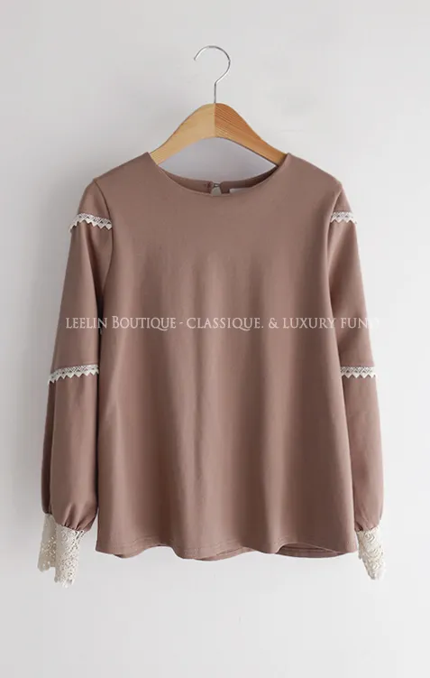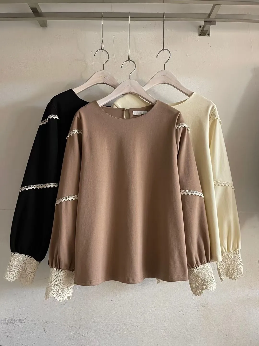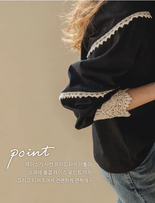 實穿度很高的混紡棉衫,袖口拼接的蕾絲好漂亮