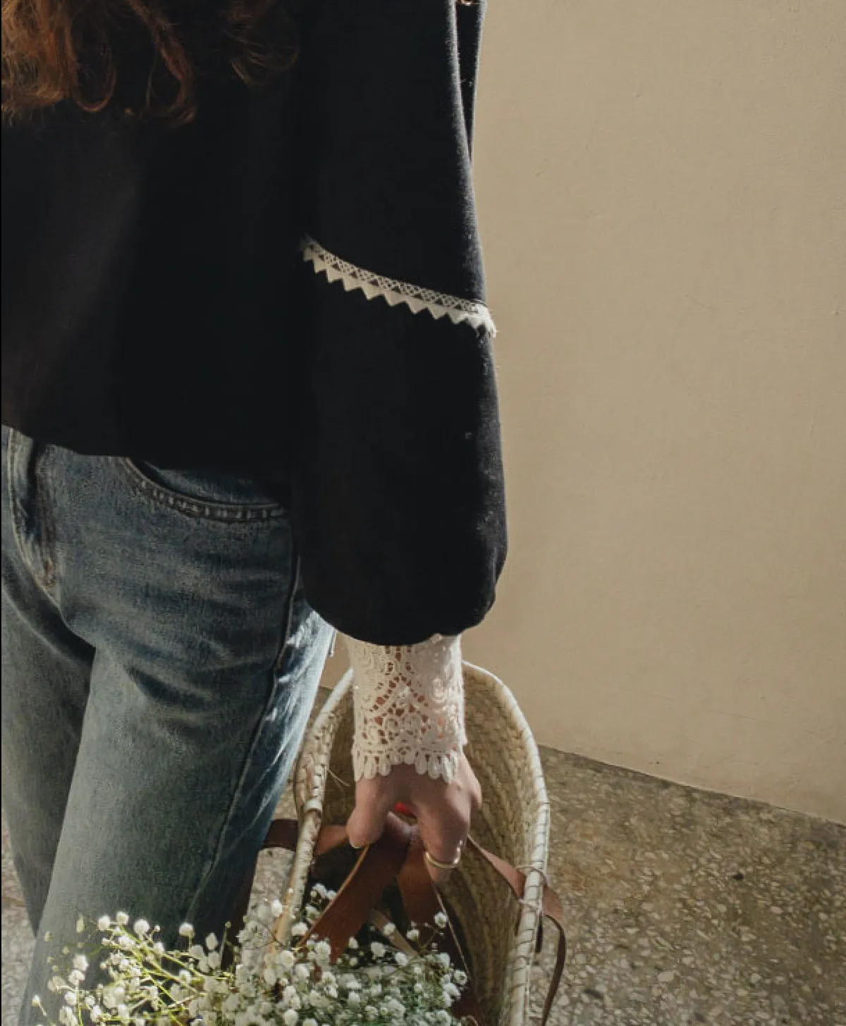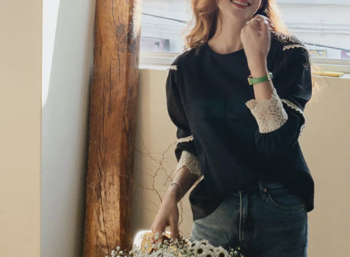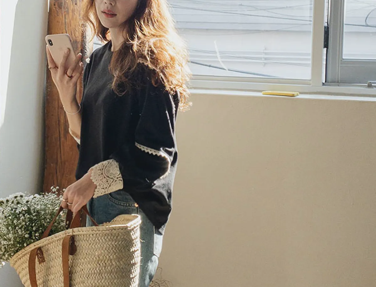 實穿度很高的混紡棉衫,袖口拼接的蕾絲好漂亮