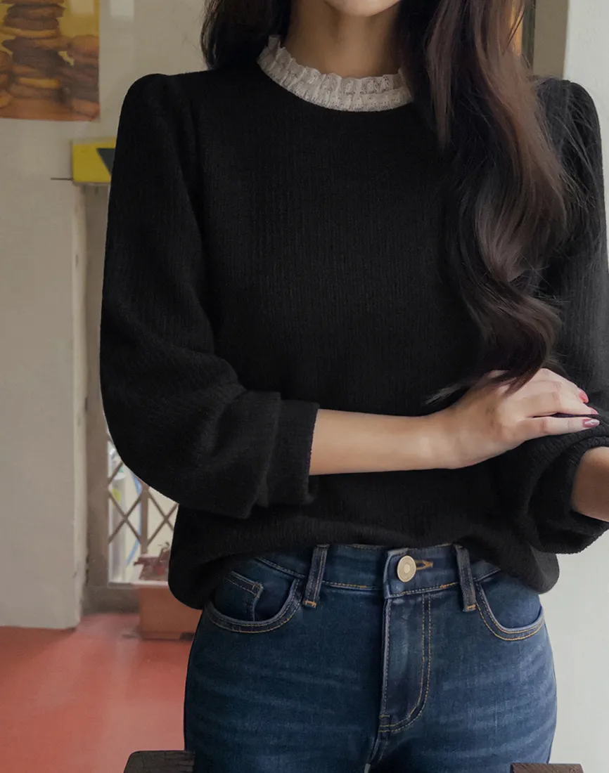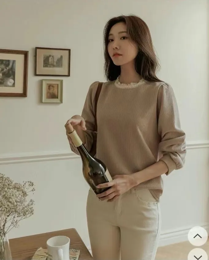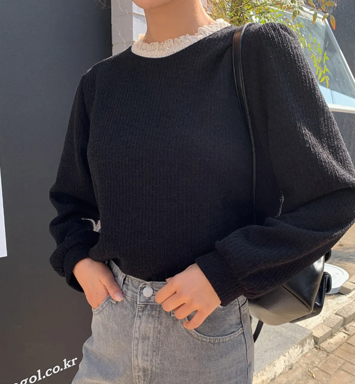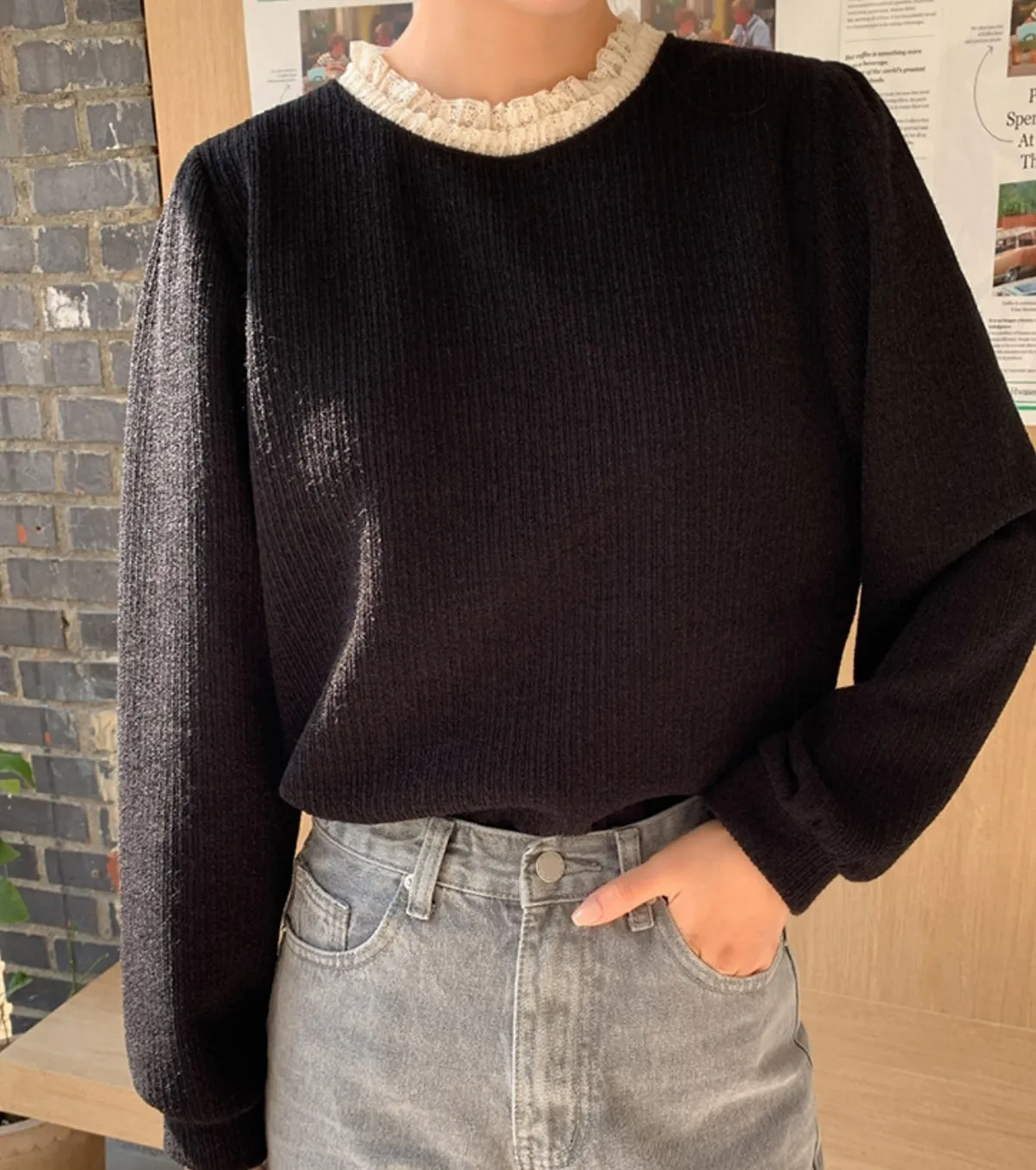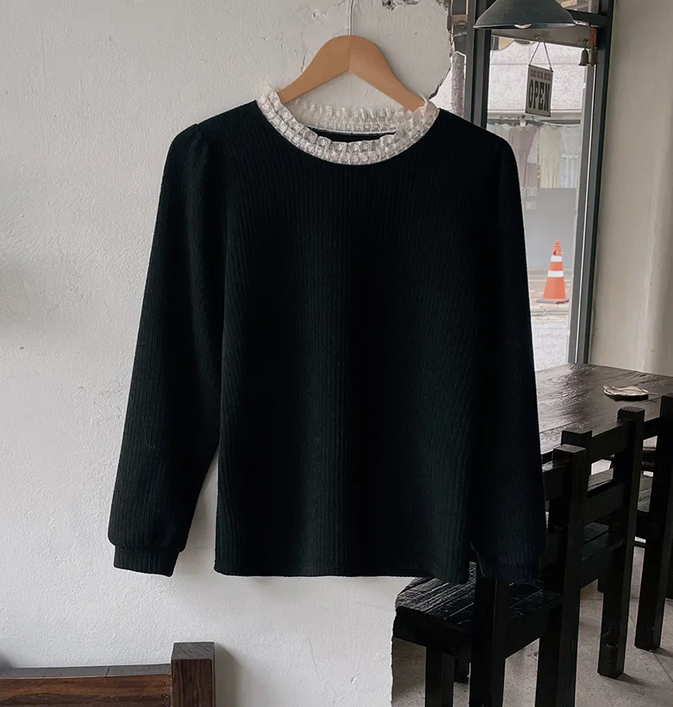 // Best Review 🖤 🖤 //11.28~11.31 冬季熱賣款限時折扣7%滿2000超取免運coupon輸入 “ WINTER11 ” 立折50元百搭必備基礎款 蕾絲領加上合身舒服的版型 單穿也很好看 肩寬36胸寬50全長62cm made in korea