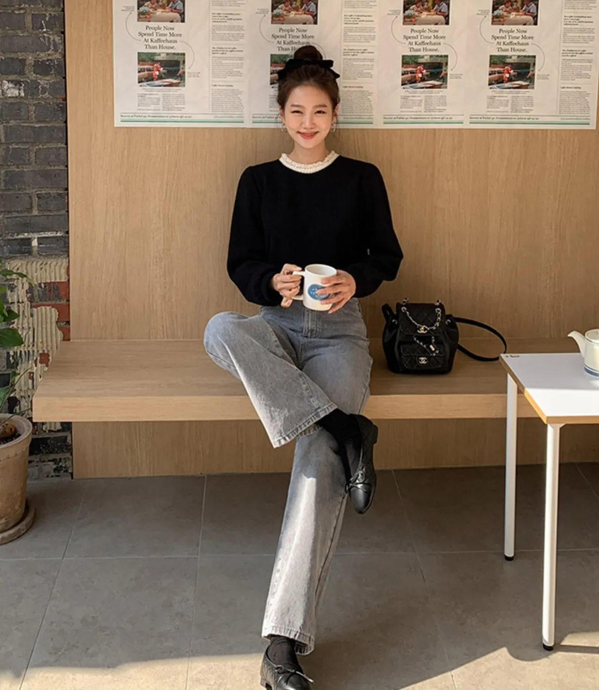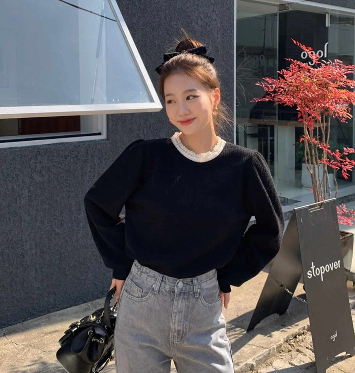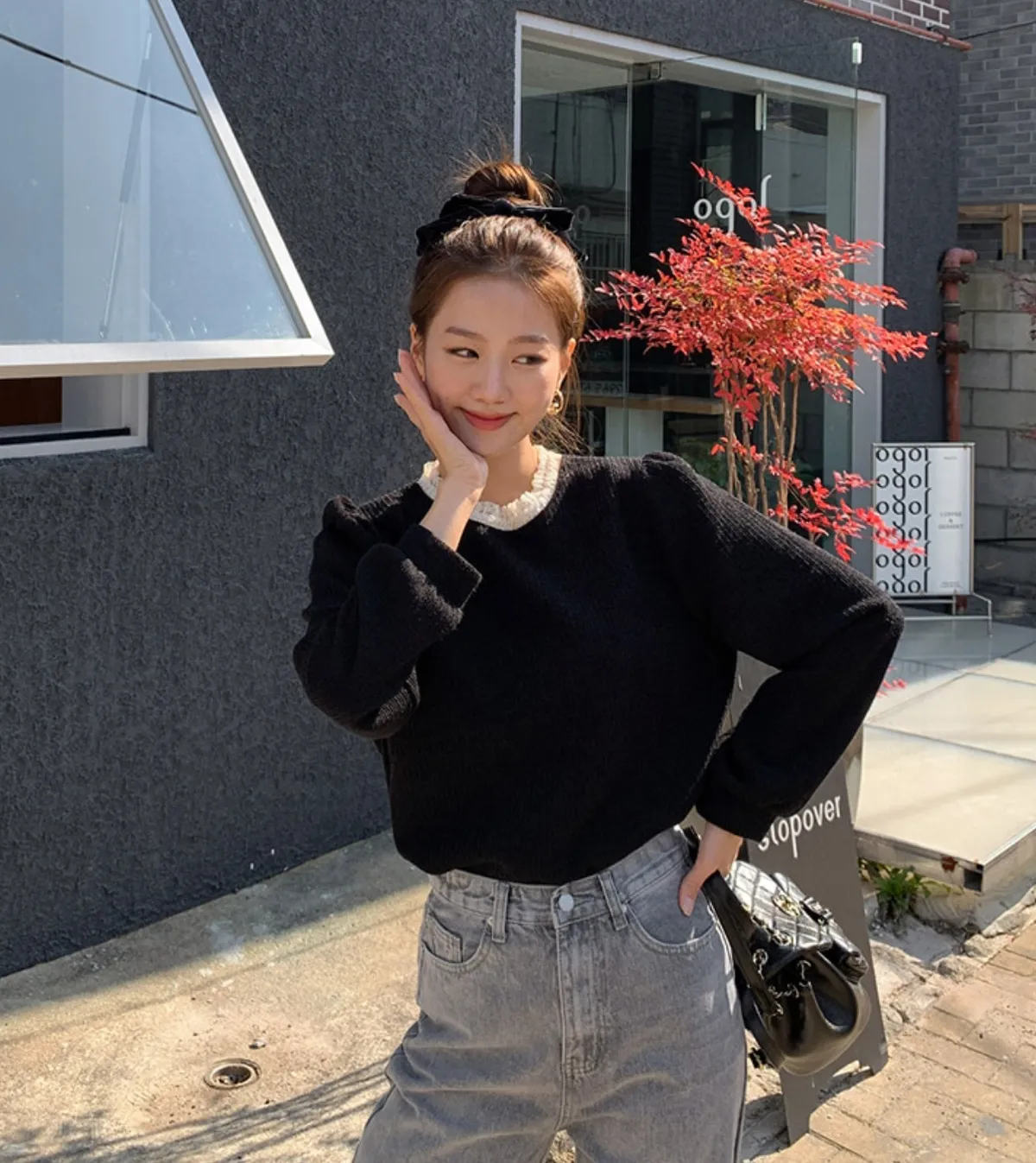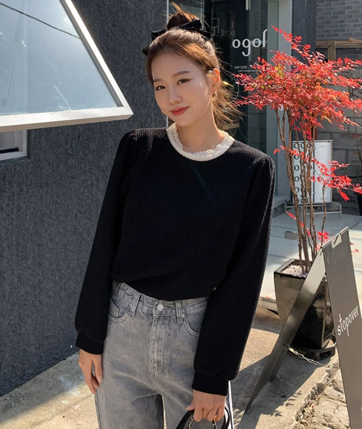 // Best Review 🖤 🖤 //11.28~11.31 冬季熱賣款限時折扣7%滿2000超取免運coupon輸入 “ WINTER11 ” 立折50元百搭必備基礎款 蕾絲領加上合身舒服的版型 單穿也很好看 肩寬36胸寬50全長62cm made in korea
