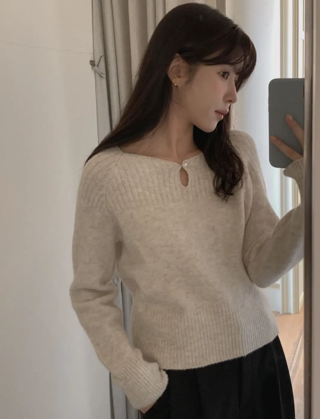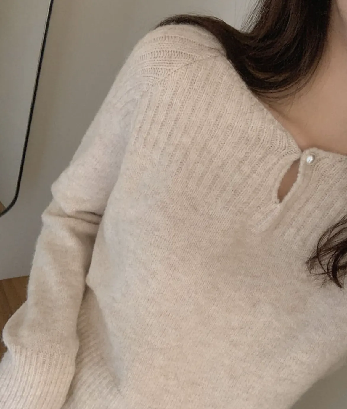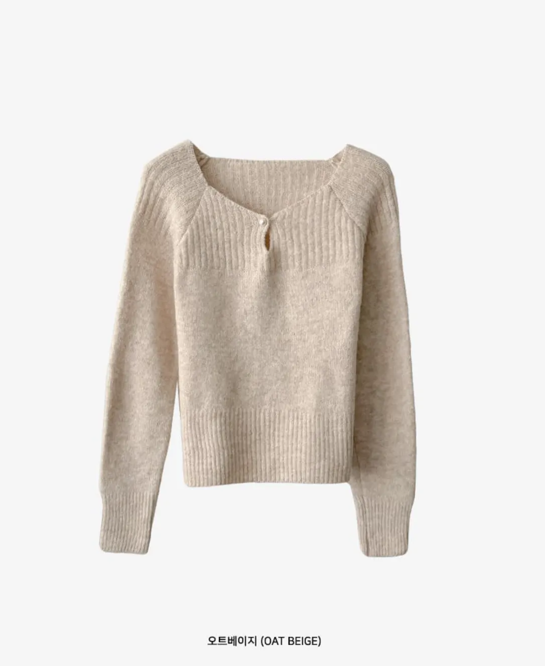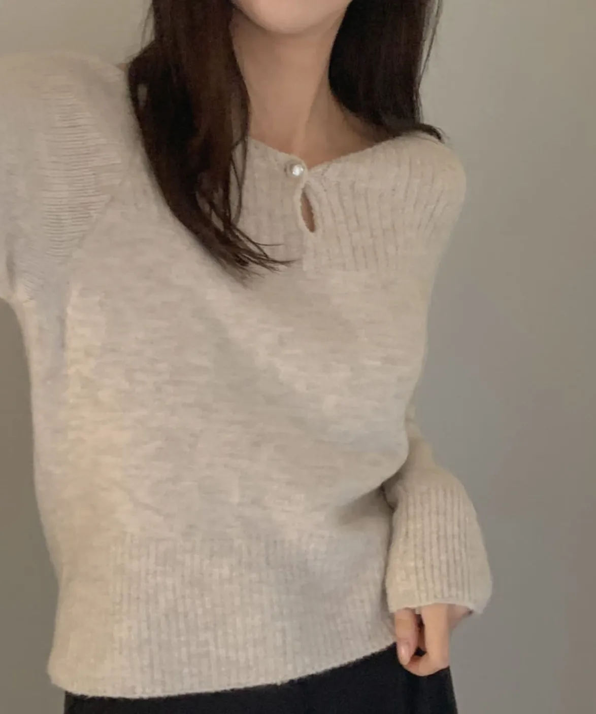 NV430 甜美船型領珍珠釦針織衫F 燕麥色