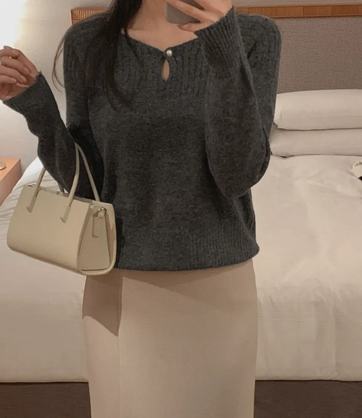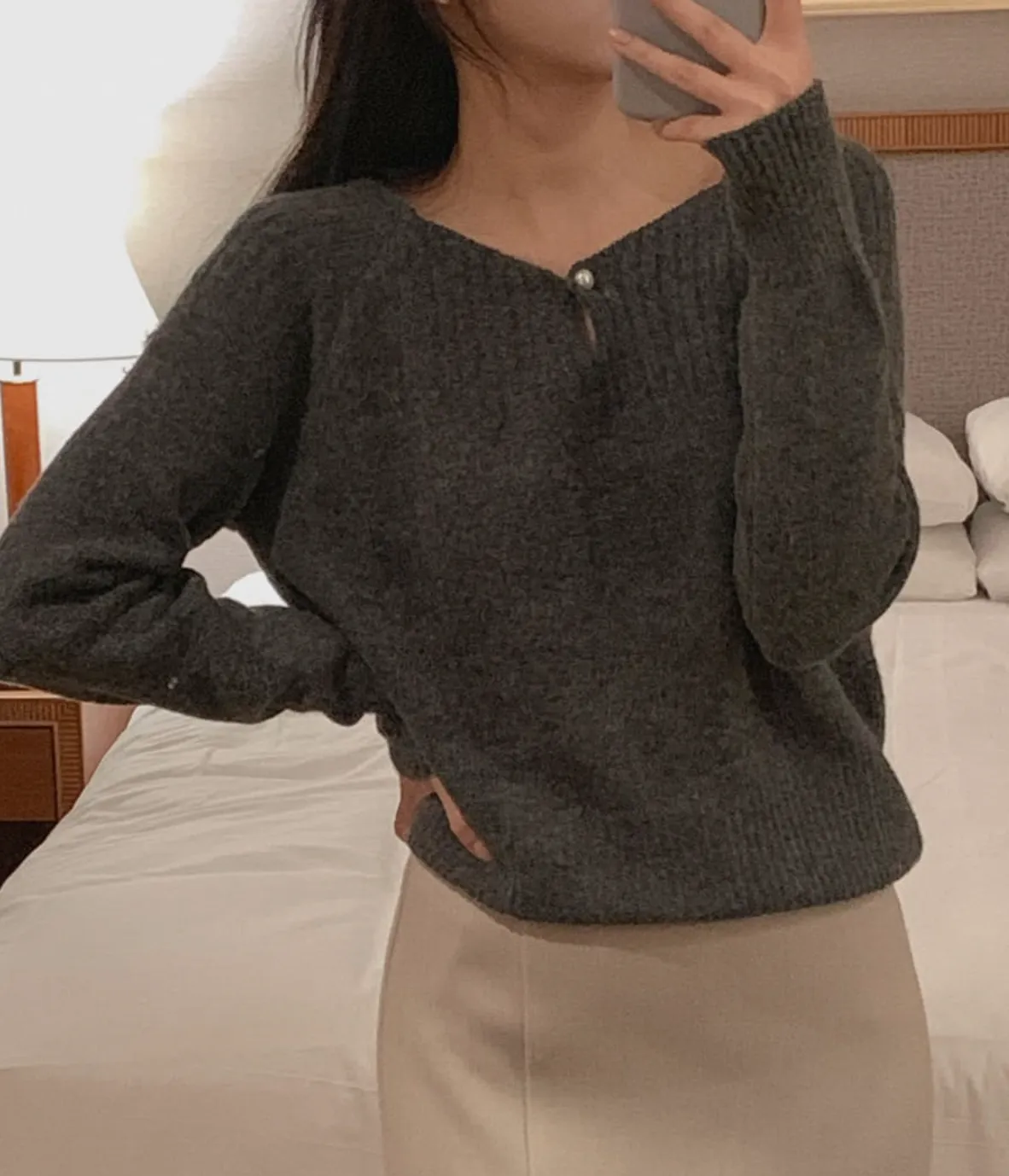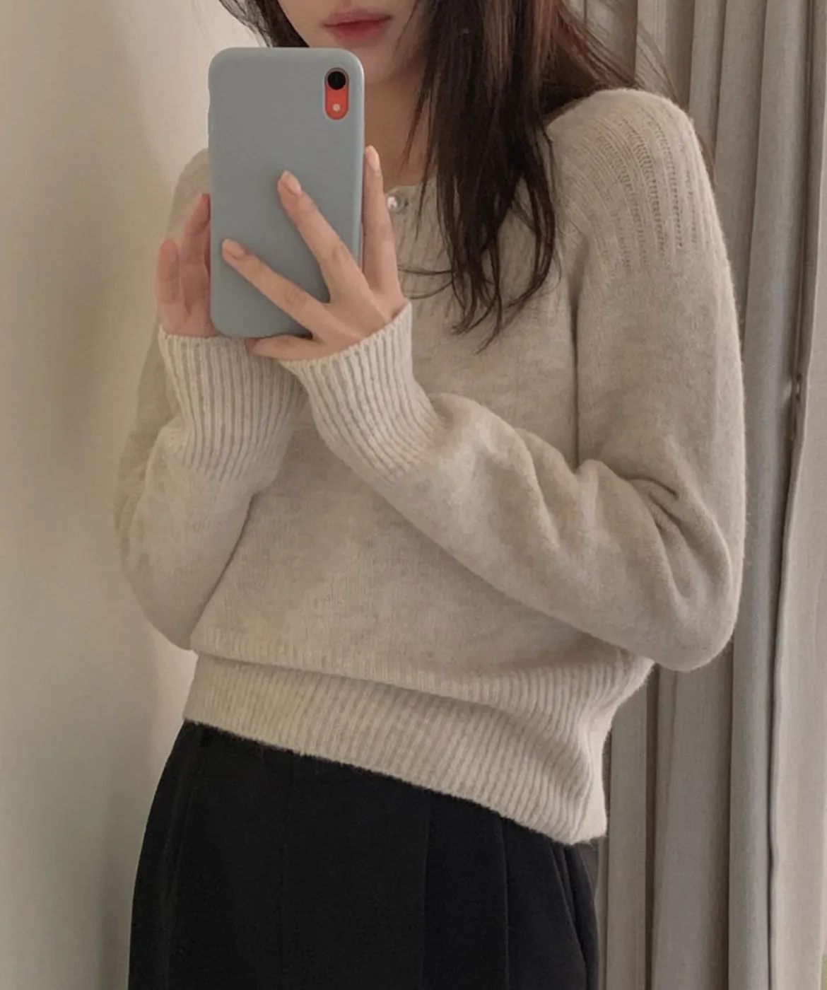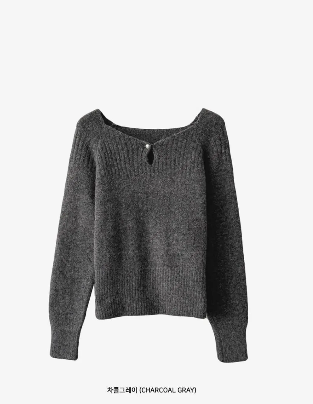 NV430 甜美船型領珍珠釦針織衫F 燕麥色