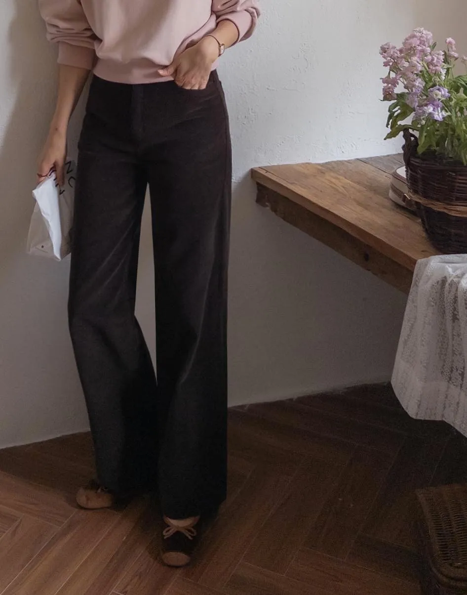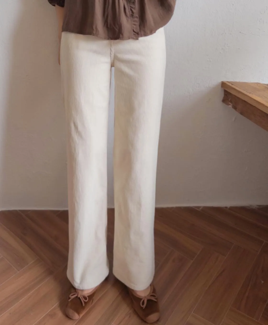 冬天必備的燈芯絨褲 Leelin家本週的best熱賣款呀 這款是細緻的燈芯絨紋路 修長的直筒剪裁,全件有彈性 腰整圈隱藏鬆緊 版型正常 S腰寬33-41臀寬48全長99cm M腰寬35-43臀寬51全長99cm L腰寬37-45臀寬54全長100cm Made in Korea